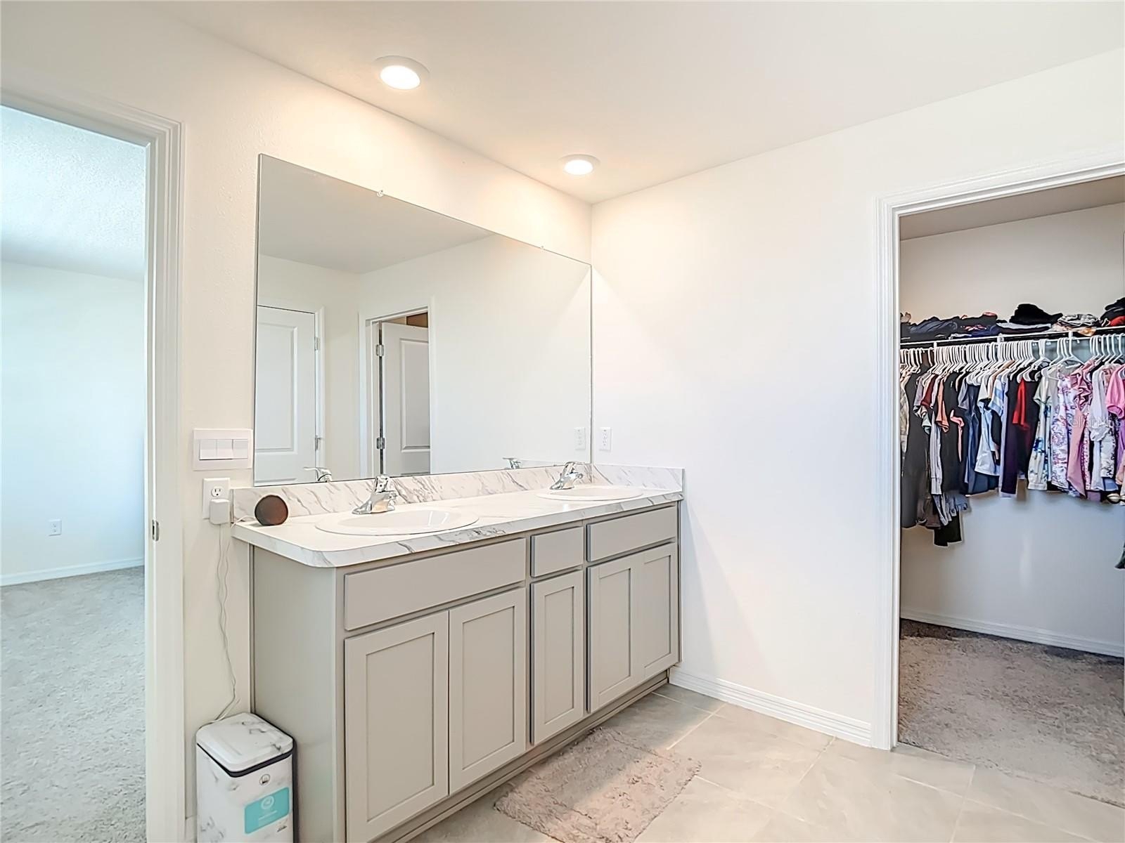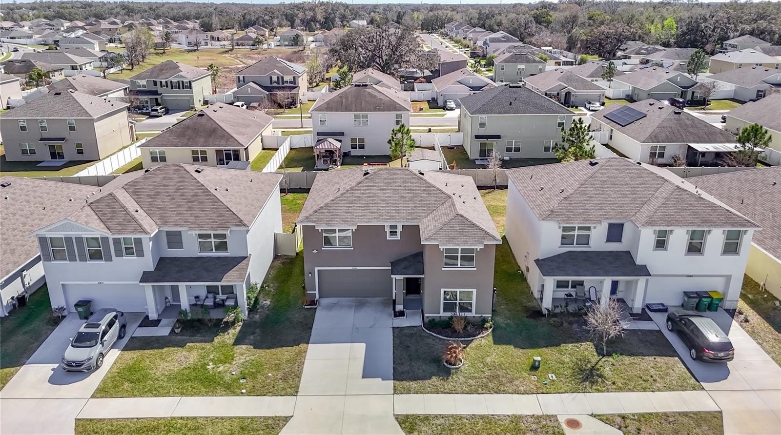Upstairs, you’ll find the primary bedroom, two more bedrooms, and the laundry room. The primary bedroom has its own bathroom with double vanity, a walk-in shower, and a walk-in closet. The home has a water softer and water purifier.