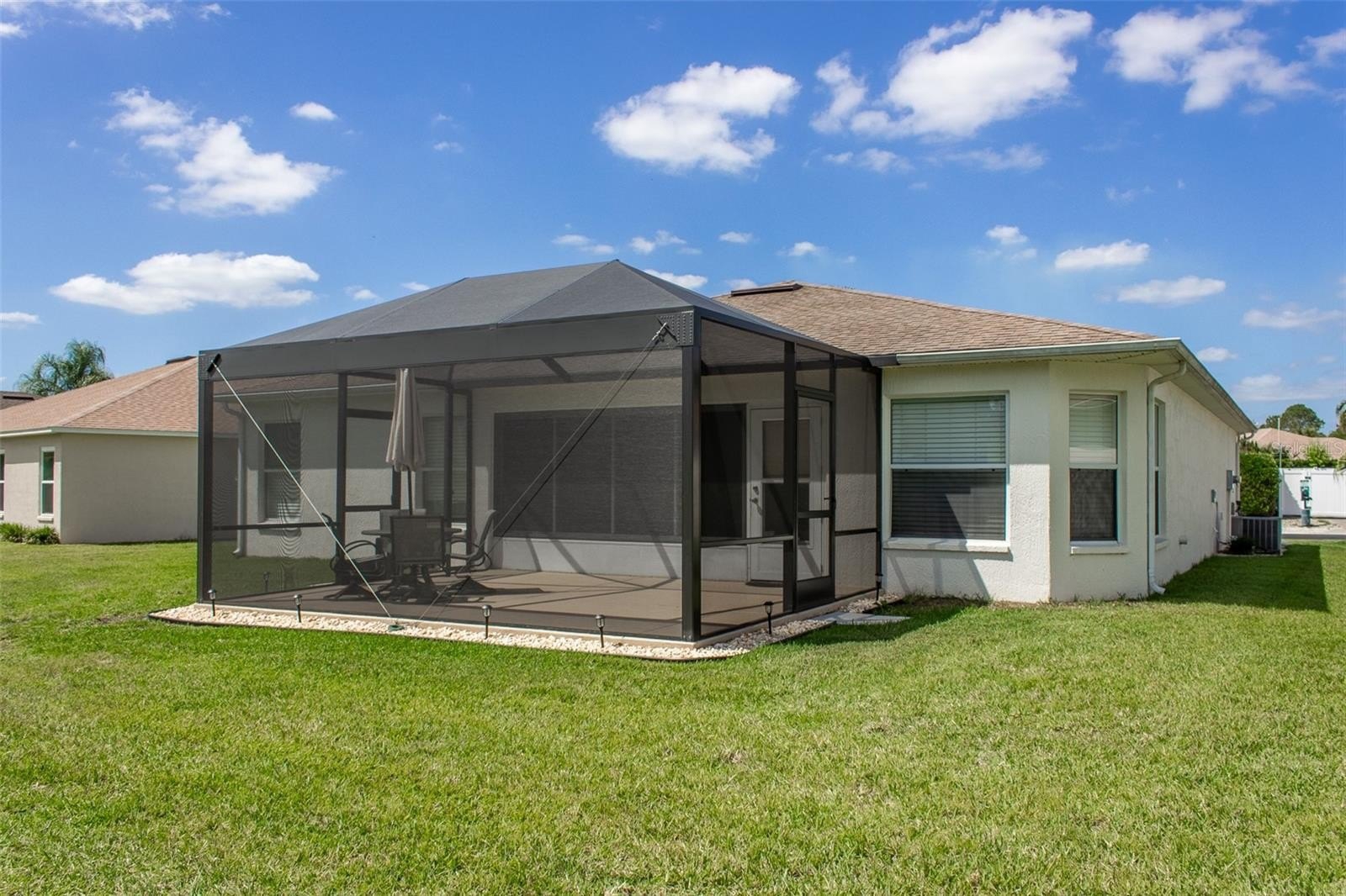 Located in the guard gated 55+ golf community of SummerGlen, this Melbourne model offers a comfortable layout designed for easy Florida living. The home features bright, open living and dining areas that flow naturally into the kitchen, creating a space that feels welcoming the moment you walk in. The kitchen provides generous counter space, storage, and a cheerful breakfast nook surrounded by windows. The owner’s suite offers a relaxing retreat with a walk in closet and ensuite bath featuring dual vanities and a walk in shower. Guest space is thoughtfully positioned to give visitors privacy while still feeling connected to the home. Step outside to the screened lanai, a peaceful spot to enjoy morning coffee, a good book, or an evening breeze. The two-car garage adds additional storage and convenience. Living in SummerGlen means enjoying one of Ocala’s most active 55+ communities with an 18 hole golf course, on site restaurant, resort style pool and hot tub, tennis and pickleball courts, softball field, dog park, RV storage, and a clubhouse filled with a fitness center and year round activities. The low monthly HOA of $390 includes guard gated security, Spectrum Bronze Tier 1 cable, 100 Mbps high speed internet, full lawn care including mowing, edging, and blowing, trash and recycling pickup, and access to RV or boat storage for a onetime fee. Residents also receive a $30 monthly credit at the community restaurant. If you are looking for comfortable living in an active community, SummerGlen is a place many are proud to call home.