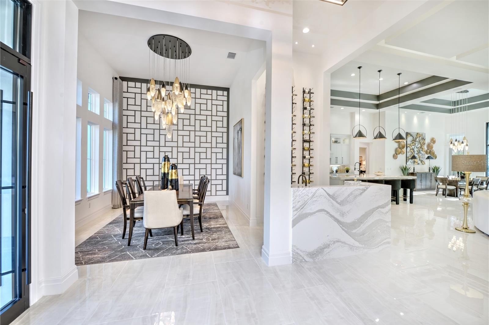 Luxury touches abound, including soaring 14' to 16' ceilings, polished porcelain floors, and a wine bar that elevates everyday living into an indulgent escape.