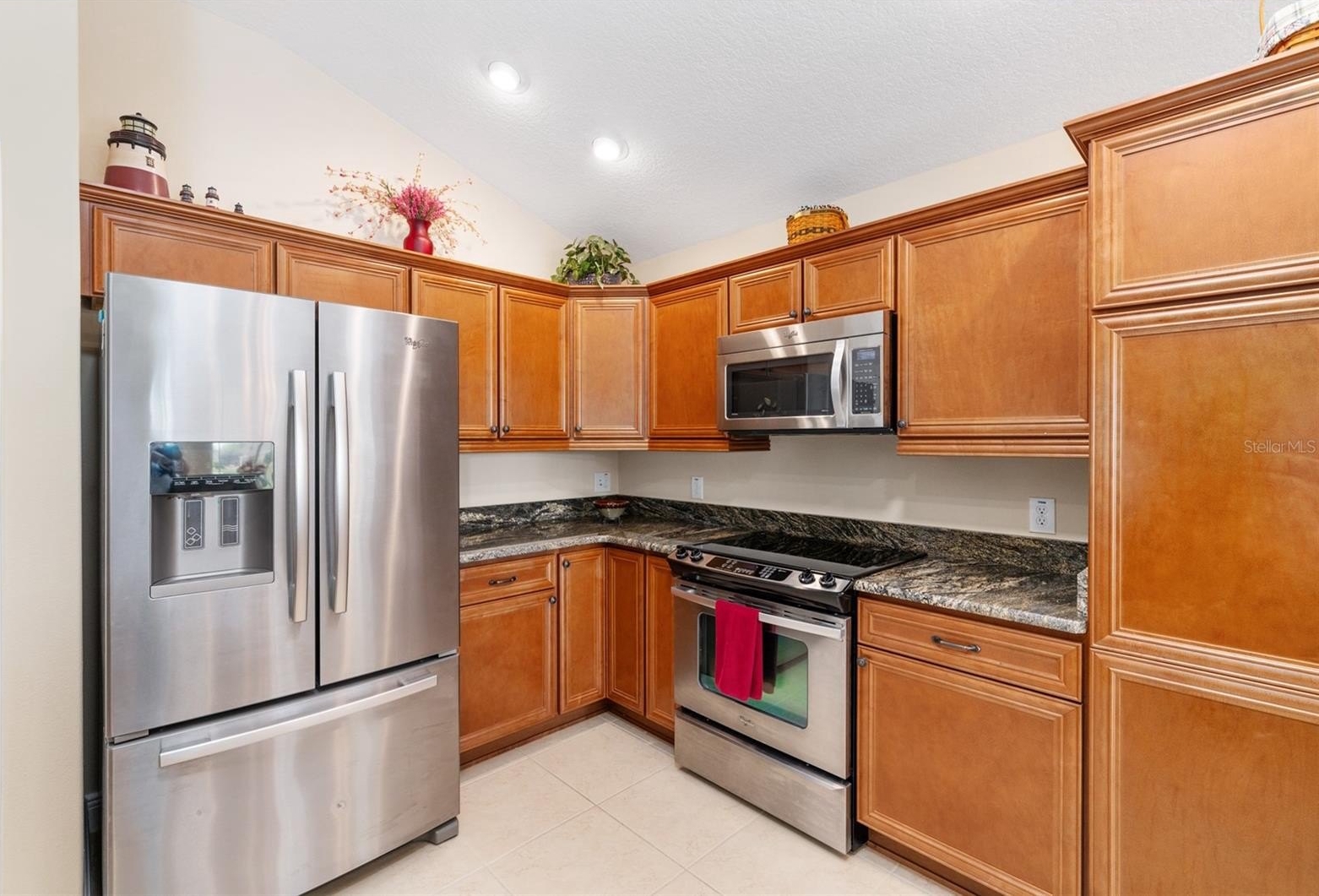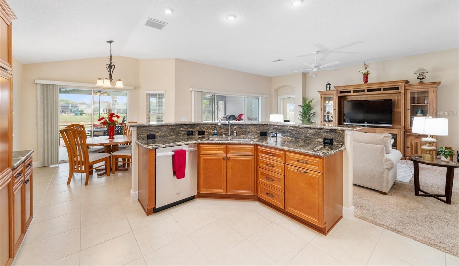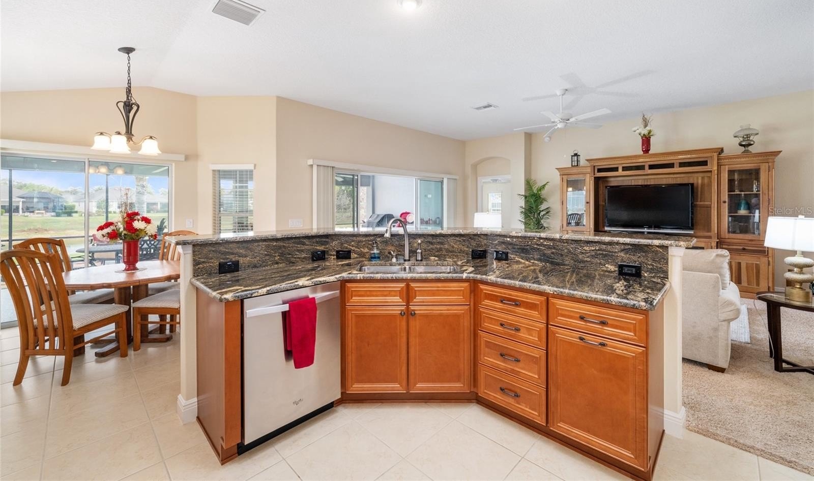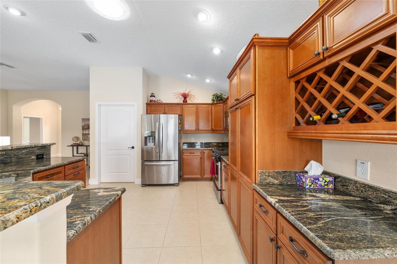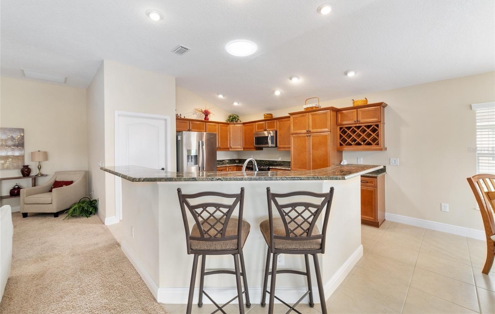 The kitchen and wet areas feature LIGHT TILE FLOORING, complemented by GRANITE COUNTERTOPS, a BREAKFAST BAR, and ABUNDANT CABINETRY including beautiful cabinets and a BUILT-IN WINE BAR—perfect for hosting friends and family.