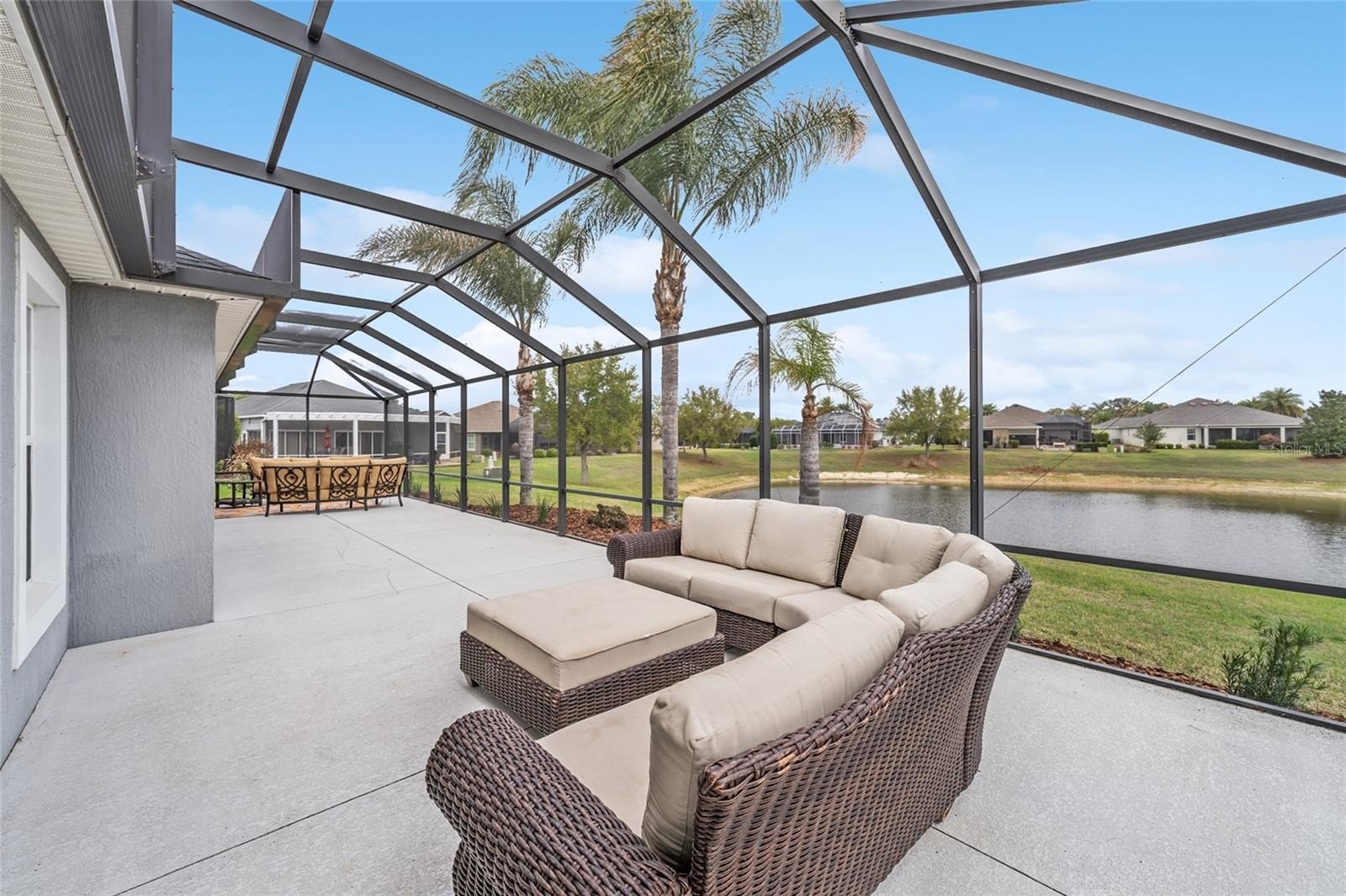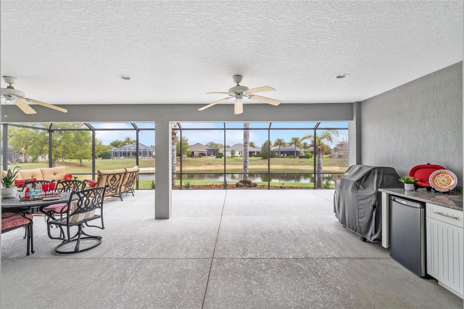The true highlight of this home is the SPECTACULAR EXTENDED LANAI. Fully screened and stretching the FULL WIDTH OF THE HOME, this outdoor retreat offers STUNNING PANORAMIC POND VIEWS and multiple seating areas to relax and enjoy the FLORIDA LIFESTYLE. The lanai also features a GRANITE WET BAR WITH SINK, UNDER-COUNTER REFRIGERATOR, along with a WEBER GRILL, making it the perfect space for OUTDOOR DINING AND ENTERTAINING.