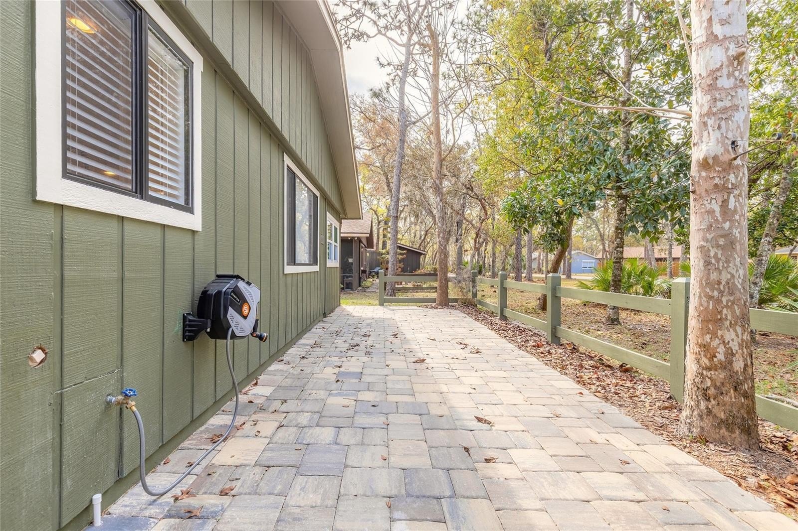 Step outside to a professionally installed paver patio area with spacious rear storage and decorative fencing along the back. Residents can enjoy a short walk along the scenic trail—just one block—to the community’s heated pool.