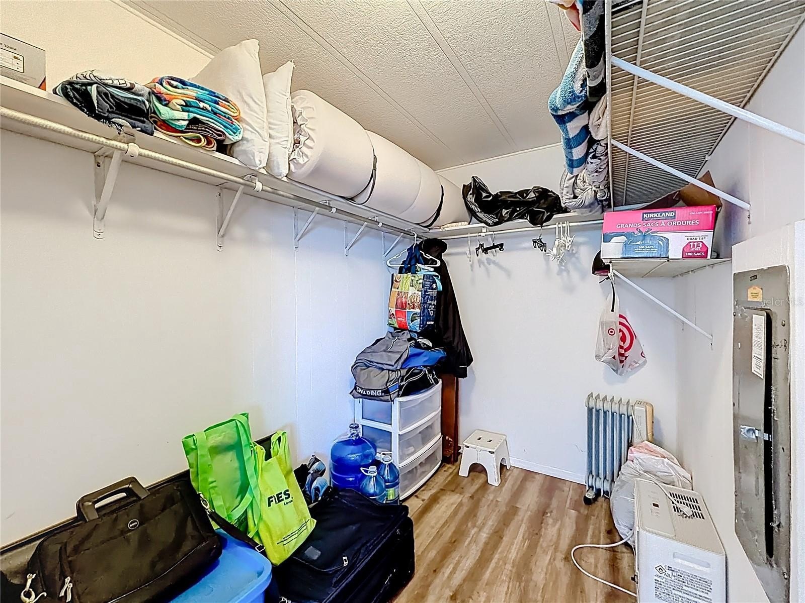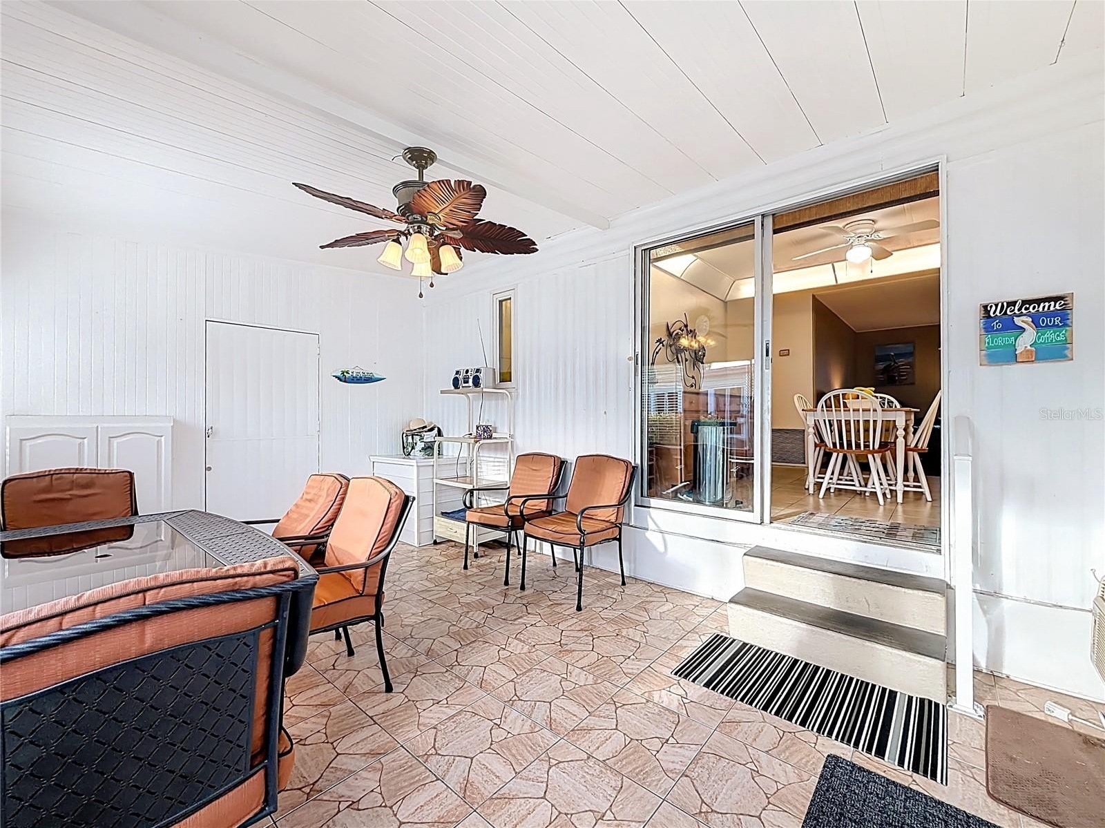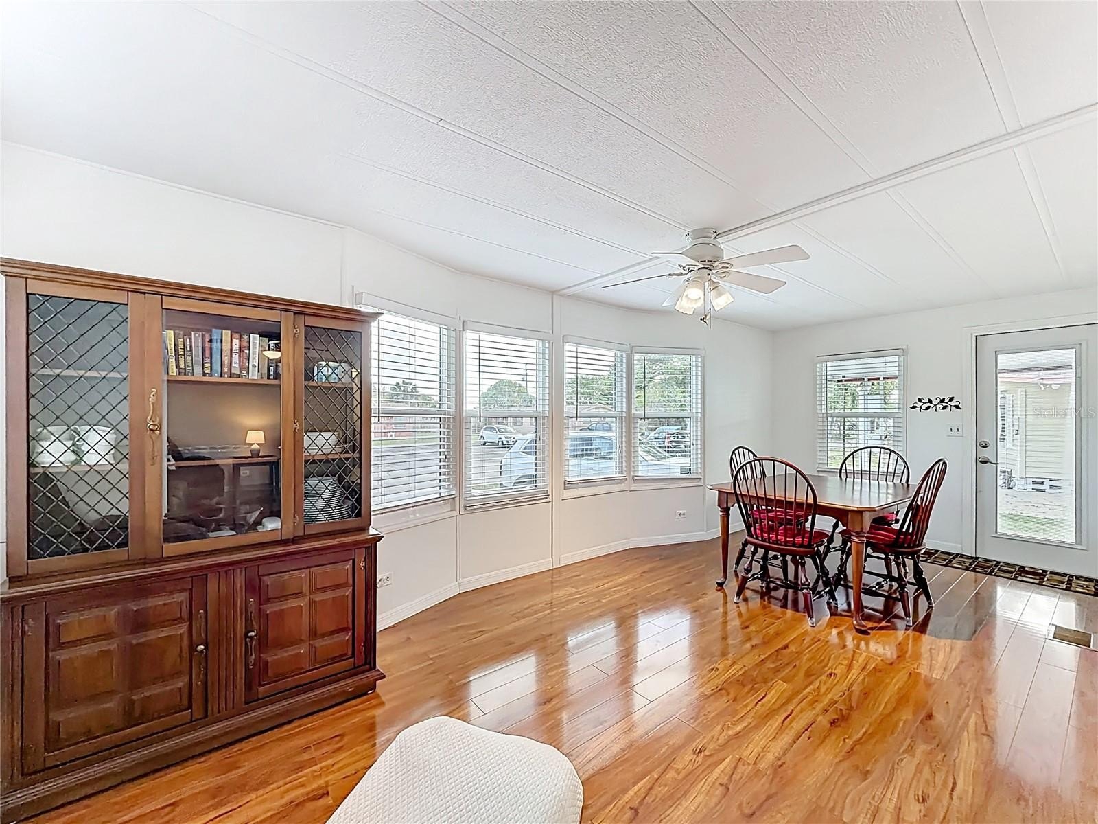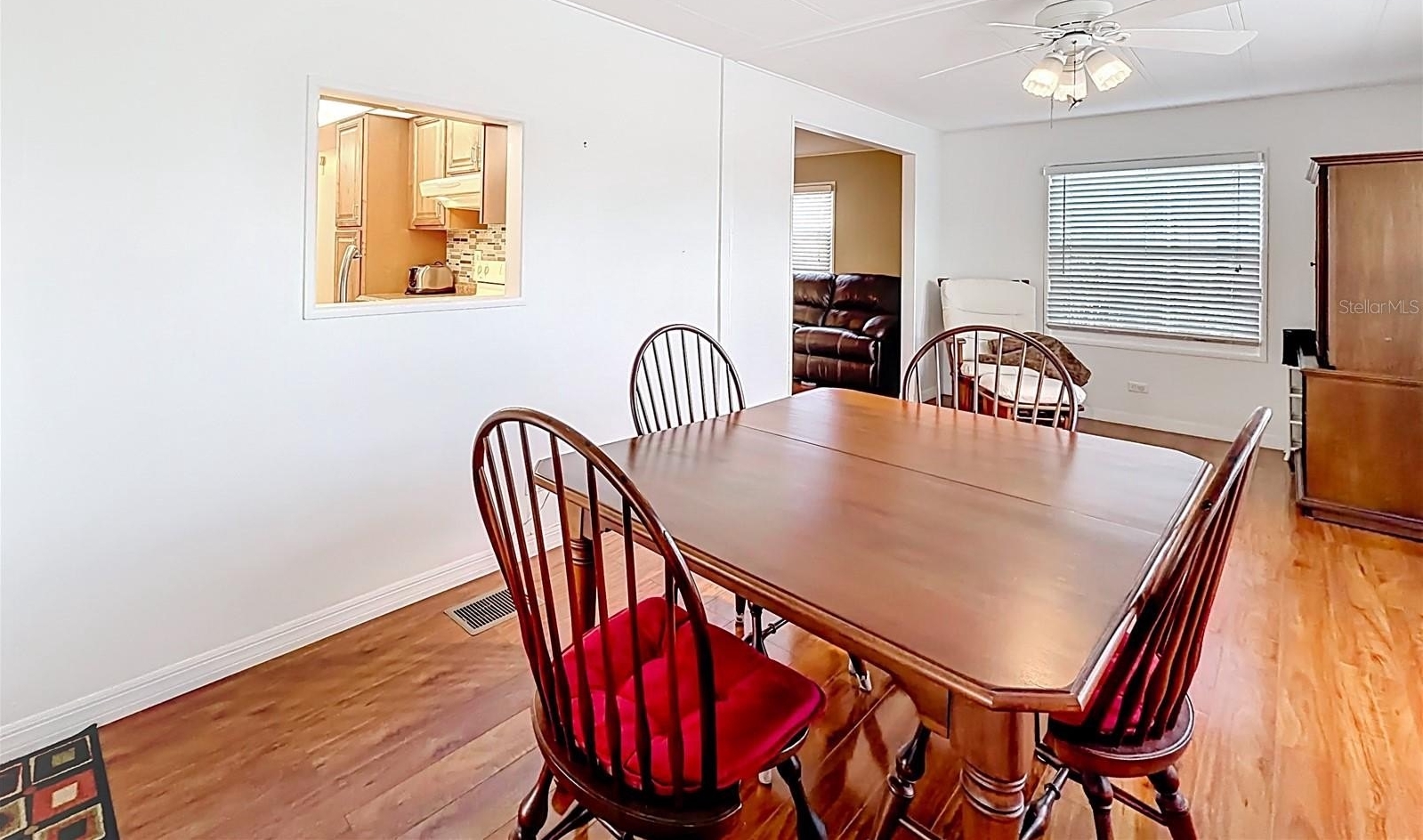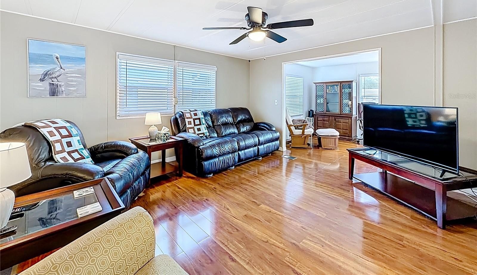 Exceptional value for this updated 1979 manufactured home located in the coveted Holiday Shores with access to Seminole Lake. Holiday Shores is a very active community and offers a wide range of recreational amenities, clubhouse, library, putting green, shuffleboard, swimming pool, fitness center, fishing, boating, plus boat slips on a first come first serve basis. For the low monthly maintenance fee of $200 it includes water, sewer, garbage pickup 2 x per week, lawn mowing and lawn spraying. The interior of the home is clean, light and bright, with central heat and air, ceiling fans, window treatments, beautiful flooring and includes all furnishings for a seamless transition into your new home. The large eat-in kitchen features bountiful oak cabinets, a built-in wine rack, a coffee bar (3'), a sideboard (7'), which offers ample storage, and generous countertop space. The nice size living room is just adjacent to the eat-in-kitchen with ample seating areas and opens up to what is currently used as a dining room, adding an additional 196 sq. ft. This large light & bright room could have any number of uses. The Florida Room is right off of the kitchen with sliding glass doors and beautiful tile floors with a ton of light. The primary bedroom boasts a large walk-in closet that could be a sleeping area for the grandkids as it is 8' x 5'.5" and could easily adhere to any sleeping needs. The primary bedroom has an ensuite bathroom with a walk-in shower and ample size vanity. The guest bedroom has a nice size closet and is adjacent to the 2nd bathroom which features a large vanity with ample storage and a jet tub-shower combination. The exterior of this residence is designed to be as appealing as its interior, featuring vinyl siding that offers low maintenance. The large front yard would be a great area for hosting horseshoes, cornhole toss or just relaxing in the sun. The three-car carport offers sufficient parking for your golfcart or a boat, along with a grill for your grilling pleasure. The shed located directly through the Sunroom, offers an additional refrigerator as well as the washer and dryer along with ample storage. Listed at $155,000, including the share, this property would make an excellent permanent home.