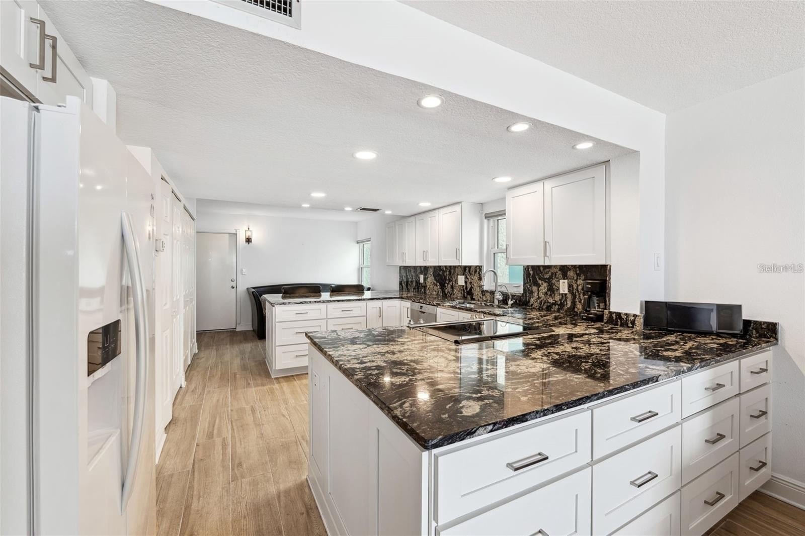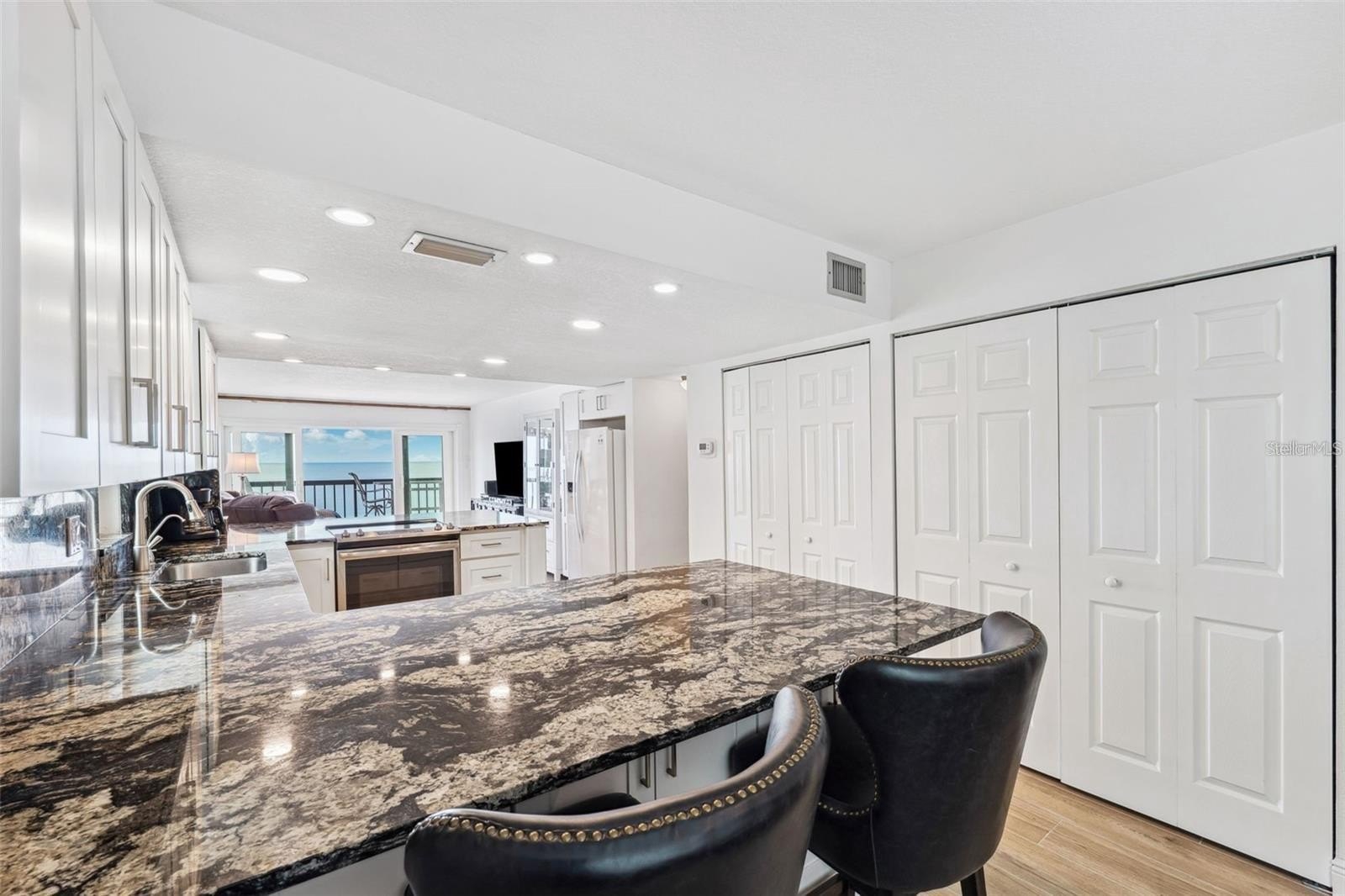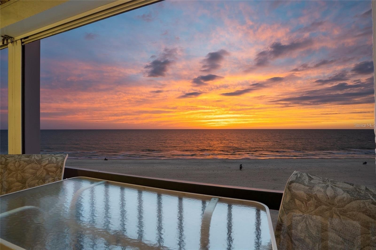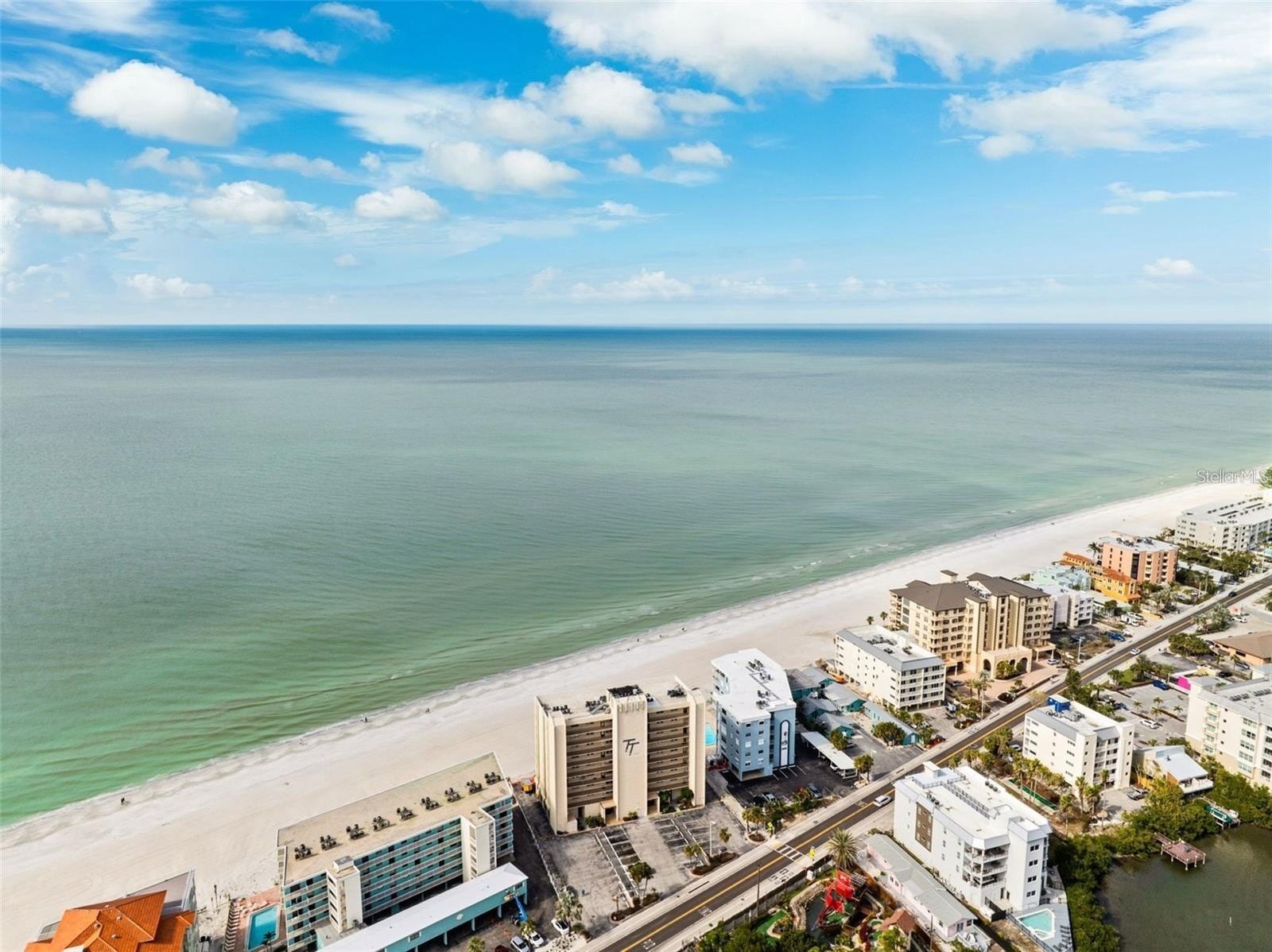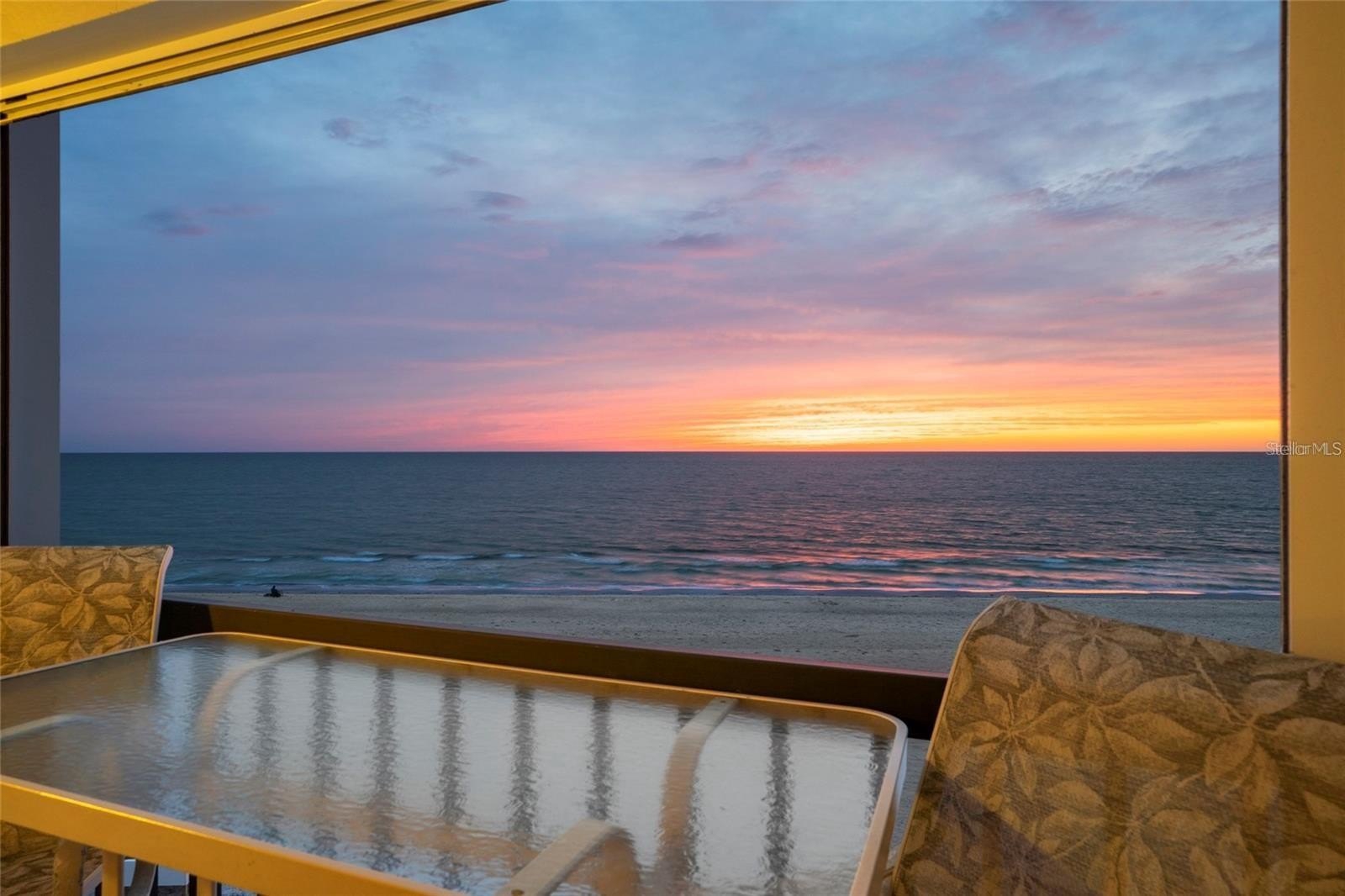 WELCOME TO PARADISE IN THE HEART OF INDIAN SHORES, FL! CLICK VIRTUAL TOUR to experience this stunning end-unit condo with unmatched panoramic views. Situated directly on the beach, this beautifully renovated 2-bedroom, 2-bathroom condo is a true gem. Step onto the breathtaking 21-foot balcony, where you'll enjoy sweeping ocean sunsets and the soothing sound of the waves. The interior is equally impressive, featuring wood-like plank tile flooring, solid surface countertops, and custom wood cabinetry. The expansive living space boasts hurricane-grade sliding glass doors and windows (2020), ensuring peace of mind and energy efficiency. The open-concept kitchen, living room, and primary bedroom all showcase incredible ocean views, making every moment feel like a vacation. The property is truly turnkey and includes updated electrical (2020) and additional renovations completed in 2019. As part of Tahitian Towers, you’ll also enjoy exclusive access to a heated swimming pool and a clubhouse, perfect for relaxing or entertaining. This condo is more than just a home - it’s an investment! Tahitian Towers has a strong rental history, making it ideal for vacation rentals or a second home. Located just steps from Salt Rock Grill, local boutiques, surf shops, and a vibrant selection of fine dining options, you'll also enjoy easy access to trolley stops, putt-putt golf, and so much more. Extra storage on the balcony adds convenience to this coastal haven. Don’t miss this rare chance to own a jaw-dropping waterfront property in one of Indian Shores’ most sought-after buildings. Schedule your private showing today and prepare to fall in love!