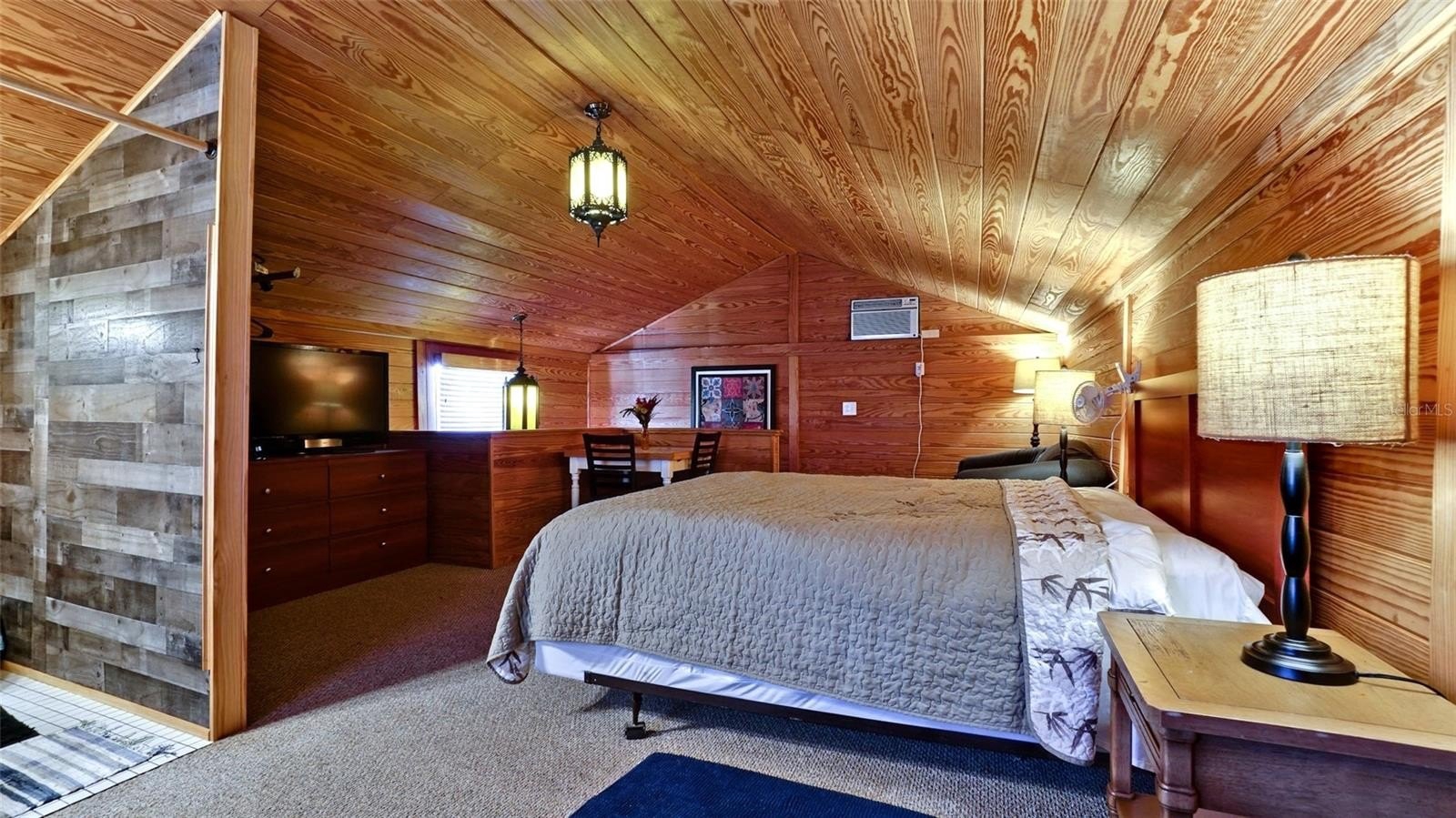The primary suite is something special. The master bath features stamped pine walls and a stunning clawfoot tub that feels like it belongs in a historic design magazine. It’s not cookie-cutter — and that’s exactly the point.