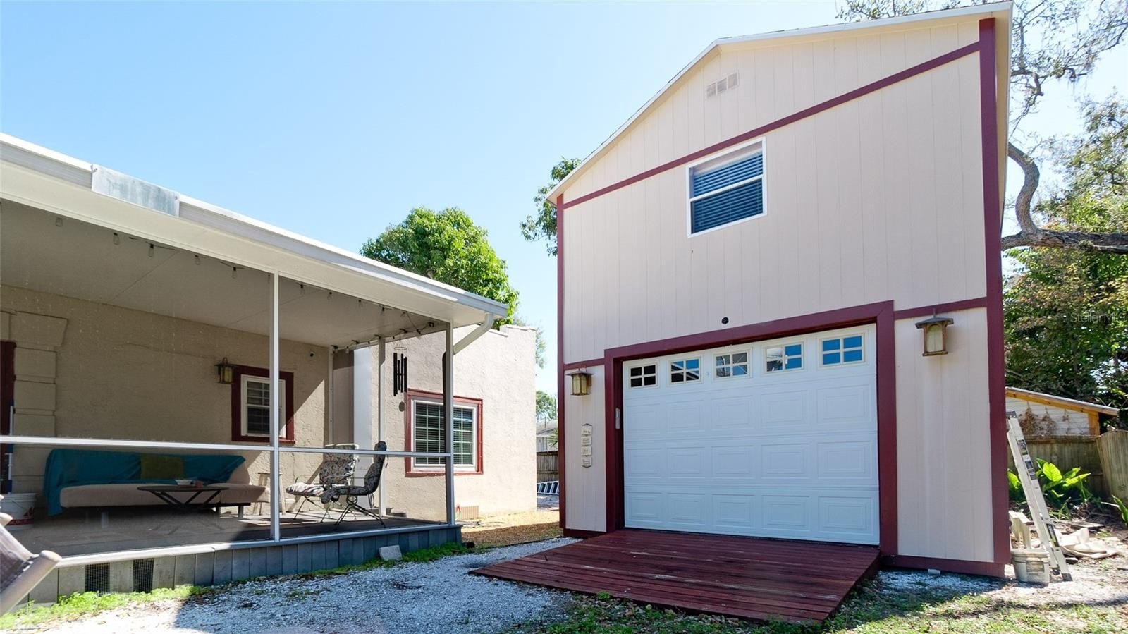 In the backyard, the detached one-car garage with a built-in workshop offers endless possibilities. Above it sits a charming in-law suite, perfect for guests, multigenerational living, or even rental potential.