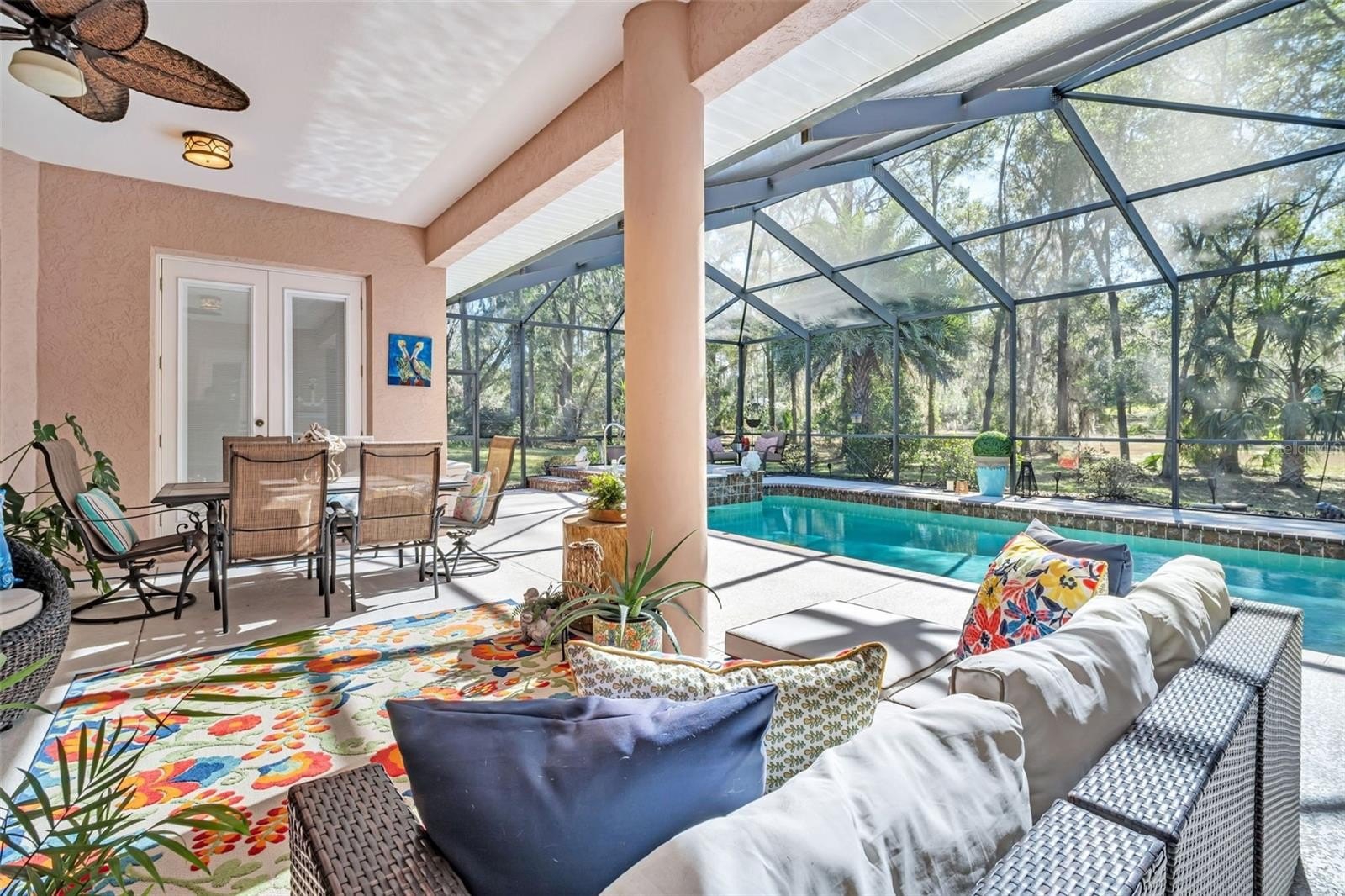 Stunning and spacious custom pool home offering nearly 2,900 square feet of refined luxury living, privately tucked away on a quiet cul-de-sac within Rainbow Springs’ highly sought-after St. Andrews community. Perfectly positioned on over one-third acre, this meticulously maintained residence backs to a lush, protected preserve, creating a serene, park-like setting with exceptional privacy, tranquility, and natural beauty. This impressive home features three generously sized bedrooms, three full baths, and a custom screen-enclosed pool and spa with gas-powered heat pump. Upon entering the grand foyer, you are immediately captivated by sweeping views of the expansive lanai, sparkling pool, and preserved natural surroundings. Multiple inviting living spaces include a chef-inspired kitchen, centrally located and thoughtfully designed for both beauty and functionality, opening seamlessly to a warm and welcoming family room with gas fireplace and French doors leading to the outdoor luxury entertaining retreat. The luxurious owner’s suite showcases a dramatic double tray ceiling, a versatile bonus office or flex space, private double doors to the pool, a beautifully updated en-suite bath, and spacious his-and-hers walk-in closets. Two additional guest bedrooms with volume ceilings and generous closets are thoughtfully positioned for privacy and comfort, along with a stylish guest bath with convenient pool access. The expansive Southern-style lanai is ideal for year-round luxury outdoor living and entertaining, highlighted by a newer top-of-the-line “Fire Magic” summer kitchen. Completing the exterior are an oversized side-entry garage, long brick paver driveway, and generous turn pad. Additional features include a split-bedroom floor plan, walk-in closets, double tray and volume ceilings, crown molding, arched doorways and windows, full-view French doors in the main living areas and primary suite, central vacuum system, tinted windows, gas fireplace, tankless hot water heater, and a 22kW Generac whole-house generator (2020), among countless other updates and enhancements. Too many upgrades and special touches to list—this exceptional home must be seen to be fully appreciated. An added bonus is walking-distance access to the residents’ private park and beach, as well as the Rainbow Springs Community Center, featuring the popular River Run Café, Rainbow River access, clubhouse, pool, fitness center, tennis and pickleball courts, and scenic walking trails. This one-of-a-kind home offers an unparalleled lifestyle—schedule your private showing today!