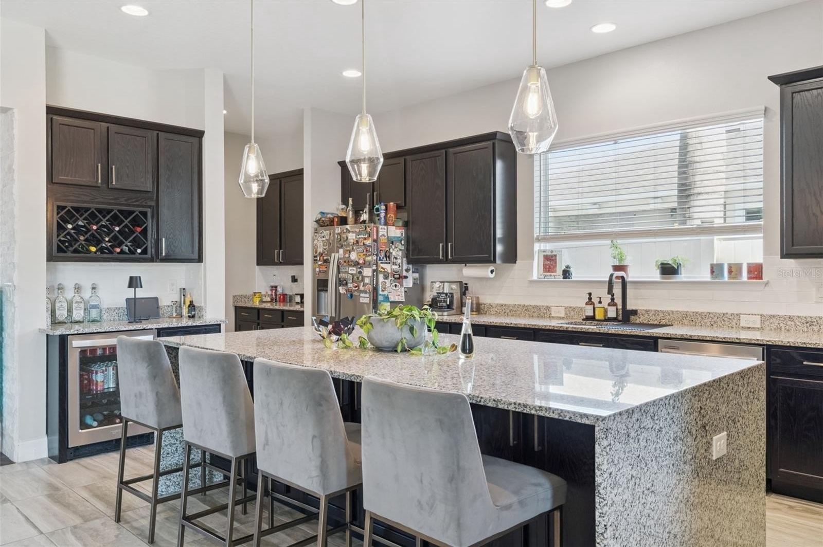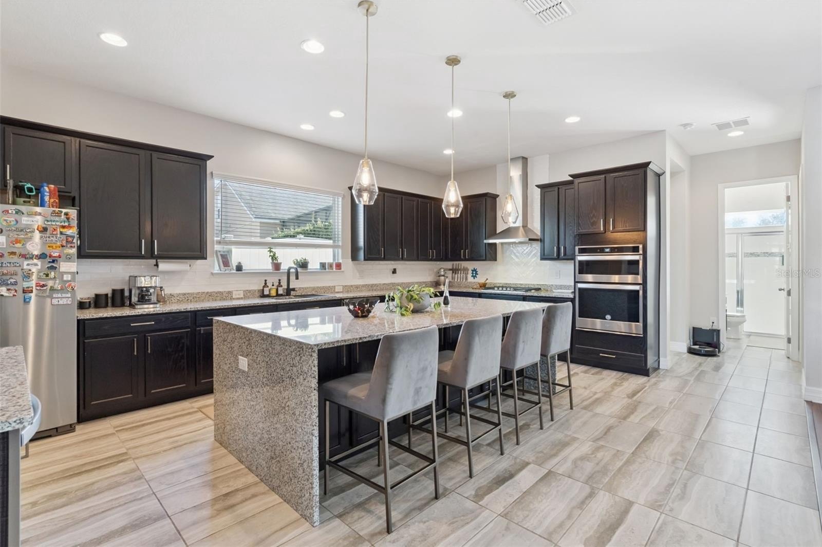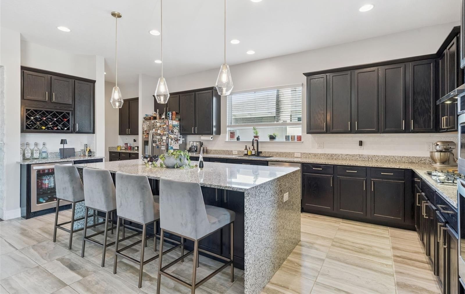 Your Dream Home is closer than you think! Oxford Chase is a Gorgeous Boutique Estate Home Community by Mattamy Homes. Cambridge/Tuscany model floorplan, Craftsman/Bungalow style 1-story home with 3-car finished garage with remotes (2+1). Great split floorplan with luxury vinyl throughout. Gorgeous gourmet kitchen and oversized covered lanai. Full appliance package. Once inside, a formal foyer and coat closet welcomes everyone who enters. This three-way split floorplan has 2 bedrooms with a shared full bath at the front of the home. The owner’s suite and the third bedroom with private bathrooms are separated by the living areas for added privacy. The oversized L-shaped kitchen is never short of prep space or storage space with its banks of 42" cabinets. The chef's gourmet kitchen is accented with an oversized waterfall island. Whirlpool stainless steel appliances. wine refrigerator, granite countertops, Subway Tile backsplash, wine storage cabinet, gas range top with stainless steel range hood, and in-wall oven. You will definitely have a place for everything in the walk-in pantry. The dining room and great room are accented by 9'4" tray ceilings and arched doorways. Upgraded Faucets and Hardware. The dining room has a custom designer stone wall feature. A triple 8-foot sliding glass door in the living room opens up to the spacious covered lanai. Open Lanai is pre-plumbed for an outdoor kitchen. Ceiling fans and tray ceilings throughout the home. Upgraded Lighting Fixtures and Fans. The primary suite has rear-facing windows to take advantage of natural light. With massive walk-in closets, dual sink vanities, and a separate shower with an oversized soaking tub. Make-up vanity. Laundry room off the walk-in closet in the primary bedroom.