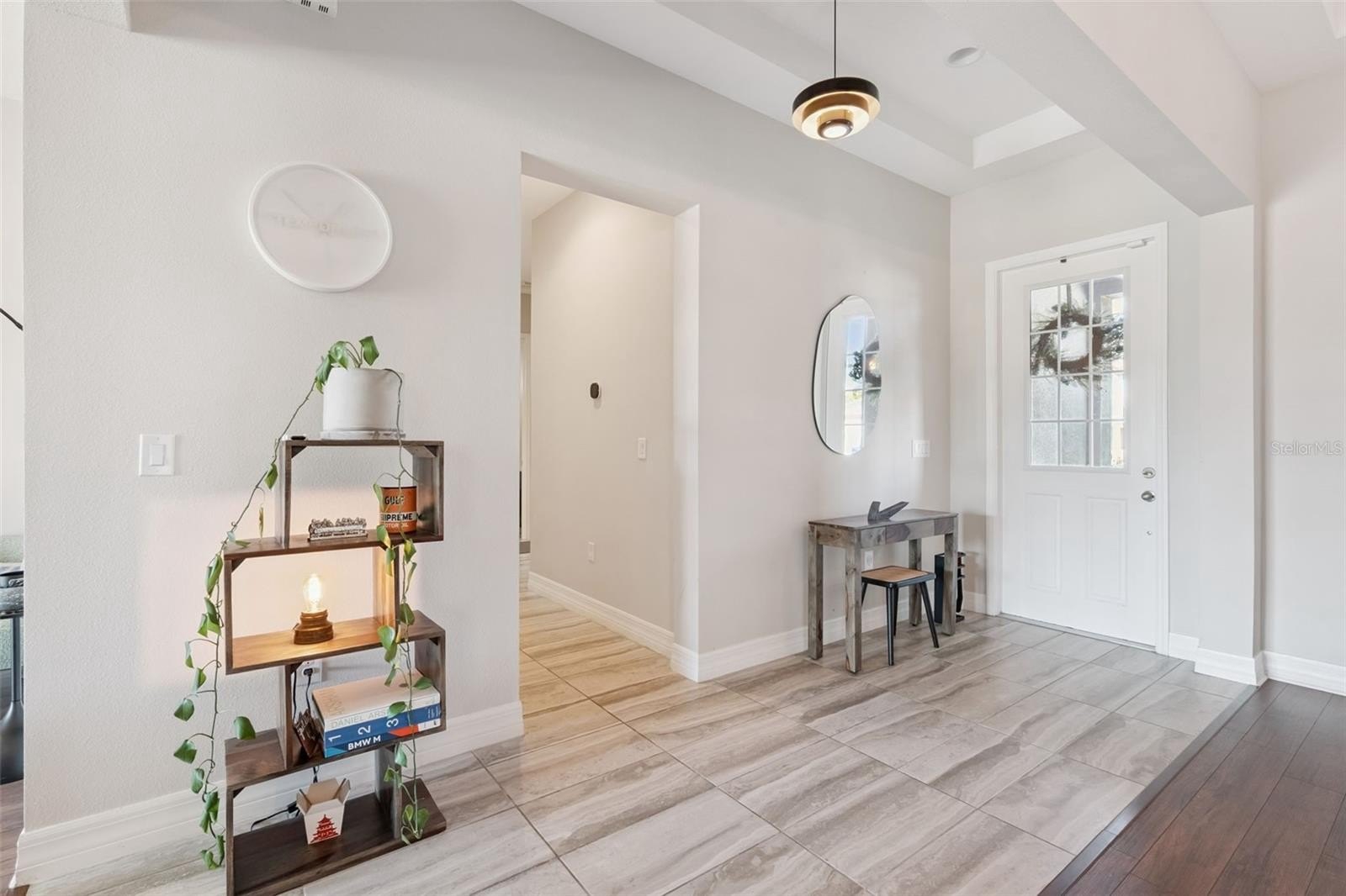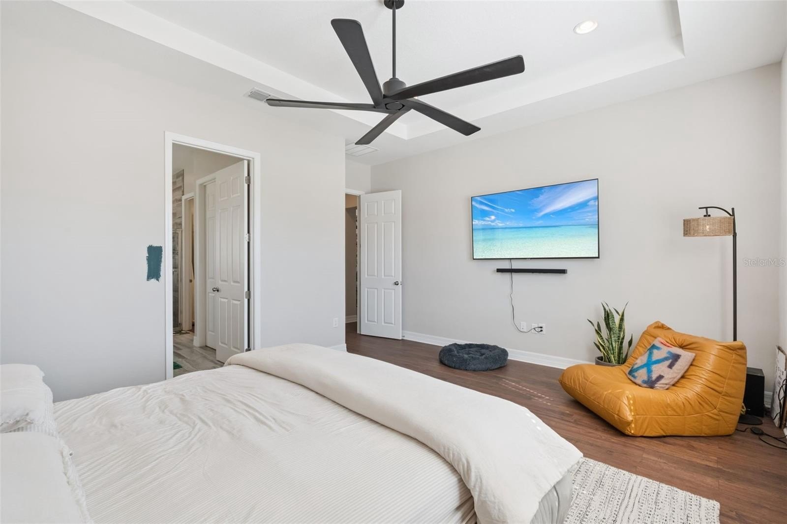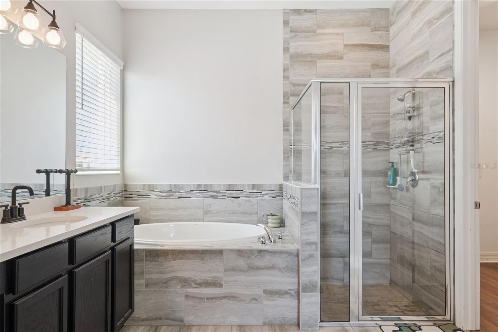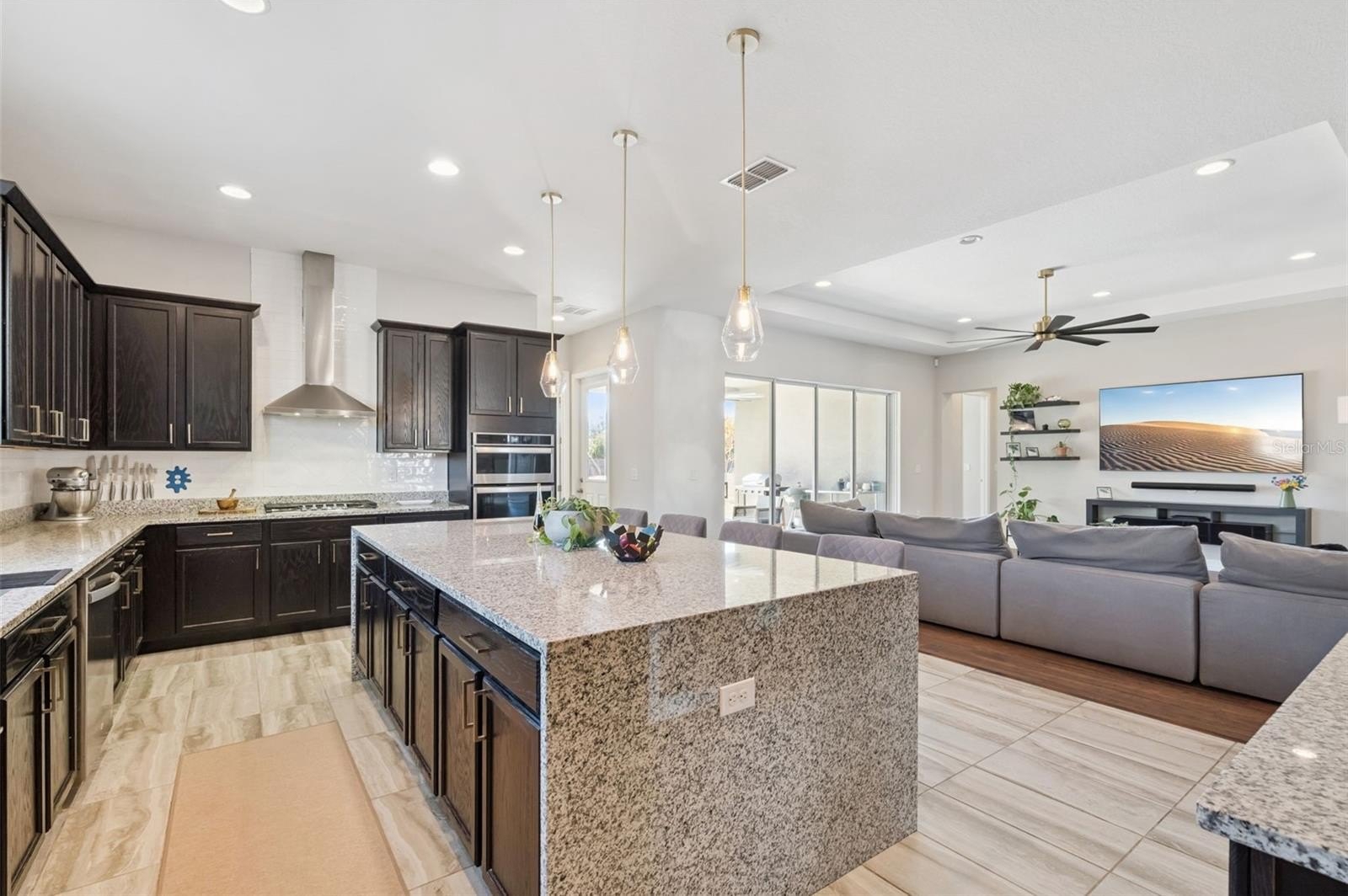Your Dream Home is closer than you think! Oxford Chase is a Gorgeous Boutique Estate Home Community by Mattamy Homes. Cambridge/Tuscany model floorplan, Craftsman/Bungalow style 1-story home with 3-car finished garage with remotes (2+1). Great split floorplan with luxury vinyl throughout. Gorgeous gourmet kitchen and oversized covered lanai. Full appliance package. Once inside, a formal foyer and coat closet welcomes everyone who enters. This three-way split floorplan has 2 bedrooms with a shared full bath at the front of the home. The owner’s suite and the third bedroom with private bathrooms are separated by the living areas for added privacy. The oversized L-shaped kitchen is never short of prep space or storage space with its banks of 42" cabinets. The chef's gourmet kitchen is accented with an oversized waterfall island. Whirlpool stainless steel appliances. wine refrigerator, granite countertops, Subway Tile backsplash, wine storage cabinet, gas range top with stainless steel range hood, and in-wall oven. You will definitely have a place for everything in the walk-in pantry. The dining room and great room are accented by 9'4" tray ceilings and arched doorways. Upgraded Faucets and Hardware. The dining room has a custom designer stone wall feature. A triple 8-foot sliding glass door in the living room opens up to the spacious covered lanai. Open Lanai is pre-plumbed for an outdoor kitchen. Ceiling fans and tray ceilings throughout the home. Upgraded Lighting Fixtures and Fans. The primary suite has rear-facing windows to take advantage of natural light. With massive walk-in closets, dual sink vanities, and a separate shower with an oversized soaking tub. Make-up vanity. Laundry room off the walk-in closet in the primary bedroom.