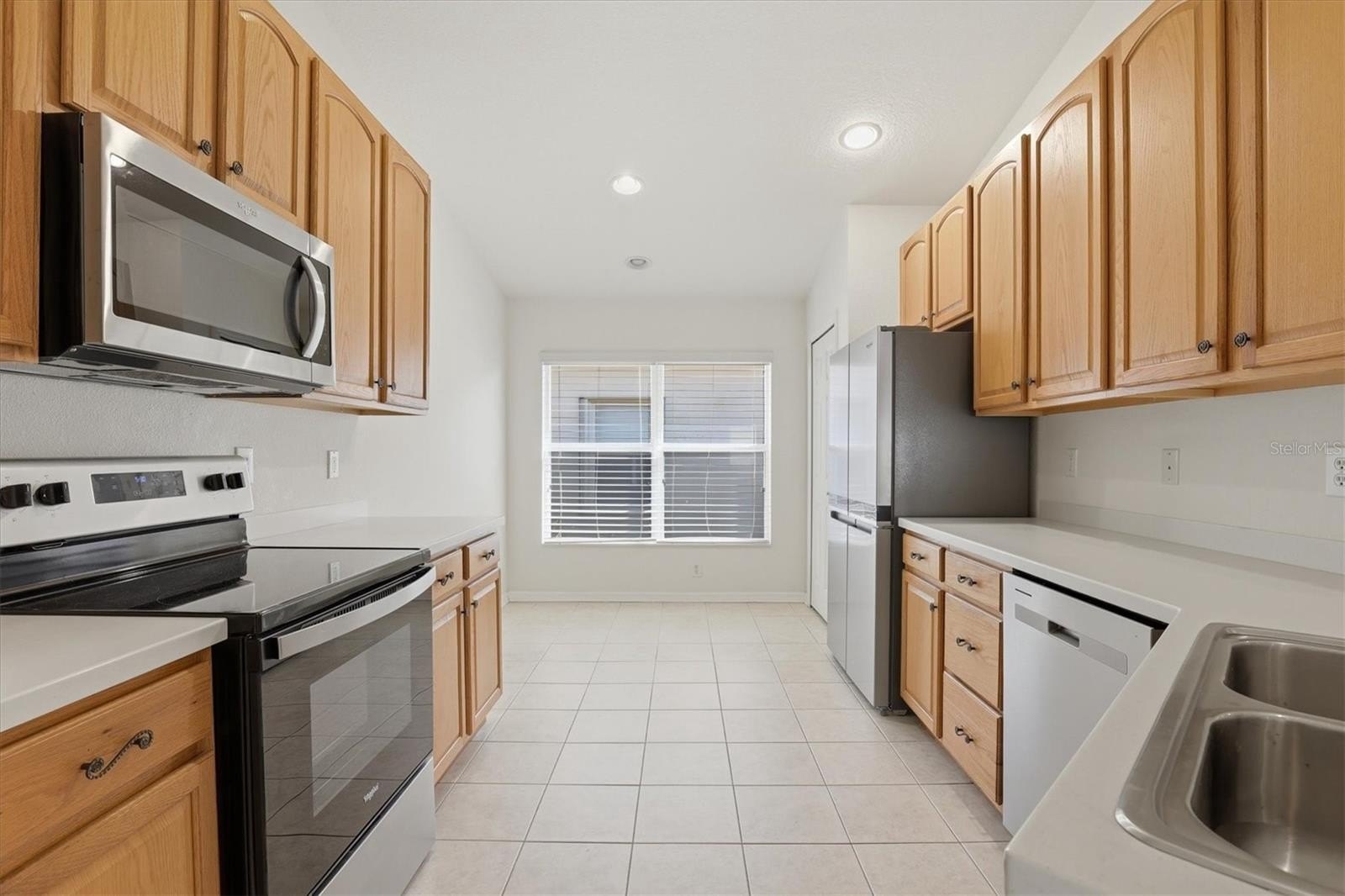 The spacious living area is ideal for both relaxing and entertaining. The eat-in kitchen features solid-surface countertops, 42-inch wood cabinetry, a cozy breakfast nook, and brand-new stainless steel appliances installed in November 2024.