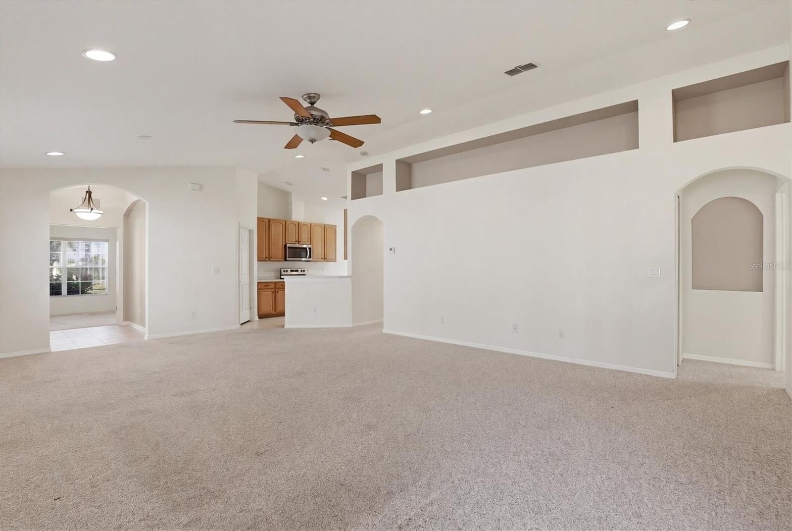 Perfectly situated on a private conservation lot with no rear neighbors, this home offers peaceful nature views and is located on the final lot developed in the community. Inside, you’ll find soaring ceilings, an open floor plan, and an abundance of natural light throughout. The main living areas feature tile flooring, while Berber carpet adds warmth and comfort in the living room, office, and bedrooms.