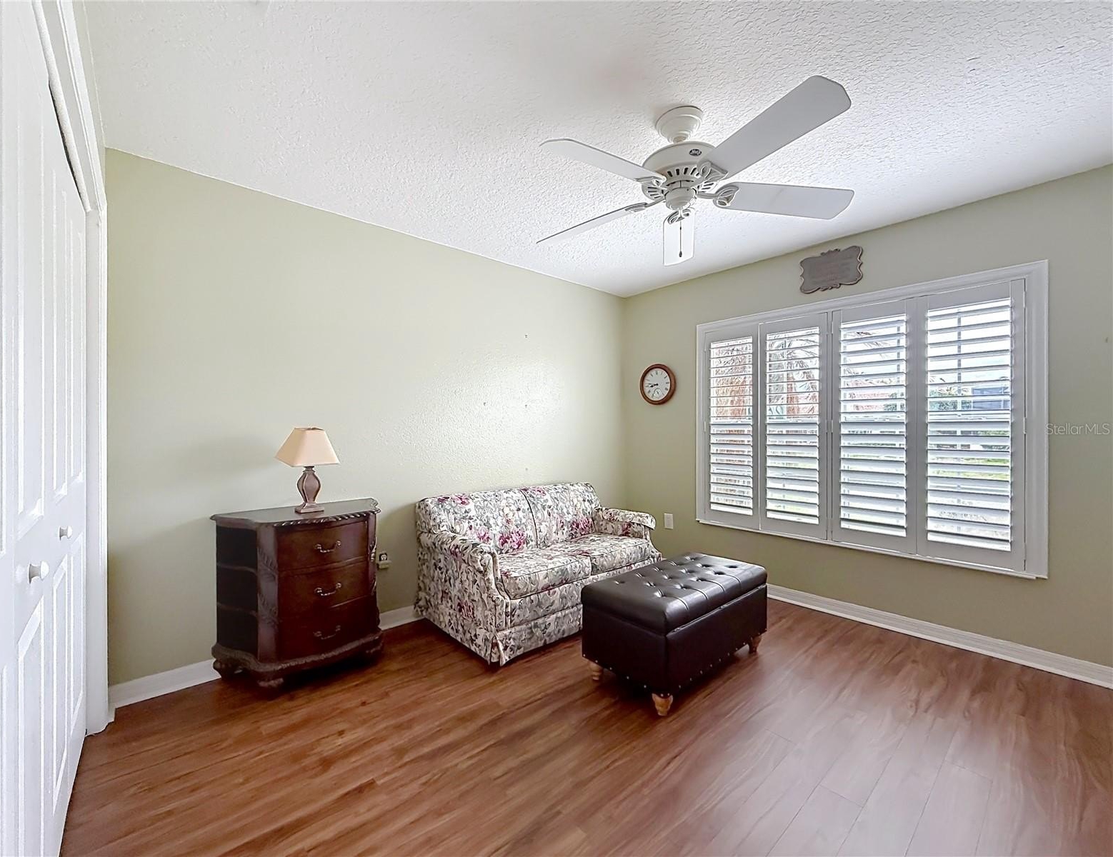 The primary suite is generously sized and includes his-and-her closets and a well-appointed en-suite bath with a Roman shower, dual sinks, and bright lighting, making mornings effortless before heading out for golf or activities. The second bedroom is perfect for guests, while the third bedroom offers flexibility as a home office or additional guest room. All bedrooms feature LVP flooring for style and durability.