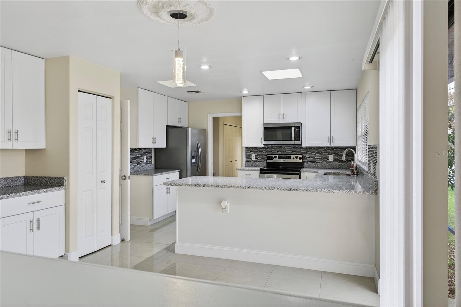 The courtyard style front welcomes you to into a beautifully designed home. The kitchen overlooks a cozy family area, featuring a fireplace and glass sliding doors opening up to a beautiful rear water view. There is a convenient laundry room and a half-bath on the main level. The tri-level split design leads you to three bedrooms on a lower half-level and as well as another bathroom. Two master suites with their own ensuites are on the upper half-level. Throughout the home you will find ample amount of storage. You'll also enjoy the three-bay garage, plenty of room for vehicles, toys and more storage.