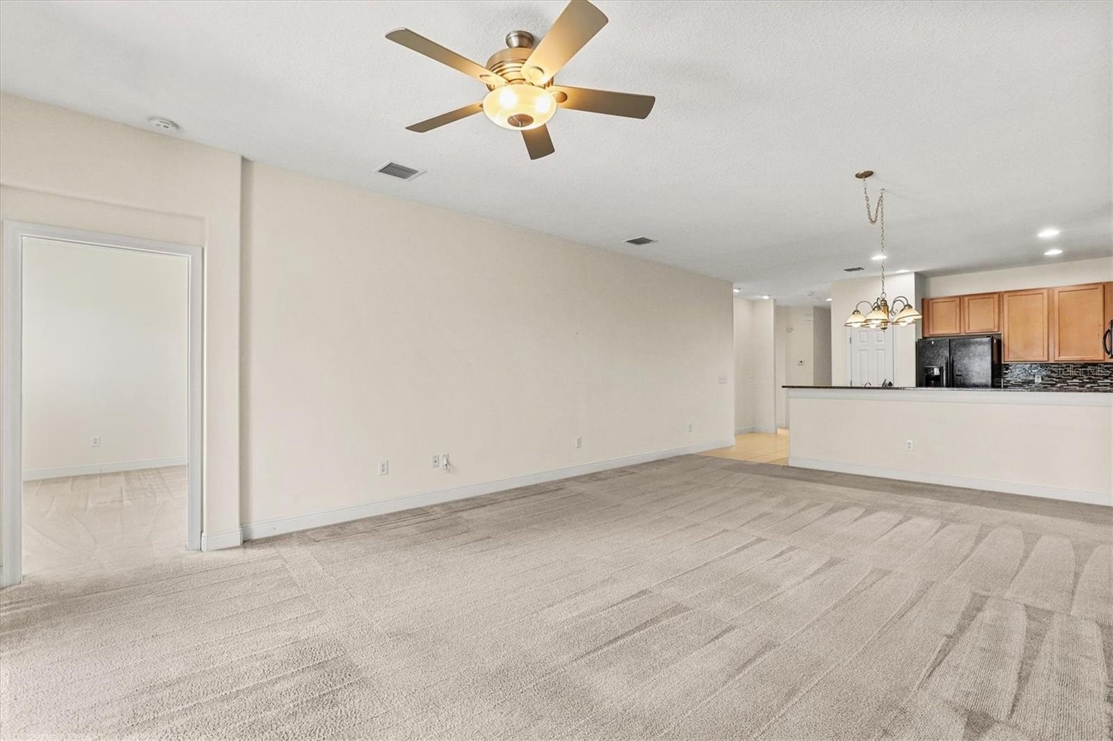 The open-concept floor plan seamlessly connects the kitchen, dining, and living areas—creating the perfect setting for entertaining guests or enjoying relaxed evenings at home. The kitchen shines with 42-inch maple cabinetry, granite countertops, and generous prep space, providing both style and practicality.