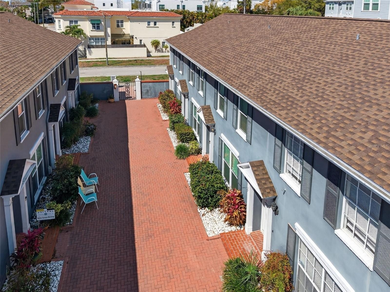 Outside, the charming brick courtyard setting creates a welcoming atmosphere and a unique sense of community. The property also includes covered parking, adding everyday convenience.