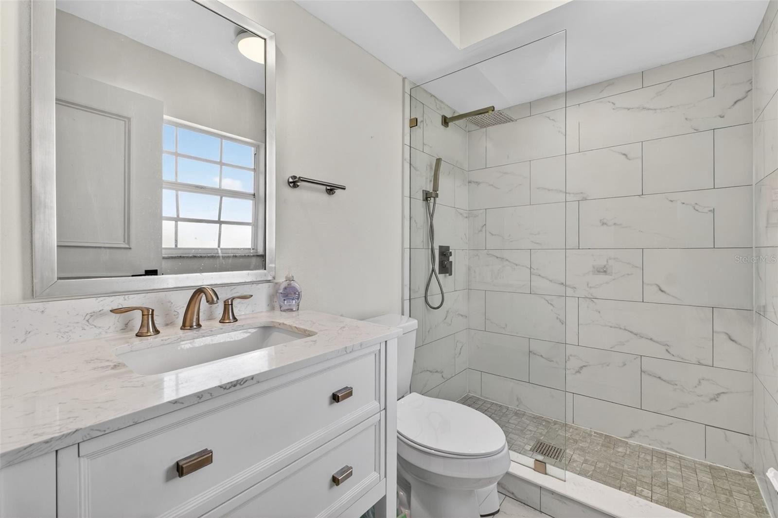 Upstairs, the generously sized bedrooms provide comfortable retreats with great natural light and plenty of storage. The bathrooms have been tastefully updated, including a beautifully renovated walk-in shower with modern tilework and glass enclosure. Every space in the home has been thoughtfully designed to maximize comfort and livability.