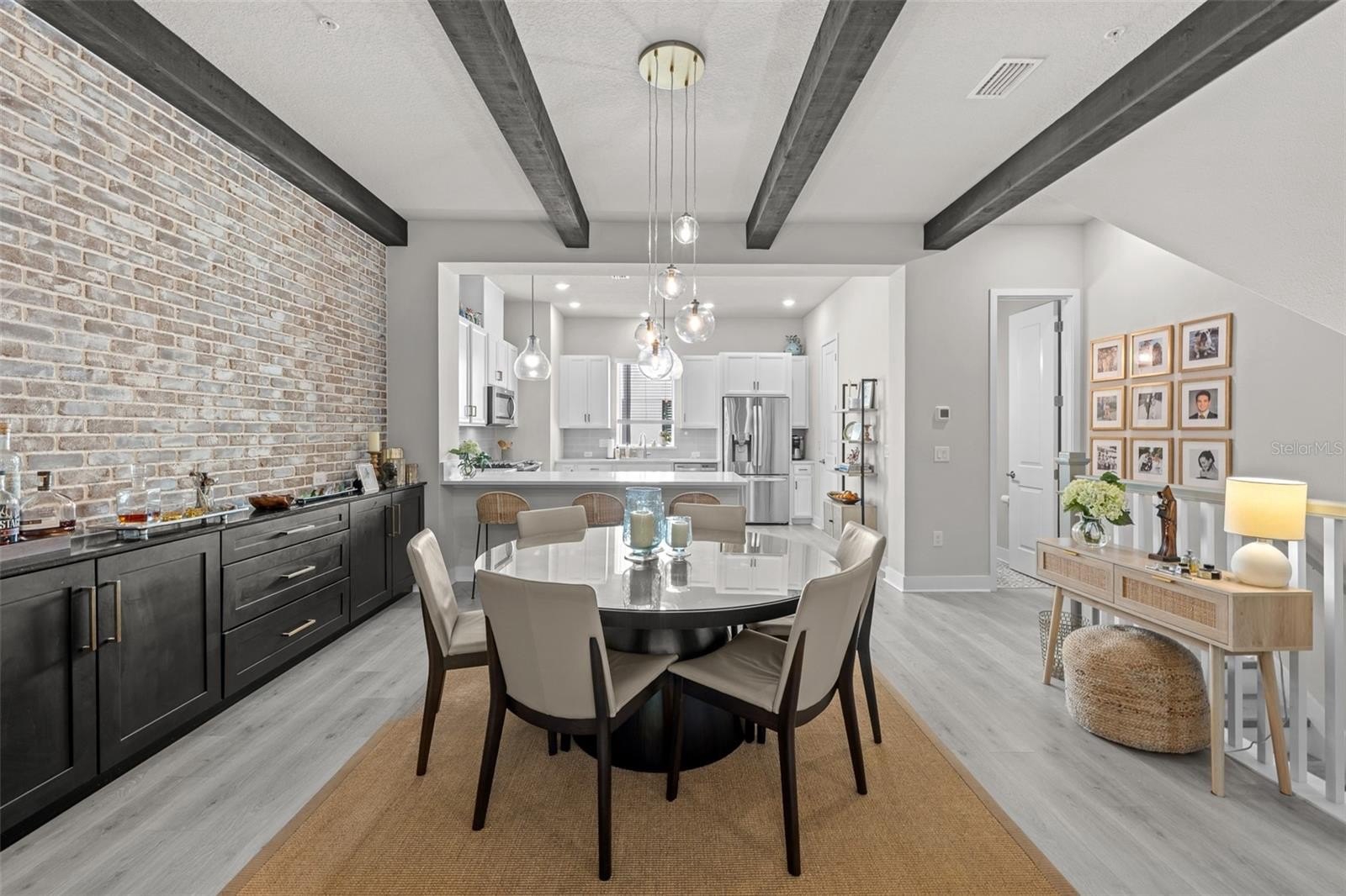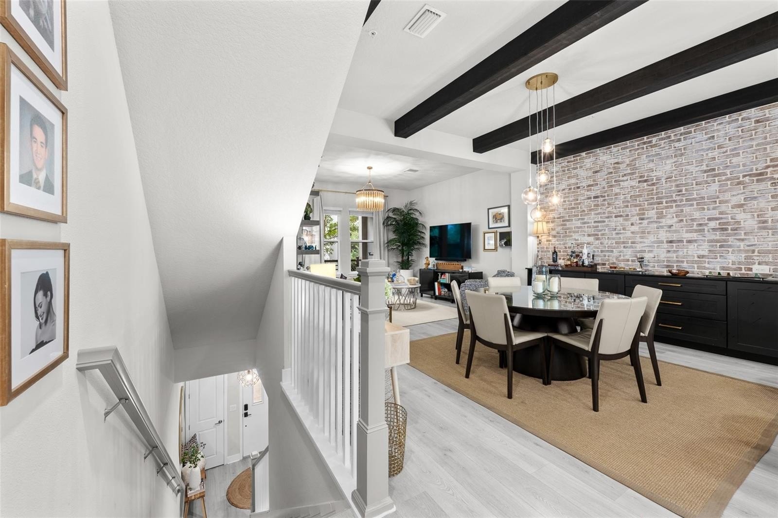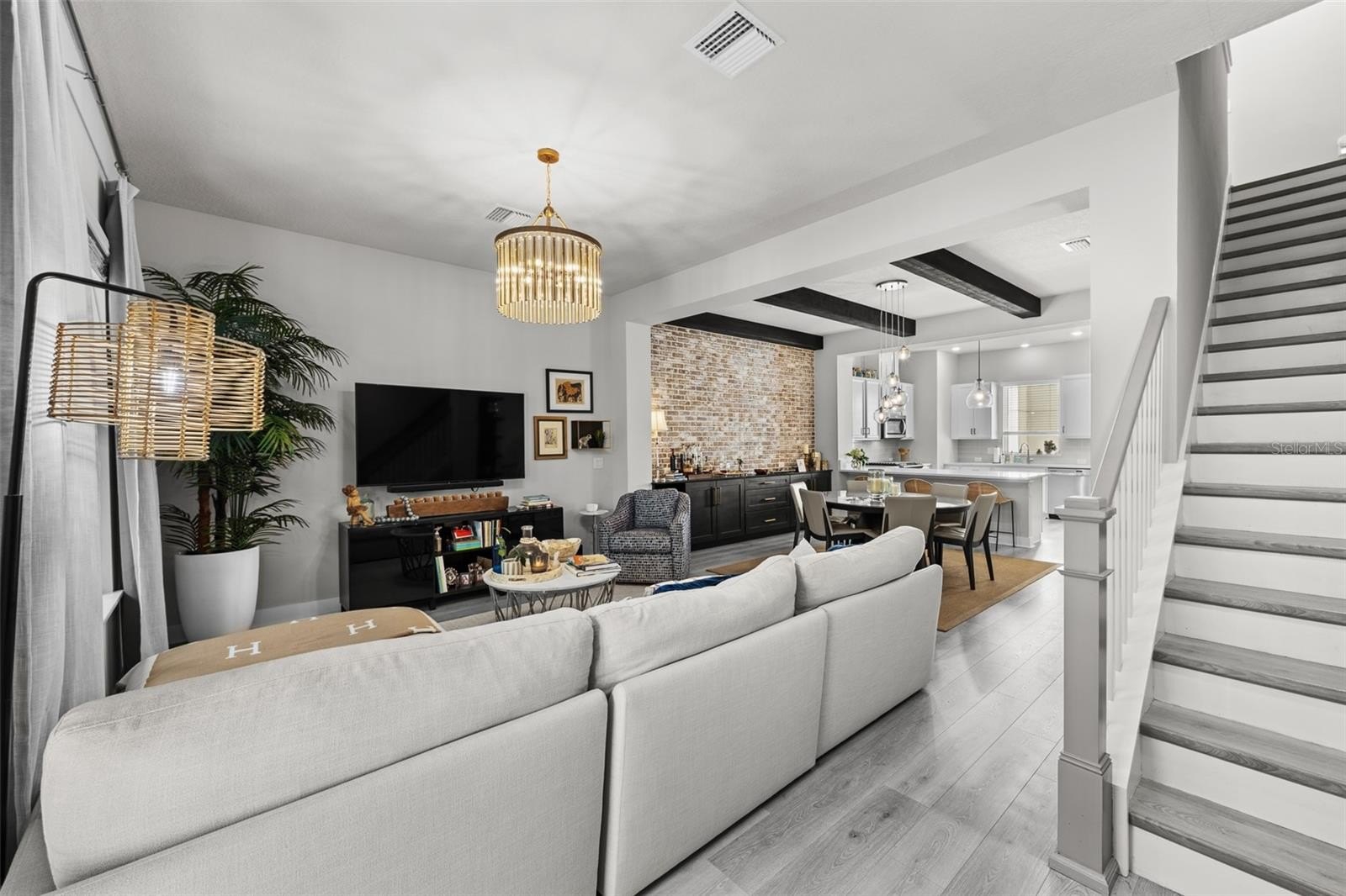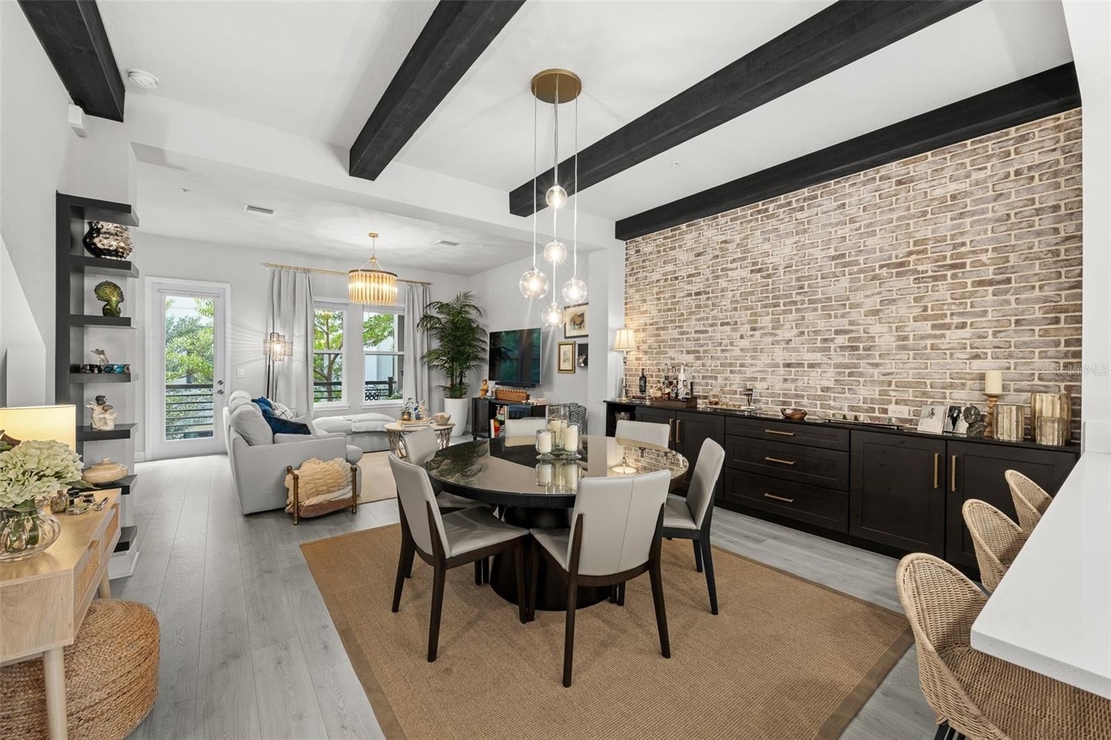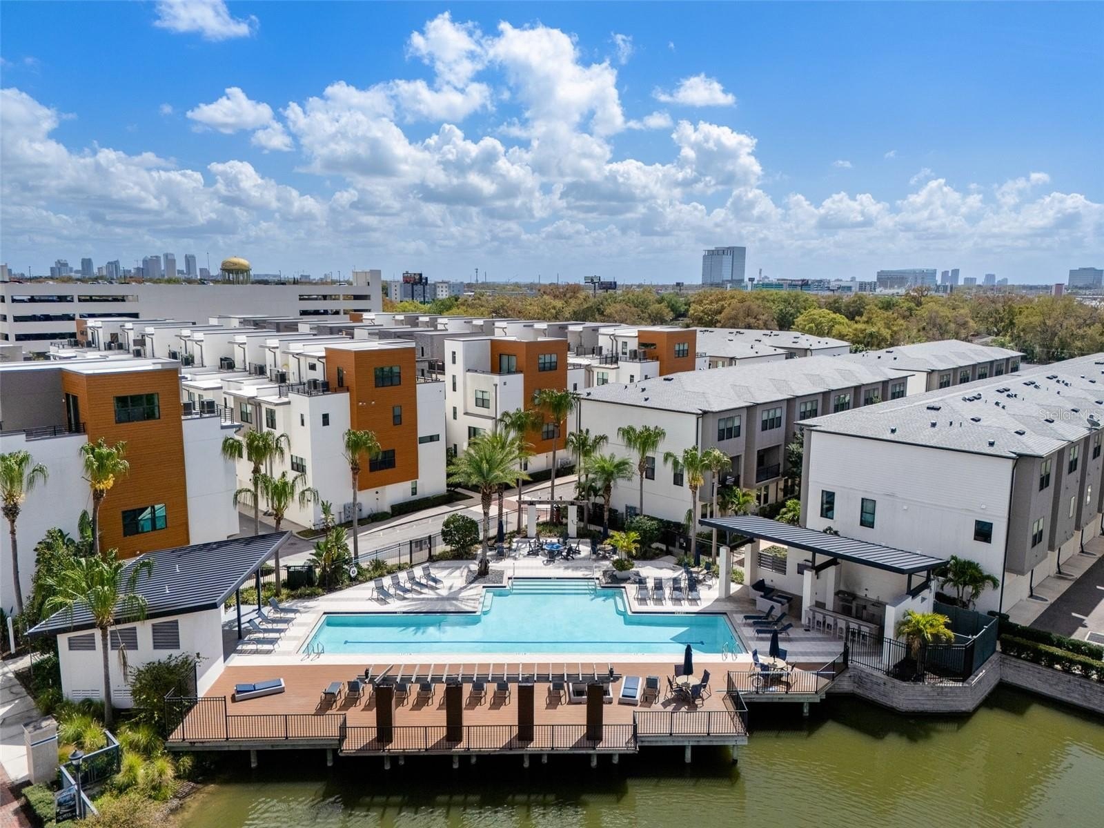 Come see this gorgeous David Weekley townhome in the center of the West Shore Business District's vibrant community. Strategically located in Westshore Village near front of the complex, this beautiful unit is just minutes from plenty of restaurants, like Cooper's Hawk, Del Frisco, Eddie V's, Texas de Brazil, Kona Grill and Miller's Ale House. It is a short hop across Boy Scout to International Plaza and Bay Street with its amazing shops and restaurants. Raymond James Stadium is very convenient as well. This modern townhome features 3 bedrooms and 3 and half baths with high-end designer finishes. As you enter the home you will notice the soaring ceilings which enhance the natural light brought in by the hurricane rated impact windows. There is one bedroom and bath is downstairs with accent wall along with an oversized two-car garage. Added ceiling storage racks. On the second floor there is an open concept living and dining room and a chefs dream kitchen perfect for entertaining. Upgraded quartz counters, designer back splash and stainless steel appliance package including a natural gas stove . The dining room features a dramatic washed brick wall along with storage. The living room has beautiful upgraded crown molding, beamed ceilings, striking chandelier, window treatments and engineered laminate flooring. The living room opens to a balcony overlooking the courtyard, a perfect place to enjoy morning coffee or after work beverages. On the third floor is a spacious master bedroom suite with glass shower and walk in closet. There is also a third bedroom with its own en suite bathroom. The locale is within walking distance of a range of amenities including restaurants and bars. Don’t miss out on this great opportunity to own a piece of Tampa's vibrant community.