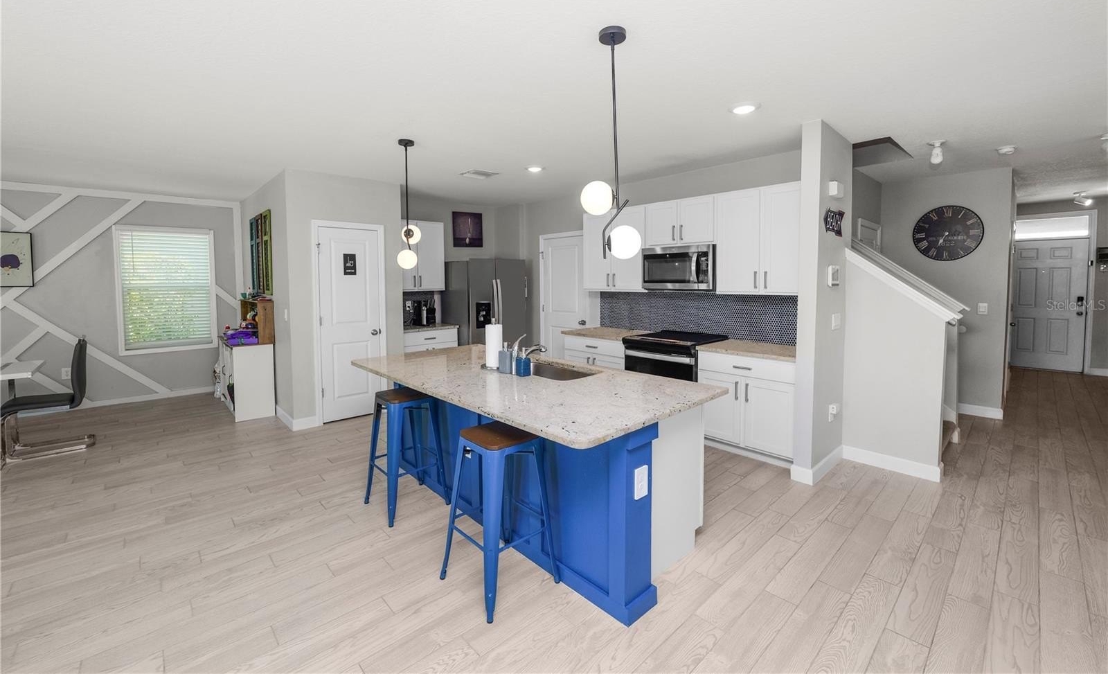 Take a look at this 4 bedroom 2.5 bathroom home located conveniently in Lakewood Ranch with easy access to dining, shopping and major roadways. Arriving at the home, you’ll appreciate the neatly manicured lawn and welcoming blue front door. Inside you’ll find tile flooring throughout the living area. The open floor plan provides a living room/dining room combo and a spacious open kitchen. The kitchen features a large granite top island, updated tile backsplash and lighting, stainless steel appliances, and a closet pantry. You’ll find a half bath downstairs for guests. The four bedrooms are located upstairs with the primary bedroom featuring an accent wall, plenty of natural light and an en-suite with a dual sink vanity, stand up shower and a walk in closet. The remaining bedrooms offer plenty of space and share the main hall bathroom with a dual sink vanity and tub/shower combo. You’ll also find the indoor laundry room on the second level. Outside, you’ll find a covered back patio, the perfect spot for relaxing after a long day. The community offers a resort style pool, clubhouse, playground, walking trails, along with tennis and pickle ball courts! This home and community have so much to offer, schedule your private showing today!