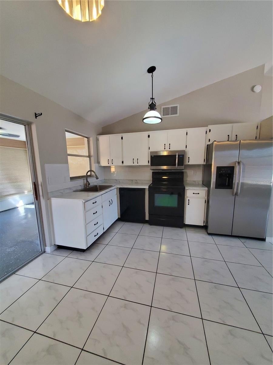Step into this charming and thoughtfully updated 2-bedroom, 2-bathroom home with a 1-car garage—where comfort meets effortless style in every corner. From the moment you arrive, the inviting curb appeal and mature landscaping set a warm, welcoming tone. Inside, you’ll find a bright, open living space with soaring ceilings and abundant natural light that gives the home an airy, relaxed feel. The kitchen is both stylish and functional, featuring sleek countertops, modern appliances, and crisp cabinetry—perfect for everything from quick breakfasts to cozy dinner nights. Just beyond, sliding glass doors lead to a spacious screened-in lanai, creating a seamless indoor-outdoor flow ideal for morning coffee, evening unwinding, or hosting friends with a breeze drifting through. Both bedrooms are generously sized with beautiful flooring and ample closet space, offering peaceful retreats at the end of the day. The primary suite includes a beautifully updated en-suite bathroom with a walk-in glass shower and elegant finishes, while the second bathroom features a clean, modern design perfect for guests or family. Additional highlights include updated flooring throughout for a cohesive, modern look, fresh, neutral tones ready for your personal touch, dedicated laundry area in the garage with extra storage space, and a spacious backyard with room to relax, garden, or play. Whether you’re a first-time buyer, downsizing, or looking for a turnkey investment, this home checks all the boxes with its blend of charm, functionality, and updated features.
