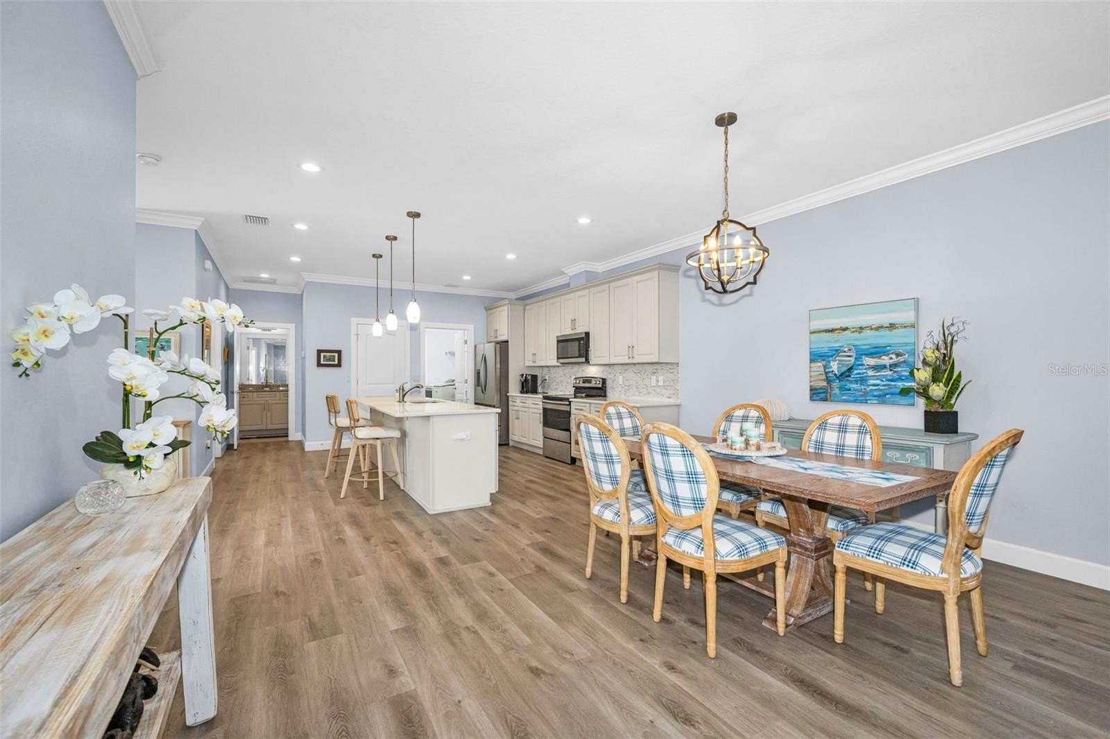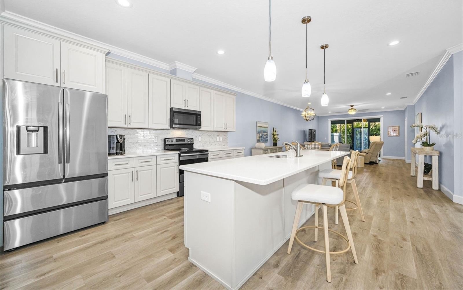 Discover modern villa living in this beautifully maintained 3-bedroom, 2-bathroom home built in 2020. Ideally situated in one of Largo's most convenient and sought-after communities, this single-story residence offers a bright, open layout with plantation shutters, luxury vinyl flooring, and ceiling fans throughout. Step into a spacious living area that flows seamlessly into the enclosed sunroom, an ideal spot for morning coffee, lounging, or alfresco-style dining. Outside, enjoy a fully fenced yard with mature, low-maintenance landscaping. The split floor plan provides comfort and privacy, featuring a well-appointed primary bedroom with an en-suite bathroom, while the additional bedrooms are perfect for guests, a home office, or flexible use. Nestled in a prime Largo location, this home places you minutes from many of Pinellas County's most loved destinations, including Eagle Lake Park, Largo Central Park, the Largo Community Center, Largo Nature Preserve, and the Central Park Performing Arts Center. You'll also appreciate quick access to top medical facilities, major airports, shopping, dining, and Gulf Coast beaches. Key Features: Built in 2020, open-modern layout, 3 beds/2 baths, enclosed sunroom, fully fenced backyard, mature low-maintenance landscaping. Move-in ready and ideally located for convenience, outdoor recreation, and effortless Florida living.