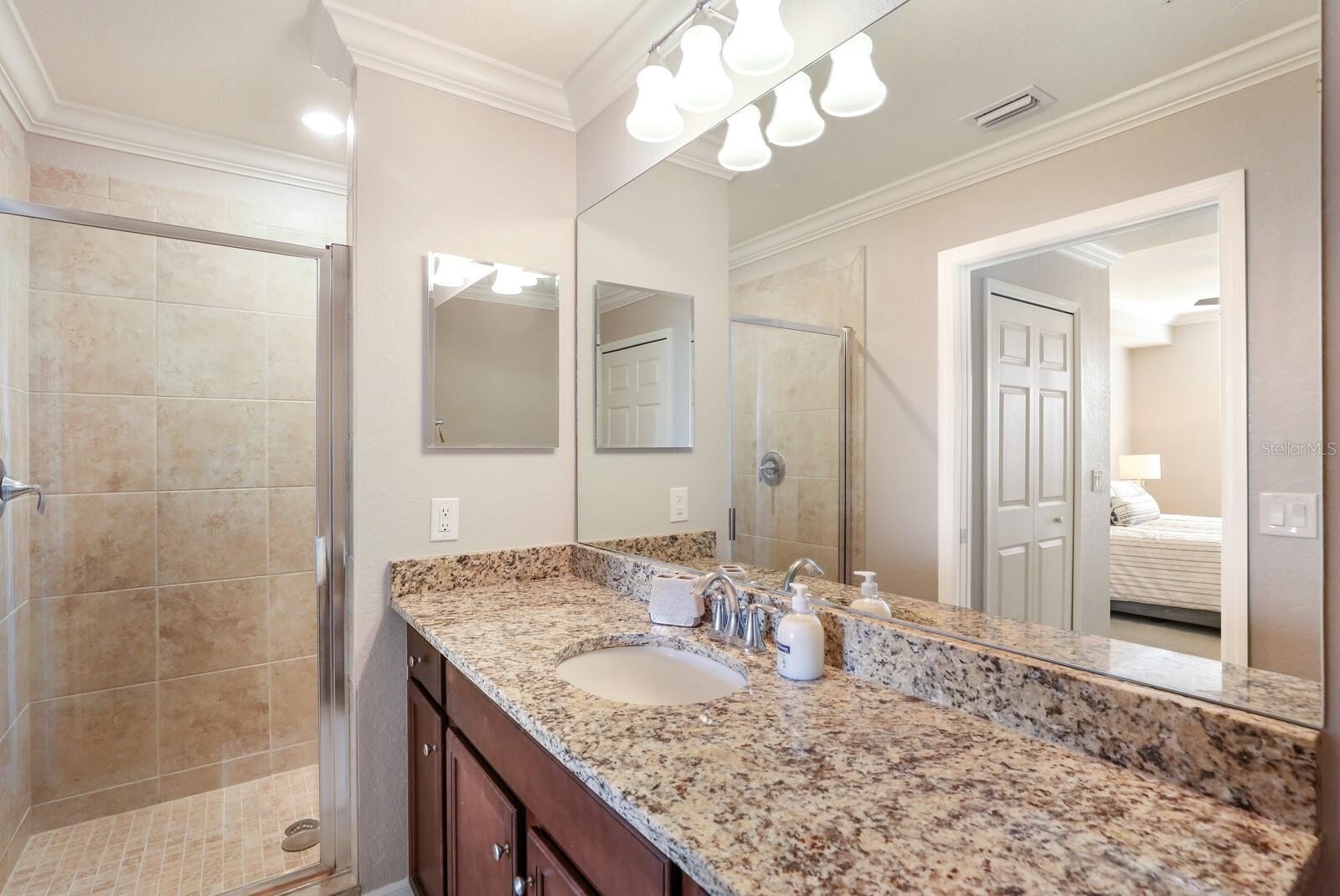 The well-appointed kitchen is designed to impress, with granite countertops, stainless steel appliances, ample cabinetry, and a dedicated dining area—ideal for hosting guests. The primary suite offers a private retreat with its own en-suite bath, while a second bedroom and full bath provide comfort and flexibility for family or visitors. Additional features include a laundry closet, utility room, assigned covered parking, and a private storage unit. Located just steps from a satellite pool and a short distance to the spectacular amenity center, residents enjoy access to a resort-style pool with waterfalls, lap pool, spa, Tiki bar, fitness center, salon, and social spaces. Stay active with tennis, pickleball, and bocce, or unwind at the elegant clubhouse featuring dining, a bar, and outdoor gathering areas. Golf enthusiasts will love the two championship Arnold Palmer-designed courses, along with a driving range, pro shop, locker rooms, and on-site professionals. Experience the ultimate Florida lifestyle—luxury, leisure, and year-round enjoyment await you at Lakewood National!
