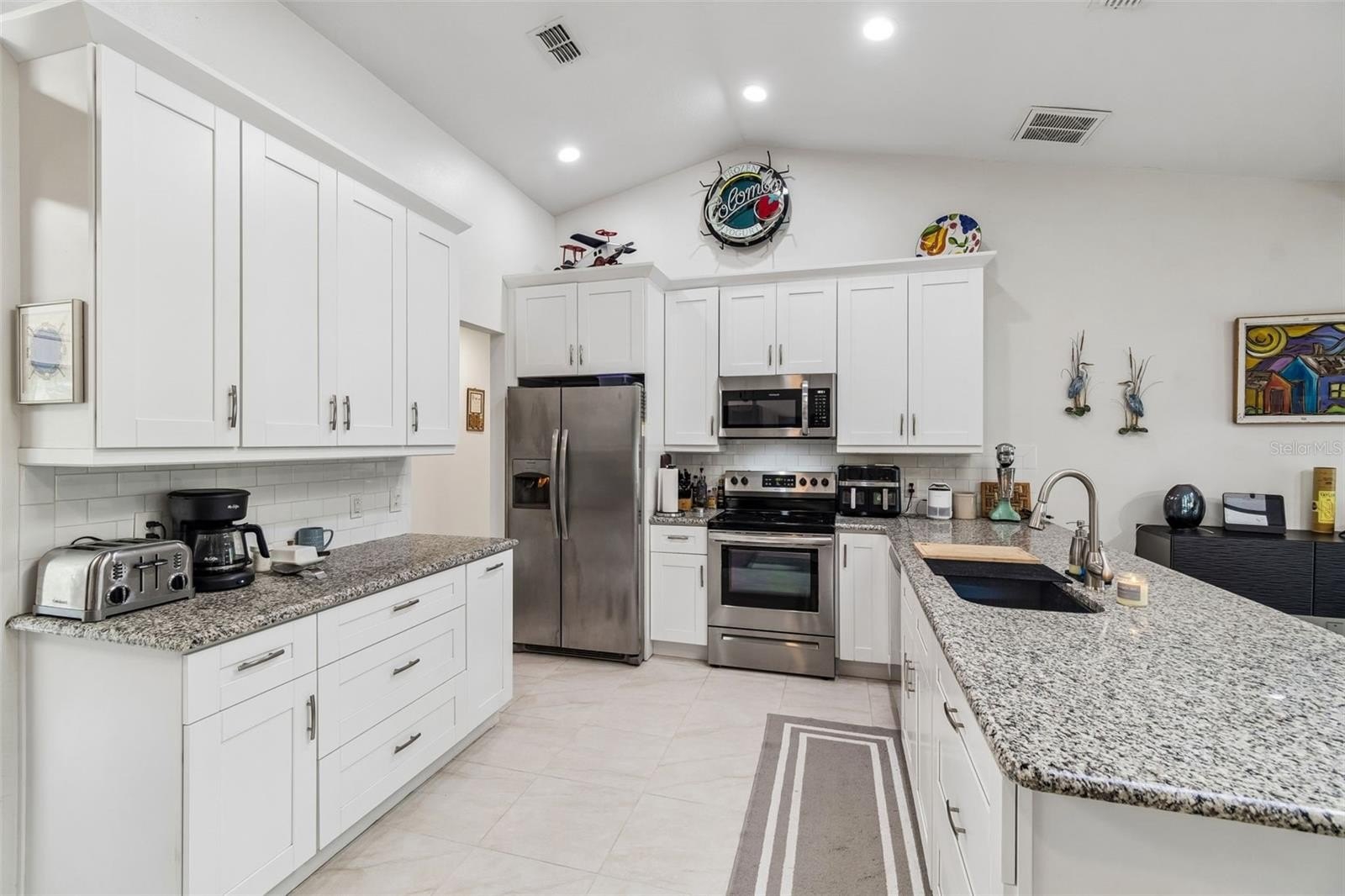 Step outside to discover the private outdoor resort, complete with a kitchen and living space. The roof is just a few years old, and the air conditioner was replaced in 2026, ensuring a comfortable living environment. The oversized two-car garage provides ample space for all your vehicles and toys. Additionally, the newer vinyl privacy fence adds an extra layer of security and privacy to the property.