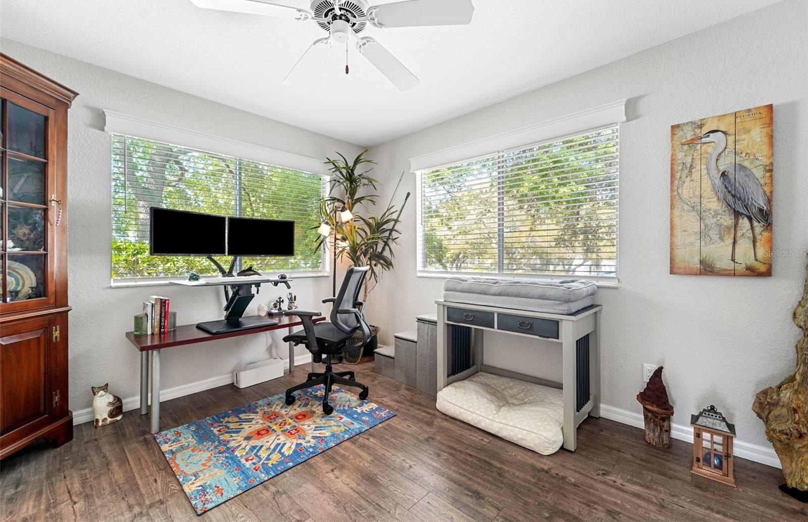 This furnished home is a win across the board. It is a coveted corner unit located in a quiet