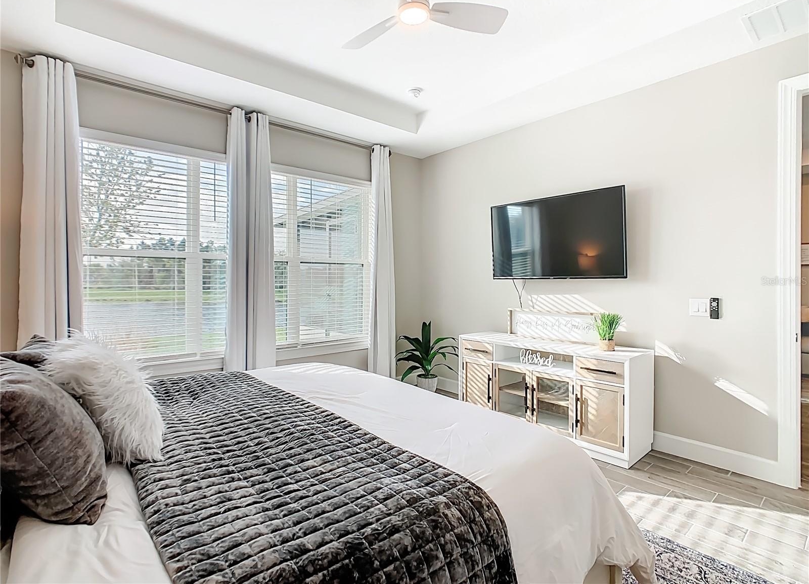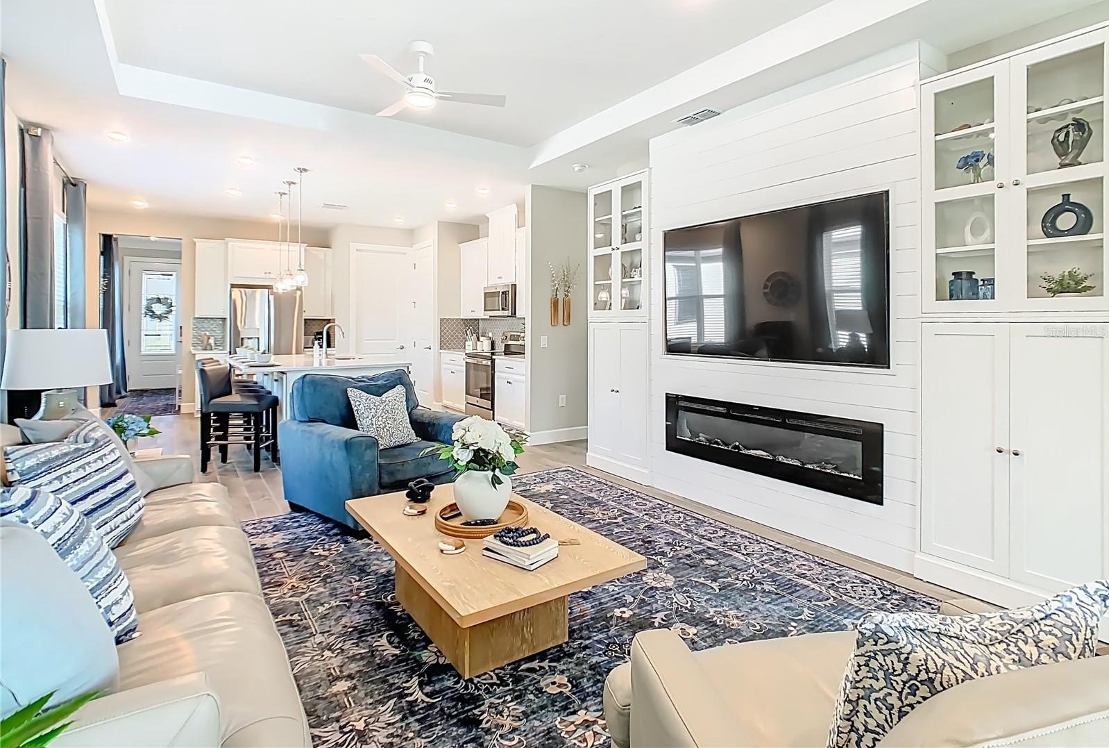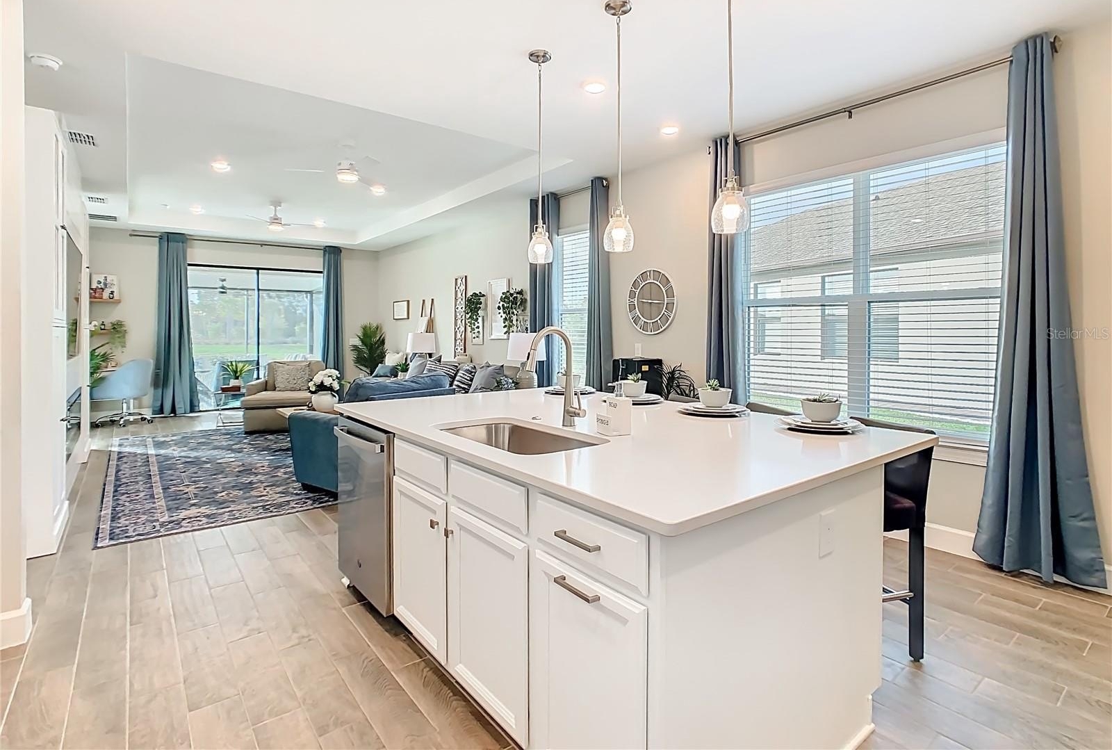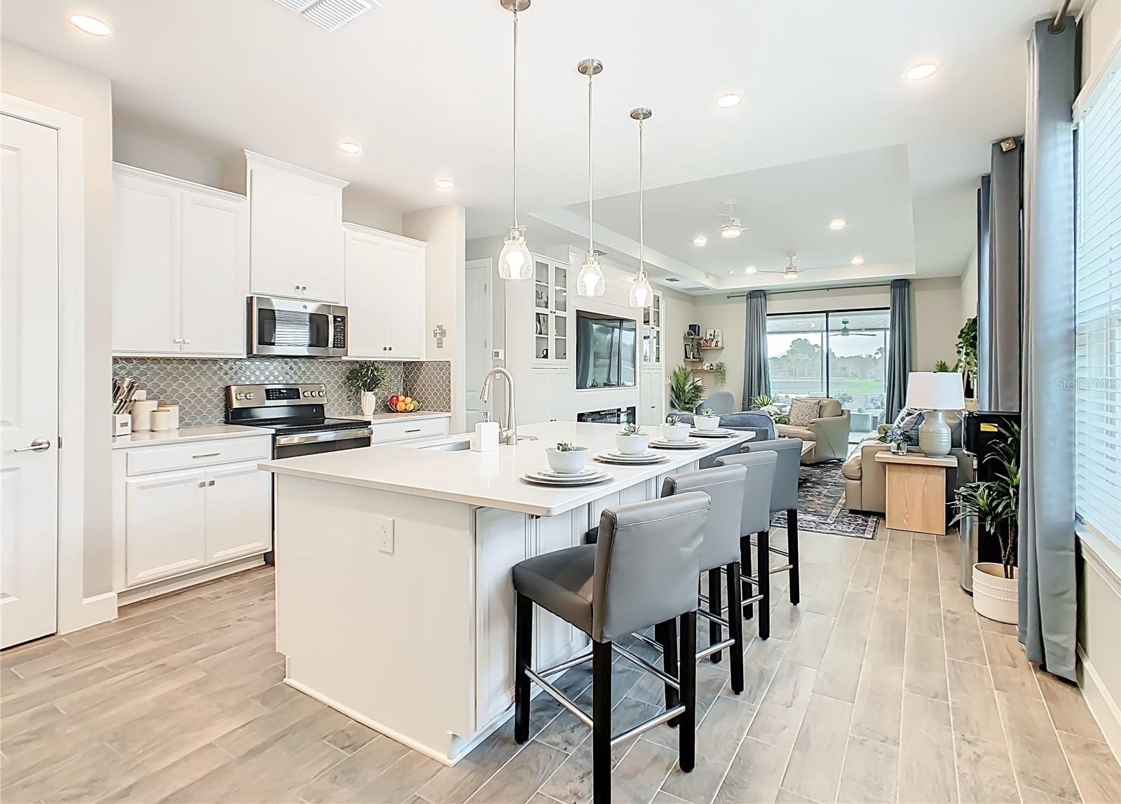 Welcome to this WELL MAINTAINED Salina Model located in the Varese subdivision of Solivita. ** See the FULL LENGTH VIDEO on Tour Link 1 ** This home was built in 2023 but SHOWS like a NEW home. Check out the amazing WATERVIEW. Two bedrooms, two bathrooms, 1,363 square feet, and MOVE-IN ready. Enter through the screened-in FRONT PORCH, and beautiful GLASS FRONT Door. Step into the OPEN CONCEPT design highlighted with eight foot doors, ceiling fans, CERAMIC TILE throughout ( NO CARPET), mini-blinds, CURTAINS, and a two car garage. The modern KITCHEN features Stainless Steel Appliances, QUARTZ Counters, a large ISLAND with room for bar stools, soft closed drawers, and a closed PANTRY. The adjacent GREAT ROOM enhances a TRAY CEILING, a built-in ENTERTAINMENT CENTER, and two sliders leading into the lanai. The PRIMARY BEDROOM is your private and quiet retreat and includes a WALK-IN Closet, Tray Ceiling, that awesome VIEW, and dual sinks in the PRIMARY BATHROOM. The split bedroom floor plan ensures privacy for guests with a generously sized SECOND BEDROOM and FULL BATHROOM. Separate LAUNDRY ROOM boasts a washer and dryer included in the sale. Enjoy Florida living from the screened and HARD ROOF covered LANAI. This Lanai is framed for WINDOWS. ***Solivita is an active adult 55+ community located in Kissimmee, Florida. It is approximately 50 minutes from Disney World & the Orlando International Airport. Solivita has a total of 5,470 homes. Enjoy your active years in this piece of paradise. Solivita's amenities include: - a manicured SOFTBALL diamond & field - 36 holes of CHAMPIONSHIP GOLF that can be played by joining the Stonegate Golf Club or paying as you go - 2 STATE of the Art AMENITY centers with updated exercise equipment, yoga studio & meeting rooms - 3 restaurants - 14 HEATED POOLS - 17 PICKLEBALL courts - 9 TENNIS courts - 4 BOCCE BALL courts - 4 SHUFFLEBOARD courts - 3 HORSESHOE pits - a BILLIARDS room - miles of bike paths - 2 DOG PARKS (Small & Large Dogs) - Corn Hole - Tot Lot PLAYGROUND - COMMUNITY GARDEN - over 250 resident clubs. The HOA: - maintains the LANDSCAPING & IRRIGATION systems in the common areas as well as at individual homesites - maintains the roads throughout the community - PROVIDES SECURITY with gate guards and mobile patrols including the Polk County Sheriff - allows AUTOMATED GATE ACCESS for residents via license plate readers - provides residents with Fiber Optic Internet & TV service.***Poinciana Lakes Plaza is a MAJOR NEW SHOPPING CENTER directly across from the Solivita Main Gate. It features Sprouts Grocery, TJ MAXX, Ross, Burlington, Rack Room Shoes, 5 Below, Ulta, Outback, First Watch, 5 Guys, Panda Express, Bojangles, Jersey Mike's Subs, 5 Guys, Papa John's Pizza, Burrito Bar, Cold Stone Creamery, Urgent Care, Dentist, Hand & Stone Massage, America's Best Eyeglasses, Crunch Fitness, Hair Cuttery, Petco, TD Bank, Verizon Mobile, PLUS MORE TO COME.***