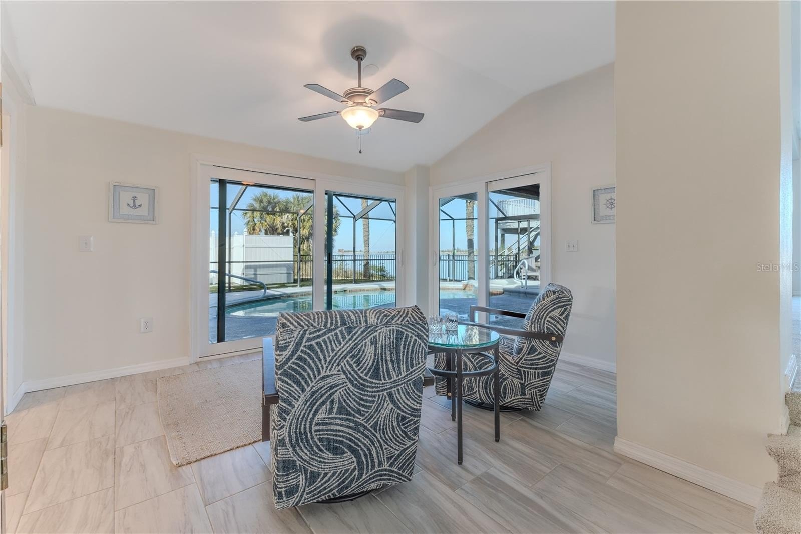 Outdoor living truly shines here - pelicans and seabirds glide by, palm trees sway poolside, and the water sparkles. Enjoy a screen-enclosed salt water pool with jetted spa, a covered lanai with ceiling fans—perfect for sunset watching—and spacious decking for entertaining. Above the boat lift, a 20' x 20' sun deck provides panoramic sunrise and sunset views up the canal, down the canal, and out toward the Gulf. Located on a deep and wide canal where dolphins play, an outdoor shower, a floating jet-ski dock, concrete seawall with knee wall, and riprap complete the waterfront features. HVAC 2017. Roof 2013. Impact Windows 2025. No HOA. Furnishings available separately. Close to public boat ramp, marina, popular local restaurants, shopping, and healthcare. Whether you're seeking a primary residence, vacation home, or investment, this waterfront gem offers it all - location, lifestyle, and value.