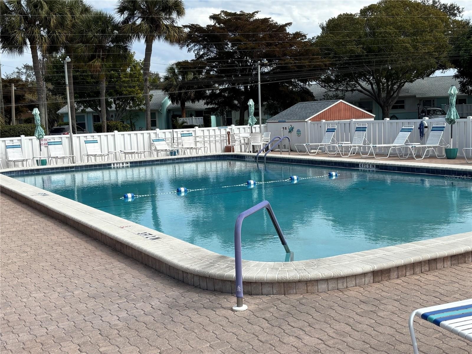 Located in Cortez Villas. This beautifully maintained 55+ villa style community offers a heated swimming pool for year round enjoyment. 2 designated parking spaces are conveniently located in front of condo. This furnished 2/1 end unit boasts extra windows for added natural light. The master bedroom has a walk-in closet with extra shelving. Front room offers a built-in unit to be used as a dining room/office/library. The Kitchen has newer stainless steel appliances. Bathroom has updated tub and shower. A walk-in pantry is located in the kitchen offering extra storage, a newer hot water heater(2025) and HVAC (2021).The Florida Room windows allow year round enjoyment. A pull down attic ladder in the Florida Room provides additional storage. Cortez Villas HOA fees include water, cable, grounds maintenance, trash, and sewer. Prime location close to shopping, restaurants, and the beautiful Gulf beaches.