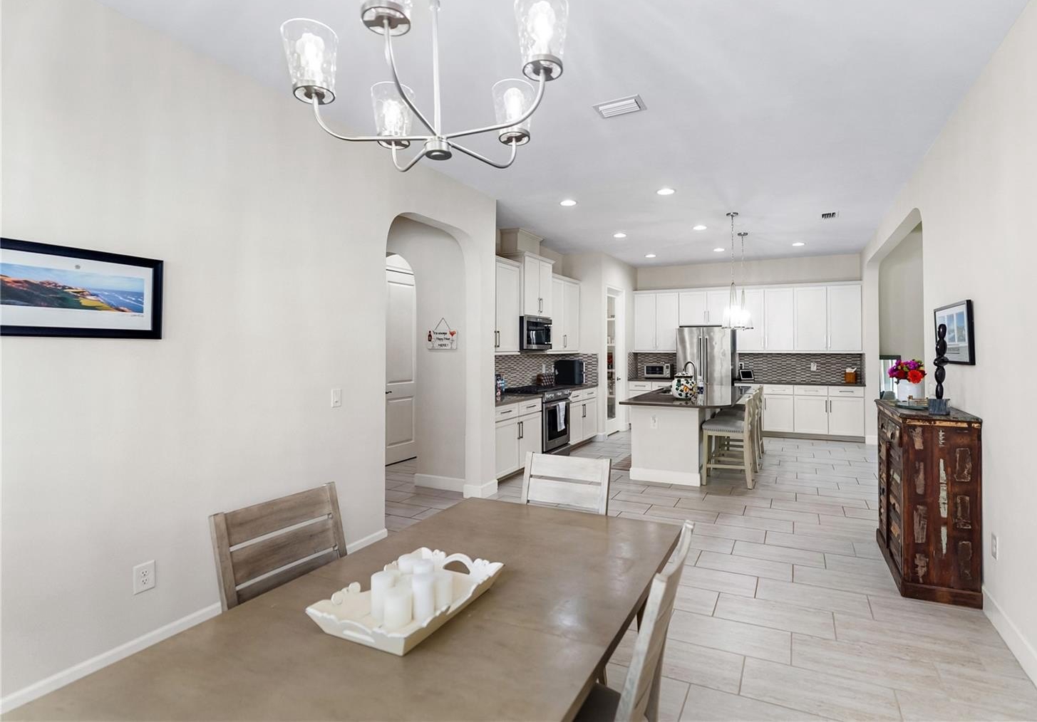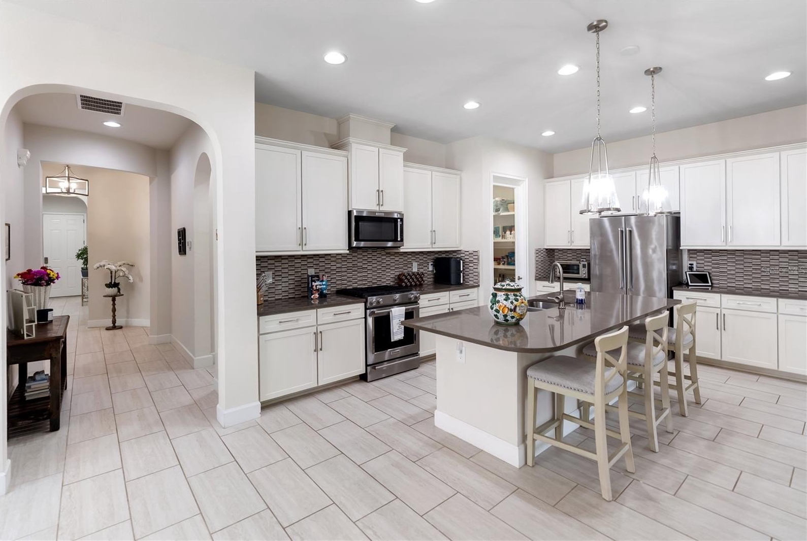 Experience the ultimate Florida lifestyle in this stunning residence located in the highly desirable Arbor Grande community of Lakewood Ranch! This spacious three-bedroom, three-bathroom home spans over 3,300 square feet, offering a perfect blend of elegance and comfort. As you step inside, you are greeted by soaring ceilings that enhance the open and airy feel of the home. The expansive floor plan seamlessly connects the living, dining, and kitchen areas, making it ideal for both daily living and entertaining.