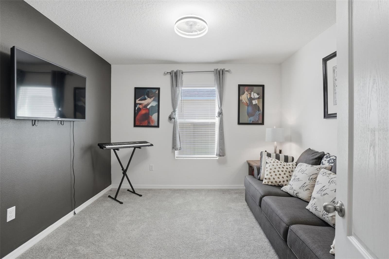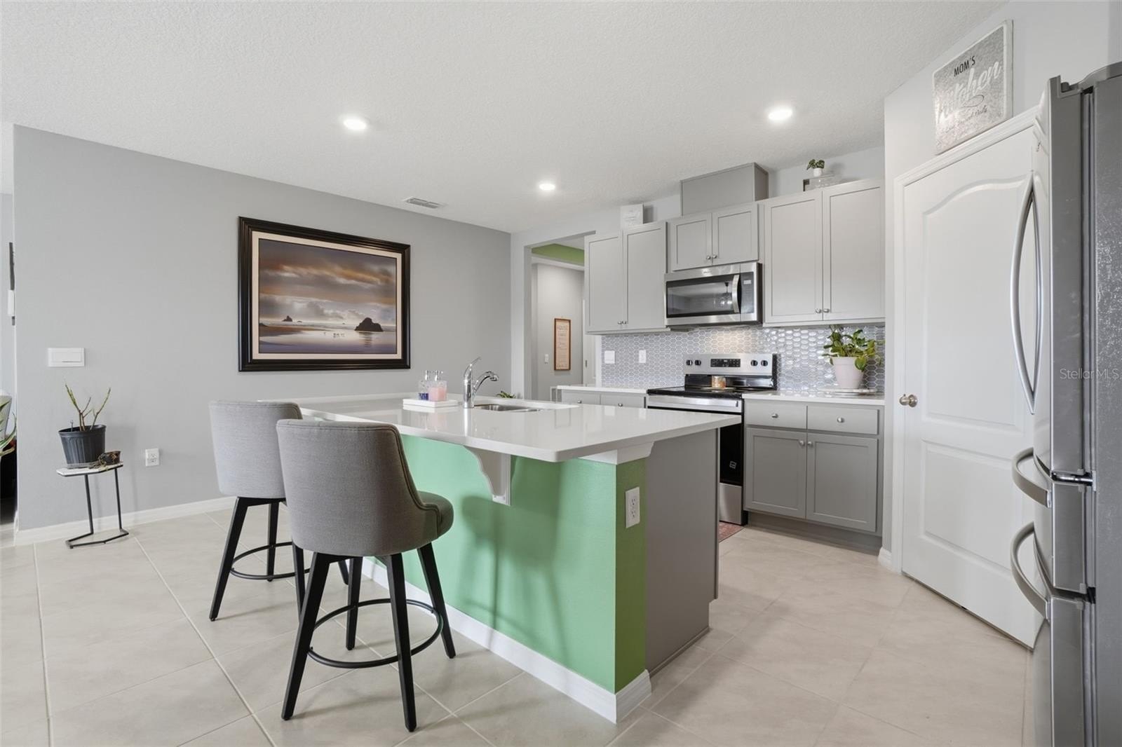 The private primary suite includes a walk-in closet and ensuite bath with dual sinks and a walk-in shower. Three additional bedrooms provide flexibility for guests, family, or a home office. Additional highlights include tile flooring in main living areas, a dedicated laundry room, smart home features, and a two-car garage.
