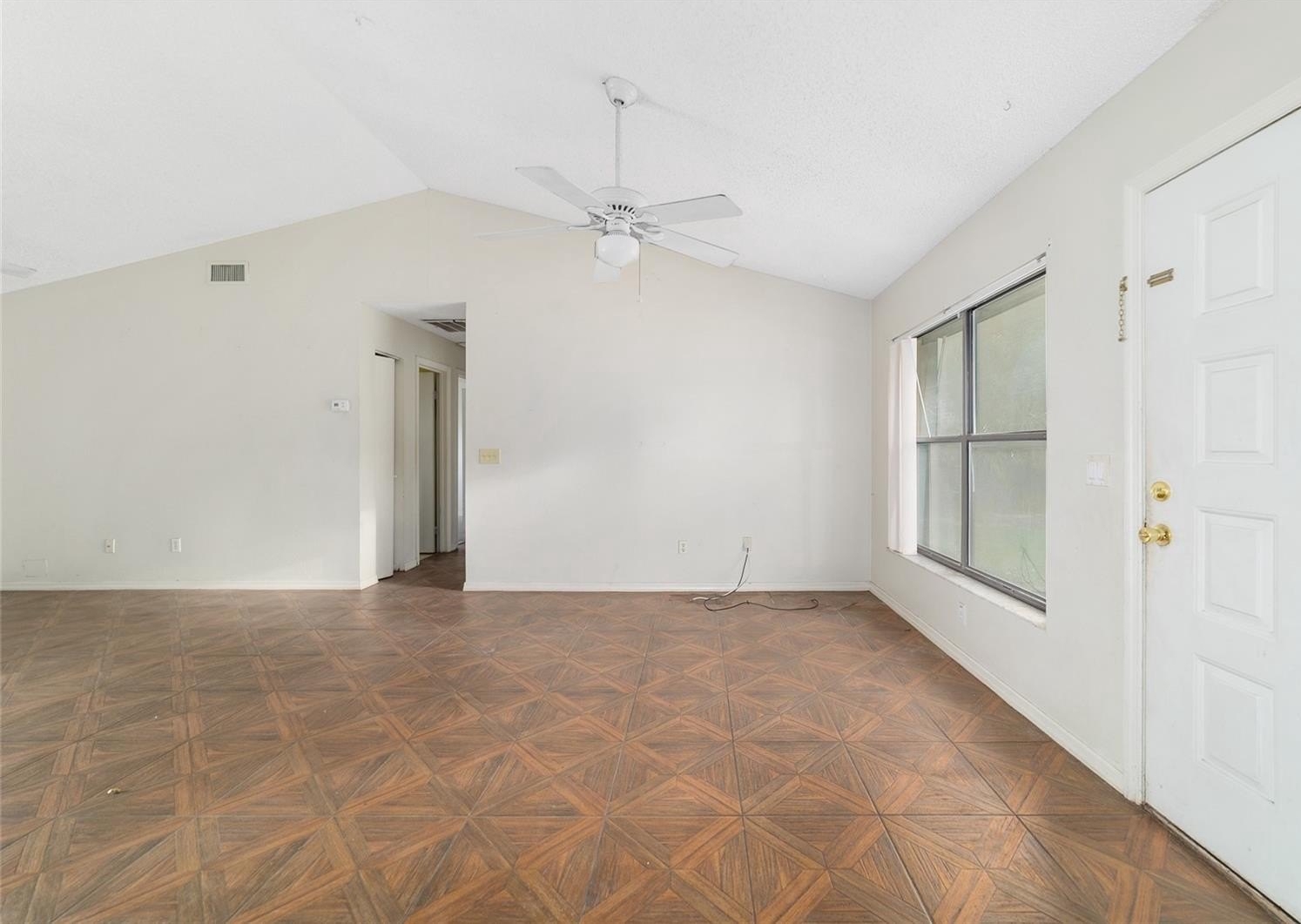 This spacious 1,567 living sq. ft. 3 Bedroom/2 Bath home sits on a peaceful cul-de-sac and features a brand-new roof, offering long-term value and peace of mind. Set on a generous .30-acre lot, the property provides plenty of room to spread out, garden, entertain, or simply enjoy the extra outdoor space. While the home could benefit from some cosmetic updates, it offers a fantastic foundation with a desirable split floor plan, vaulted ceilings, a large living room, a flexible dining/den area, and a convenient pass-through to the galley-style kitchen. Both the living room and the primary bedroom open to a patio overlooking the expansive backyard, offering an ideal setting for weekend barbecues, play areas, or quiet evenings outdoors. The two-car garage adds everyday convenience and additional storage, making room for vehicles, hobbies, or seasonal items. Located on a dead-end street with no neighbors on one side, the home enjoys an added sense of privacy while still being just minutes from a variety of shopping and dining options.