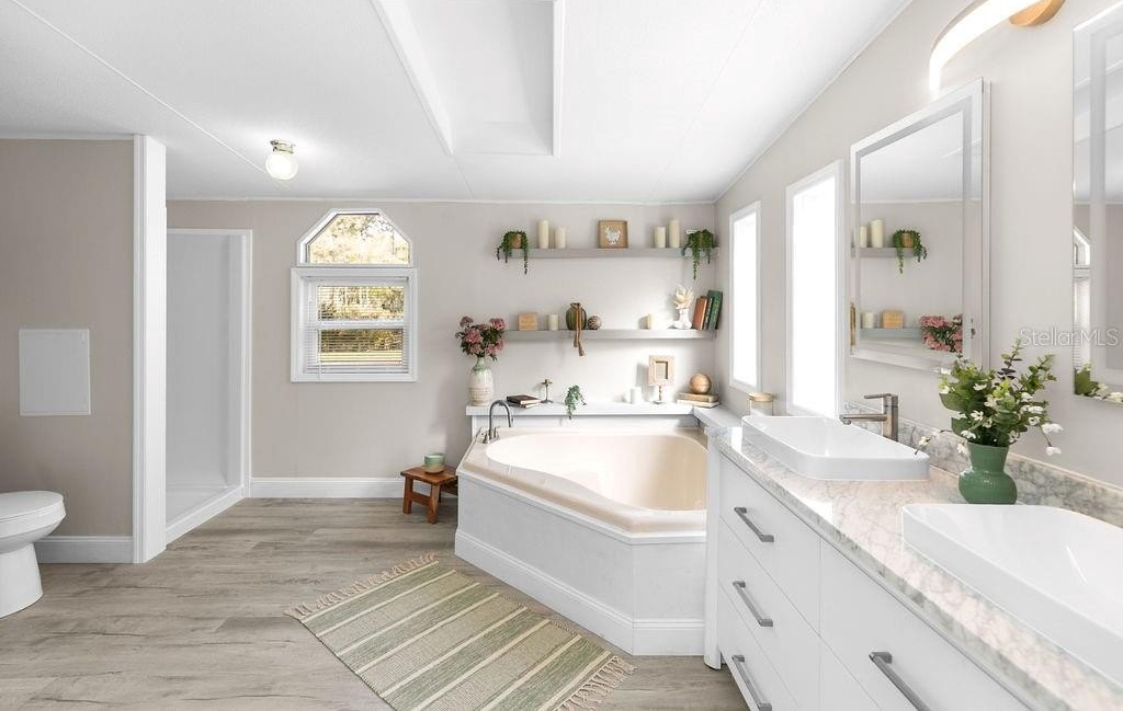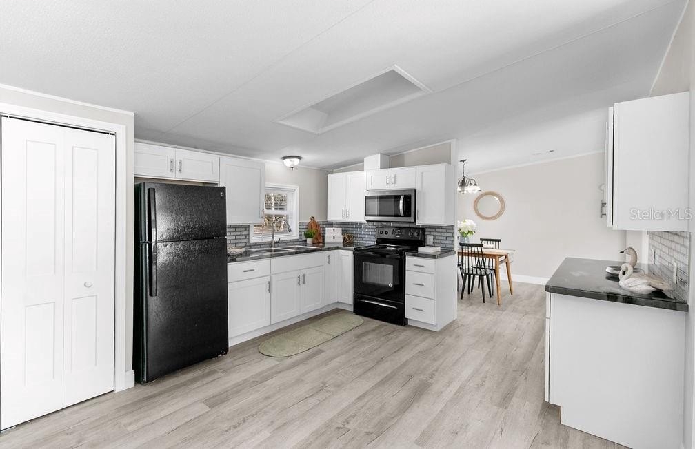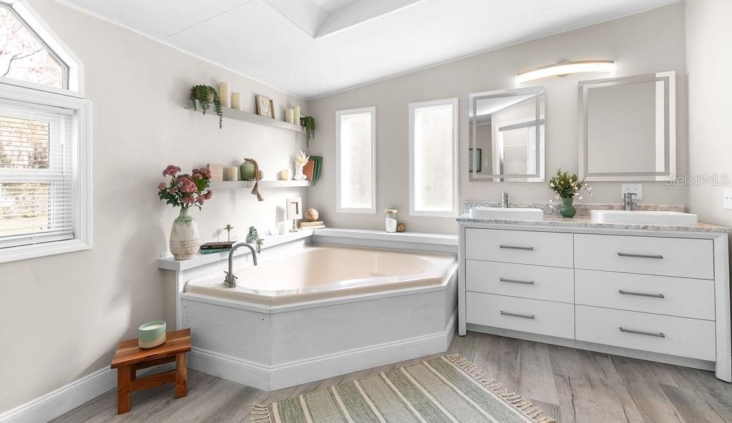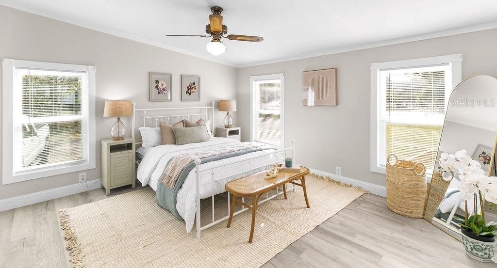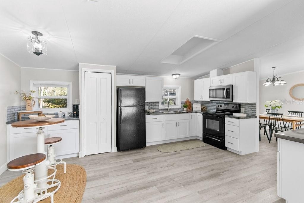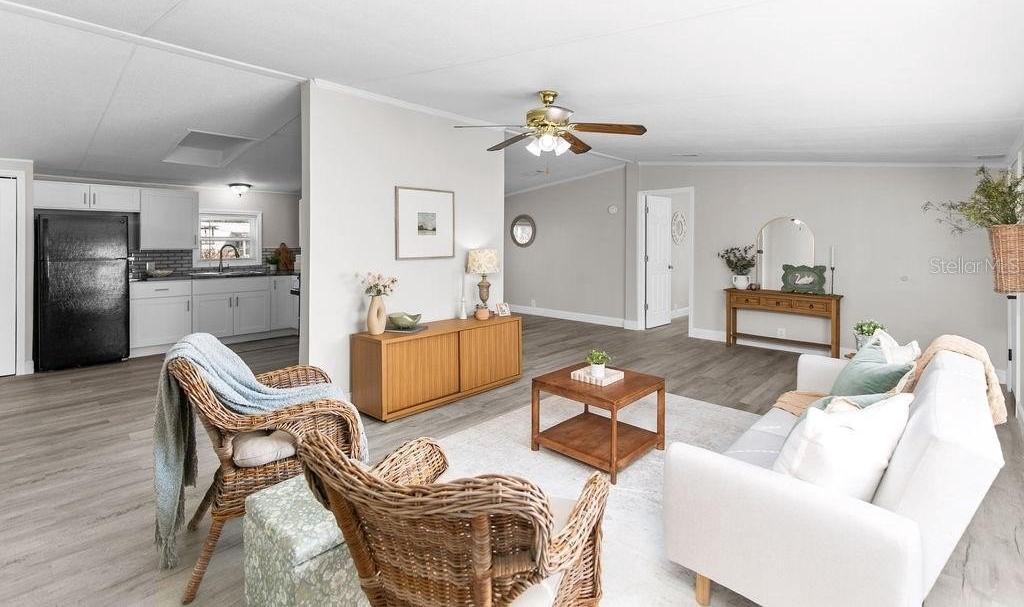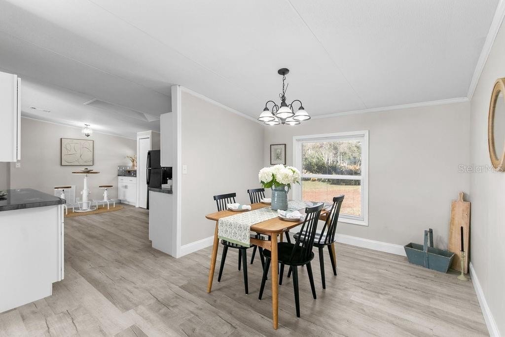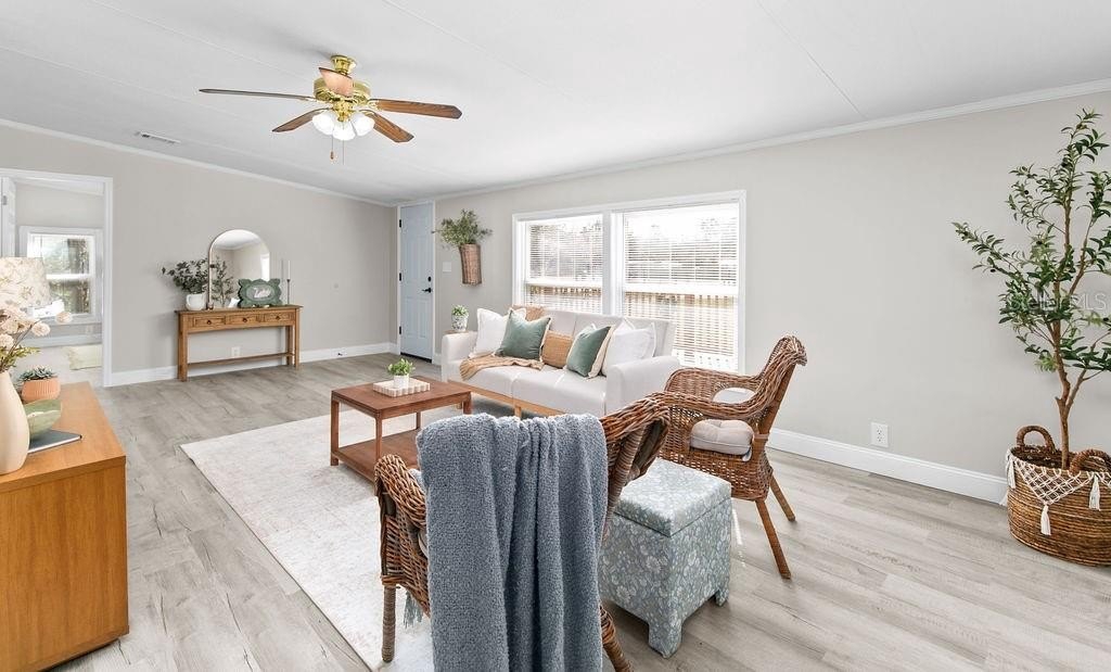 This home is like stepping into a BRAND-NEW country home on a sprawling .73-acre parcel with room for all your tools, toys & dreams! A perfectly planned 4 bed/2 bath split layout offers comfort & flow with an eat-in kitchen & coffee bar, defined dining room & a living room that opens to a wide wood front deck — perfect for morning coffee or stars-out evenings. Completely reimagined with 2018 AC, 2023 roof, tankless water heater, 200 amp upgraded panels inside & out, LVP flooring, double impact windows/doors, new shaker cabinets, poured epoxy counters with mirrored backsplash & fresh trim/baseboards throughout. Retreat to the primary with a soaker tub + walk-in shower dual vanity; guests enjoy a second bath tiled to the ceiling. New insulation, sub-flooring & repiped with CPVC under the home give peace of mind. Enjoy peaceful country living yet just minutes to I-95 access and about 15 miles to University of Central Florida — close to shopping, restaurants & everyday needs.