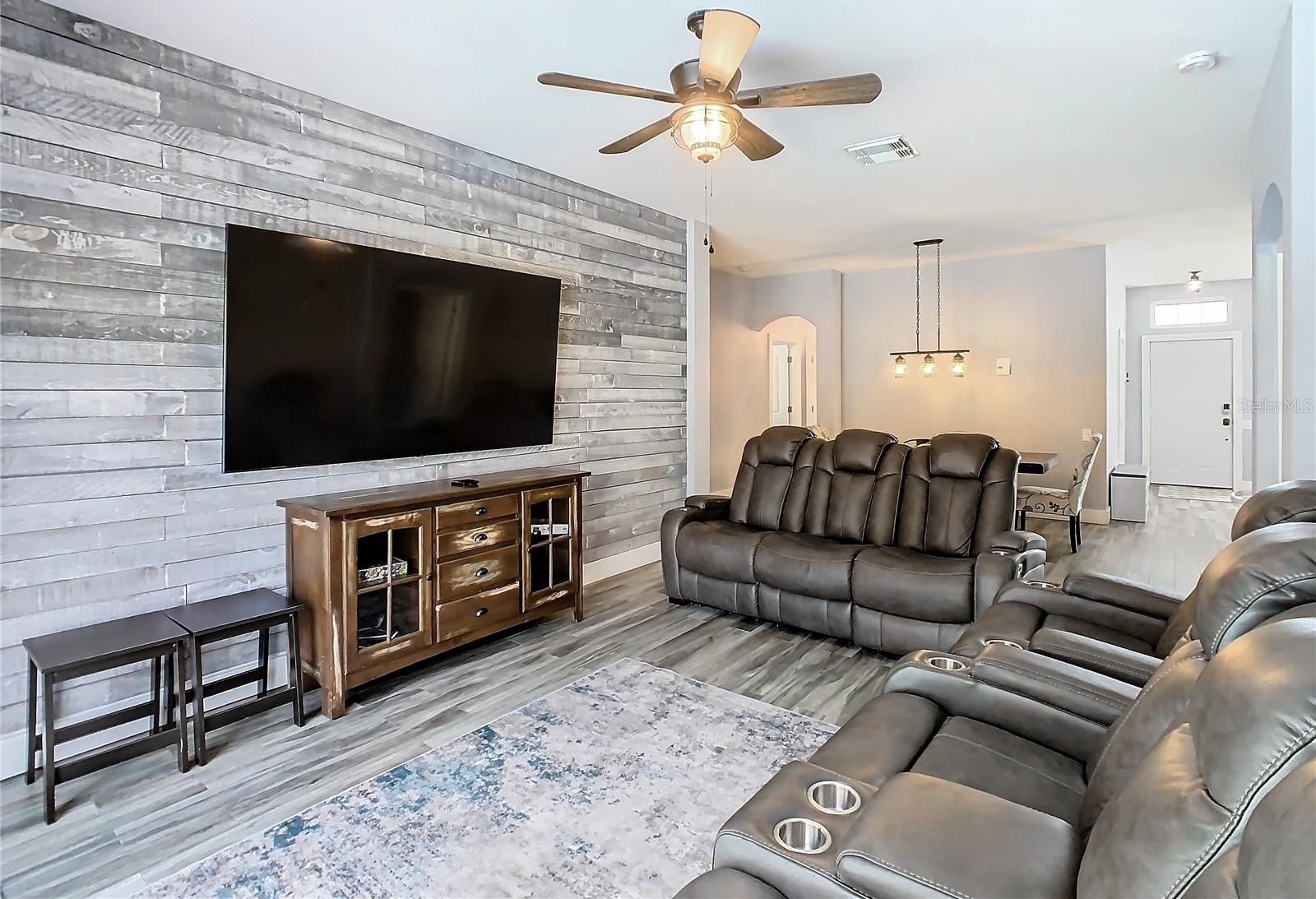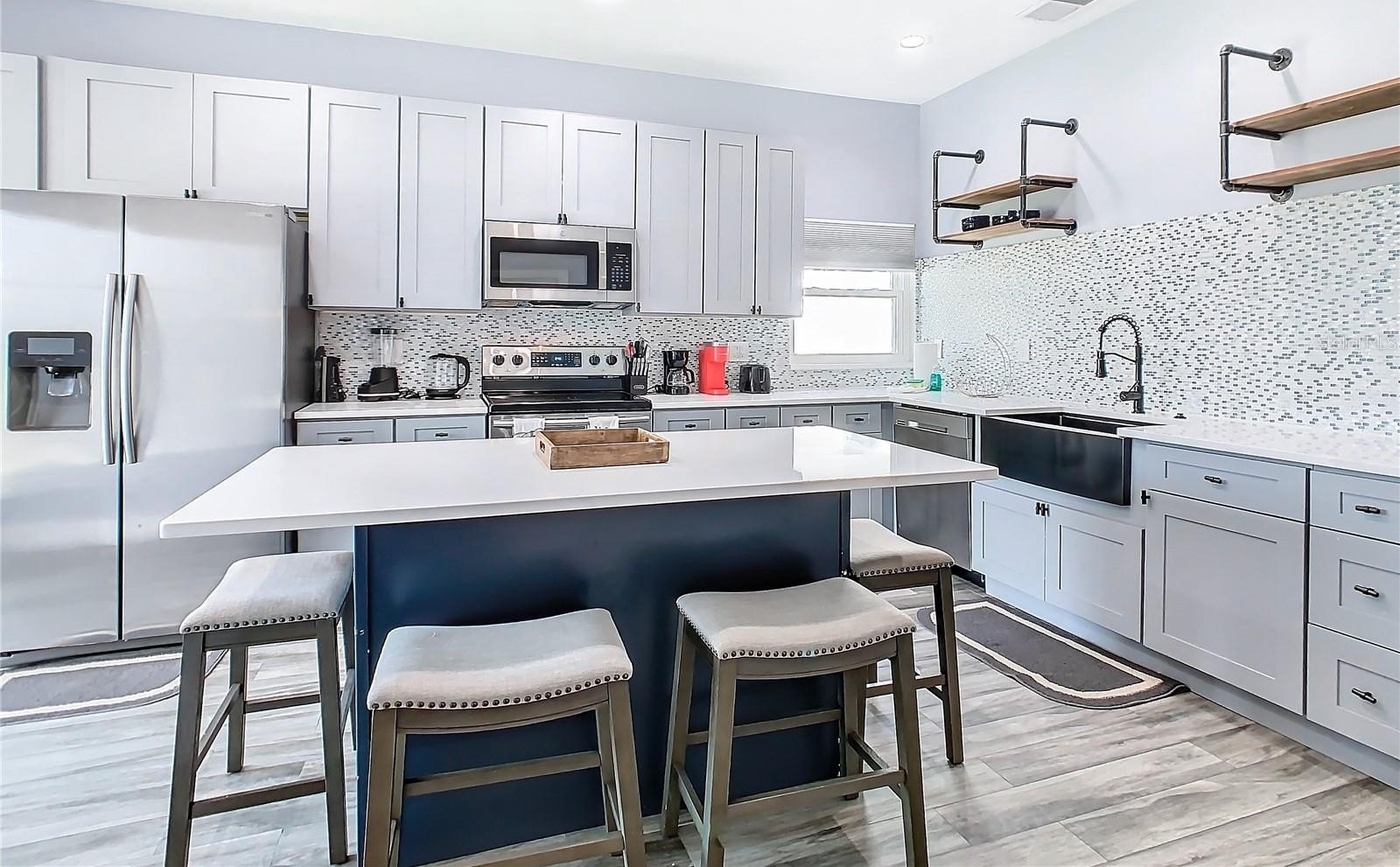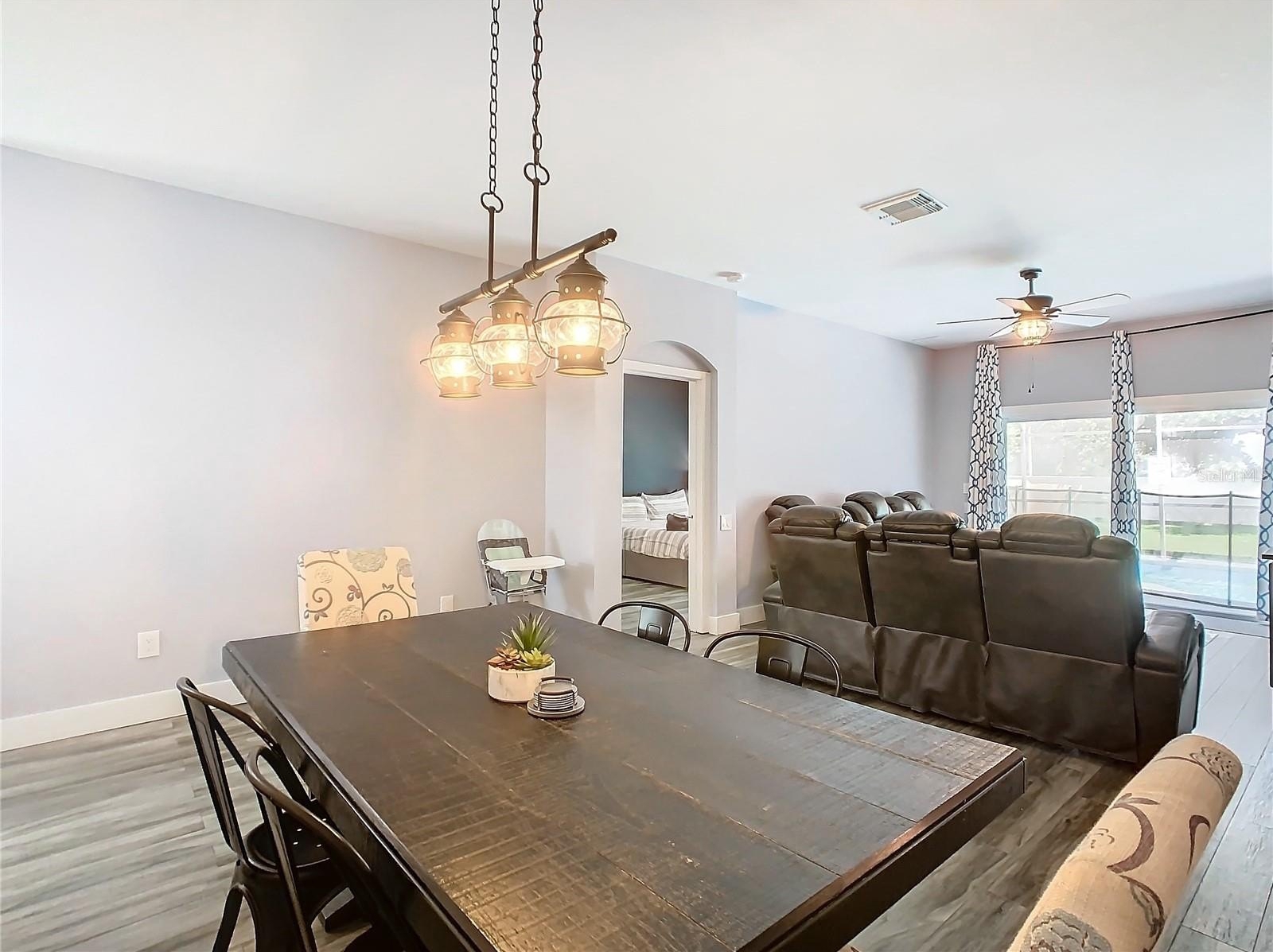 Welcome to the Guard gated Windsor Palms Resort style Community to escape to paradise. This FULLY REMODELED home with neutral color, TOTALLY FURNISHED with 4 Bedrooms, 2 baths, 2 car garage, sparkling pool, beautiful Oceanic Oak Long-board ceramic tile throughout the floor, is a beautiful and serene place to live with your family and/or to make an investment, such as Short-Term Vacation Rentals. The property is situated in an area known for its excellent schools in a perfect environment. Located just few minutes away from Walt Disney World and prime shopping destinations, and few miles away from all other Orlando's top major attractions, this home offers an ideal retreat for personal convenience, relaxation, and entertainment. No rear neighbors. This house has been fully upgraded with the following: Re-imagined and re-designed kitchen with brand new cabinets, center island and Quartz counter-top, remodeled bathrooms with new deep soaking tub in the master and converted walk-in shower in the guest bathroom, new energy efficient, double pane, double hung windows throughout the entire home installed in 2018, new doors on all bedrooms and bathrooms, new AC units installed in 2021, new hot water heater (2018), roof replaced in 2017, pool resurfaced and upgraded tile and color change LED light in 2020, new pool heater, pump, motor, and filter housing in 2022. The kitchen is equipped with stainless steel appliances. The Dining space is an open concept with the living room for family gathering. The split floor-plan allows everyone to have their own privacy, peace, and comfort. The Windsor Palm community Resort clubhouse hosts many amenities including: arcade, gorgeous large pool, splash pad, water slide, tennis court, volley ball, basketball, fitness center, Movie Theater, Tiki Bar, Gift shop and so much more! Not only that but the HOA takes care of your irrigation system, daily trash removal, landscaping, basic cable and internet service. Take advantage of the vibrant Windsor Palm Community, close to a variety of businesses, restaurants, shopping options, and numerous specialty events throughout the year. Don't miss this opportunity to own a beautifully maintained house. Schedule a showing today!