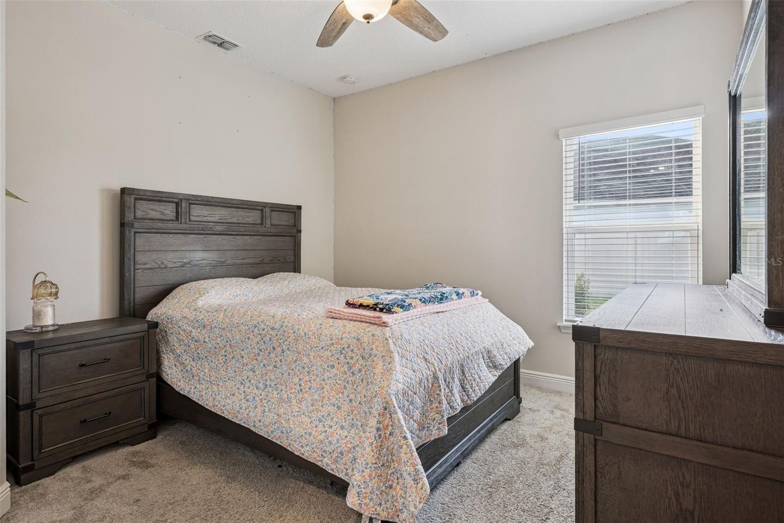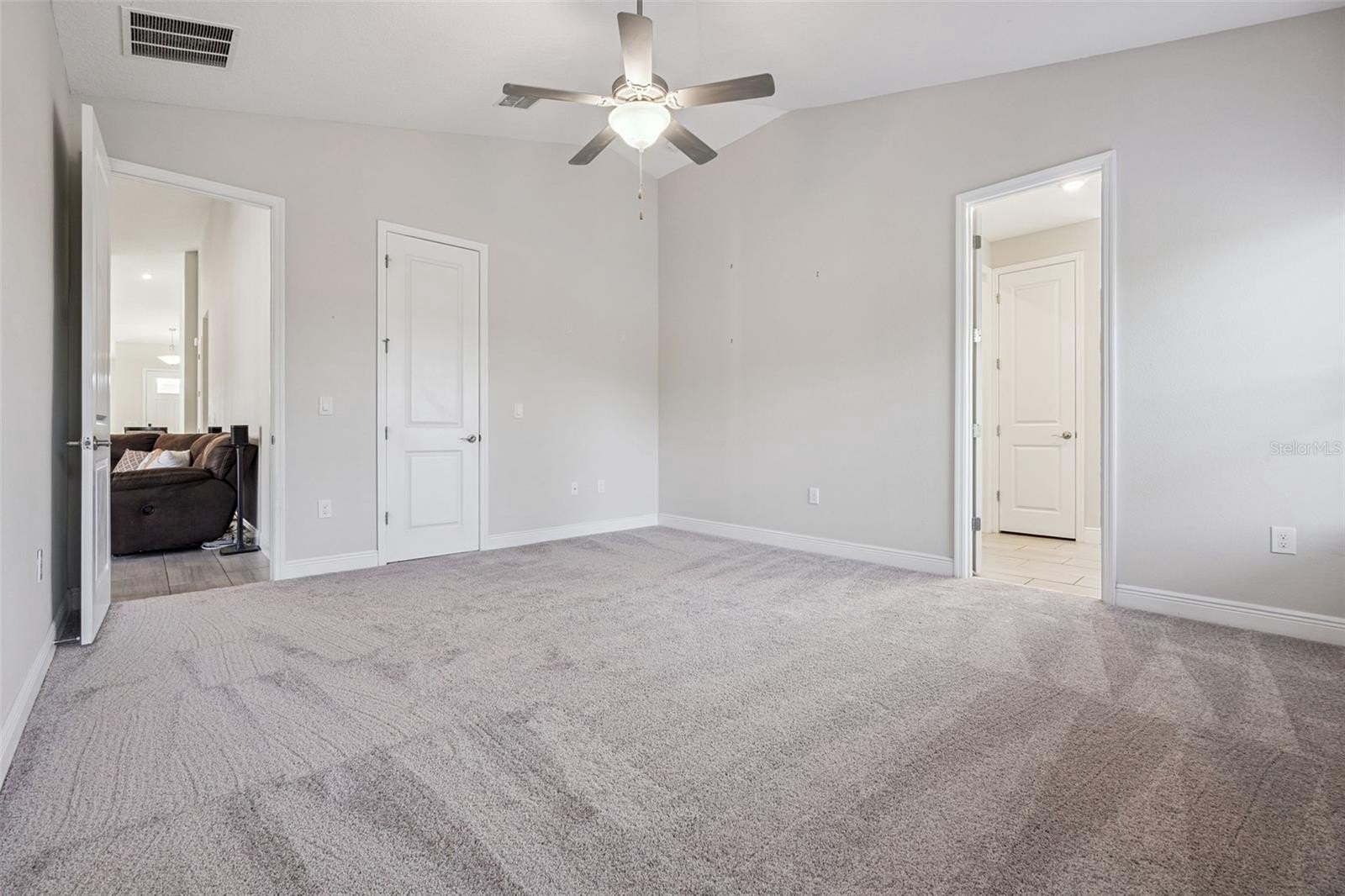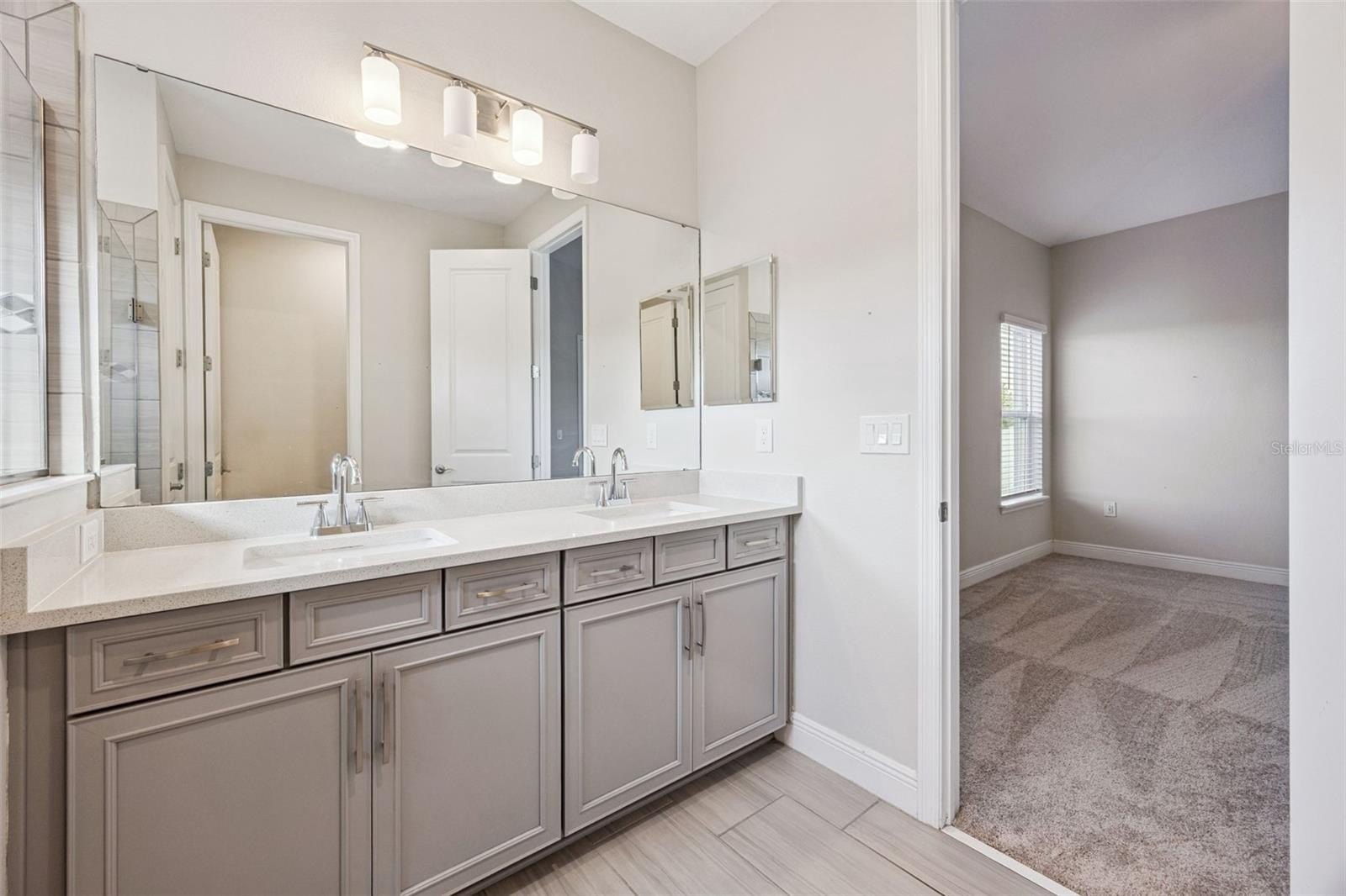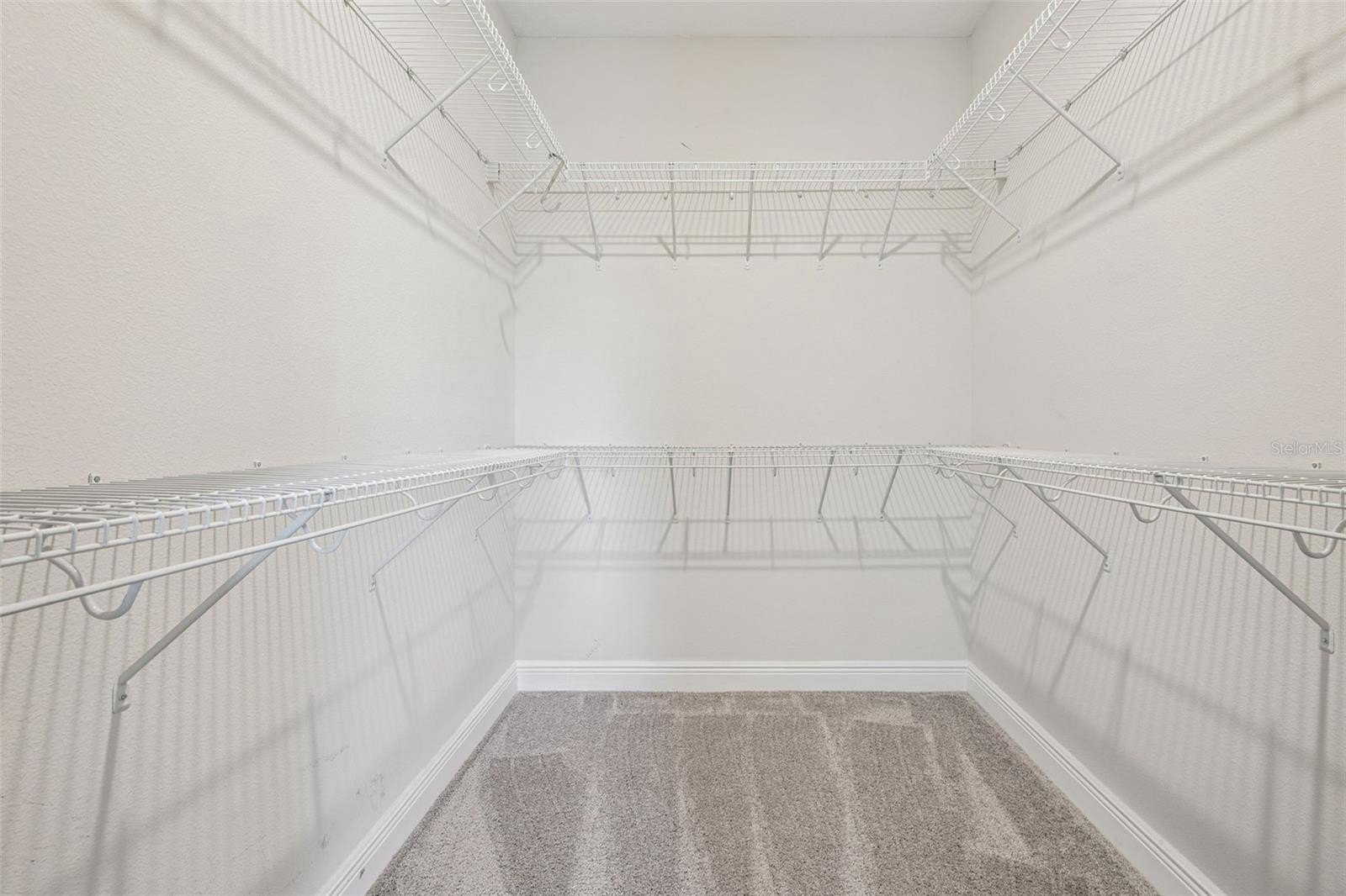 The primary suite provides a relaxing retreat with a large walk-in closet and dual sinks in the bathroom.