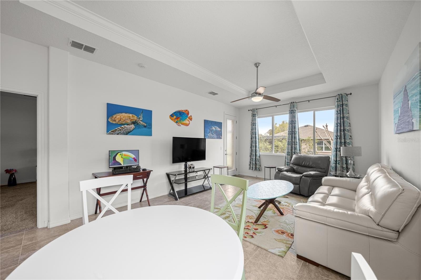 Located in On Top of the World’s Indigo East community, this furnished Elon model sits on a desirable privacy lot and offers 2 bedrooms, 2 baths, with tile flooring throughout. The kitchen features granite countertops, a gas range, and a cozy bistro area, while the light and bright open floorplan flows to a screened-in lanai—perfect for relaxing or entertaining. This move-in ready home comes fully furnished and showcases thoughtful upgrades, including tray ceilings that elevate the living space. Residents enjoy access to outstanding amenities, including two swimming pools, walking trails, a dog park, and a fitness room. Golf cart access makes it easy to visit Circle Square Commons and nearby shopping, with medical facilities just a short drive away. Embrace a vibrant active-adult lifestyle in this well-located retreat.