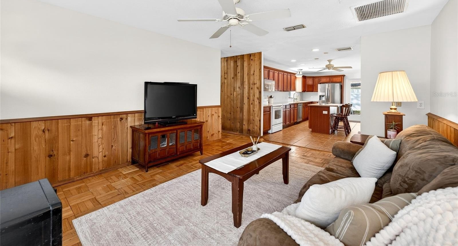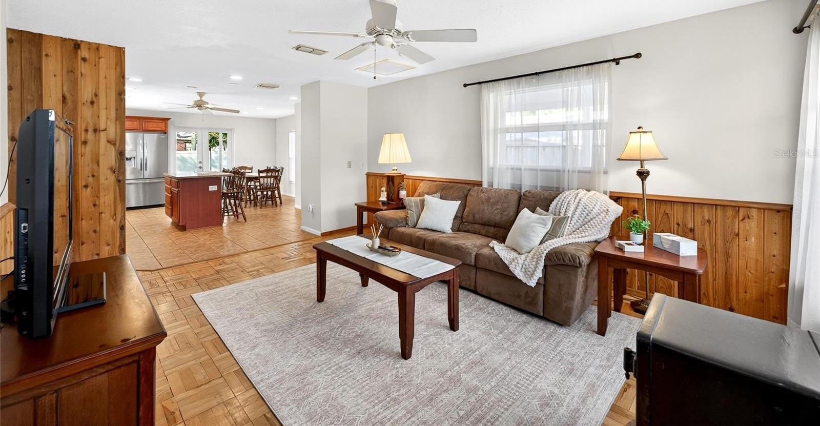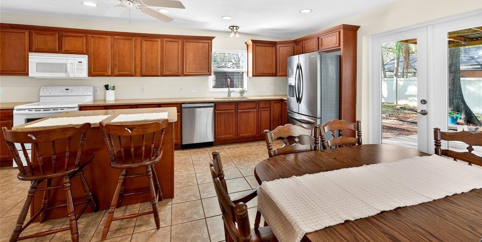 Inside, the home features a bright and functional floor plan designed for comfortable everyday living. The spacious kitchen is the heart of the home, offering abundant cabinetry, generous counter space, stainless steel appliances, and a center island with seating, making it perfect for meal prep, casual dining, or entertaining guests. The kitchen flows seamlessly into the dining area and living space, creating a warm and inviting atmosphere filled with natural light.