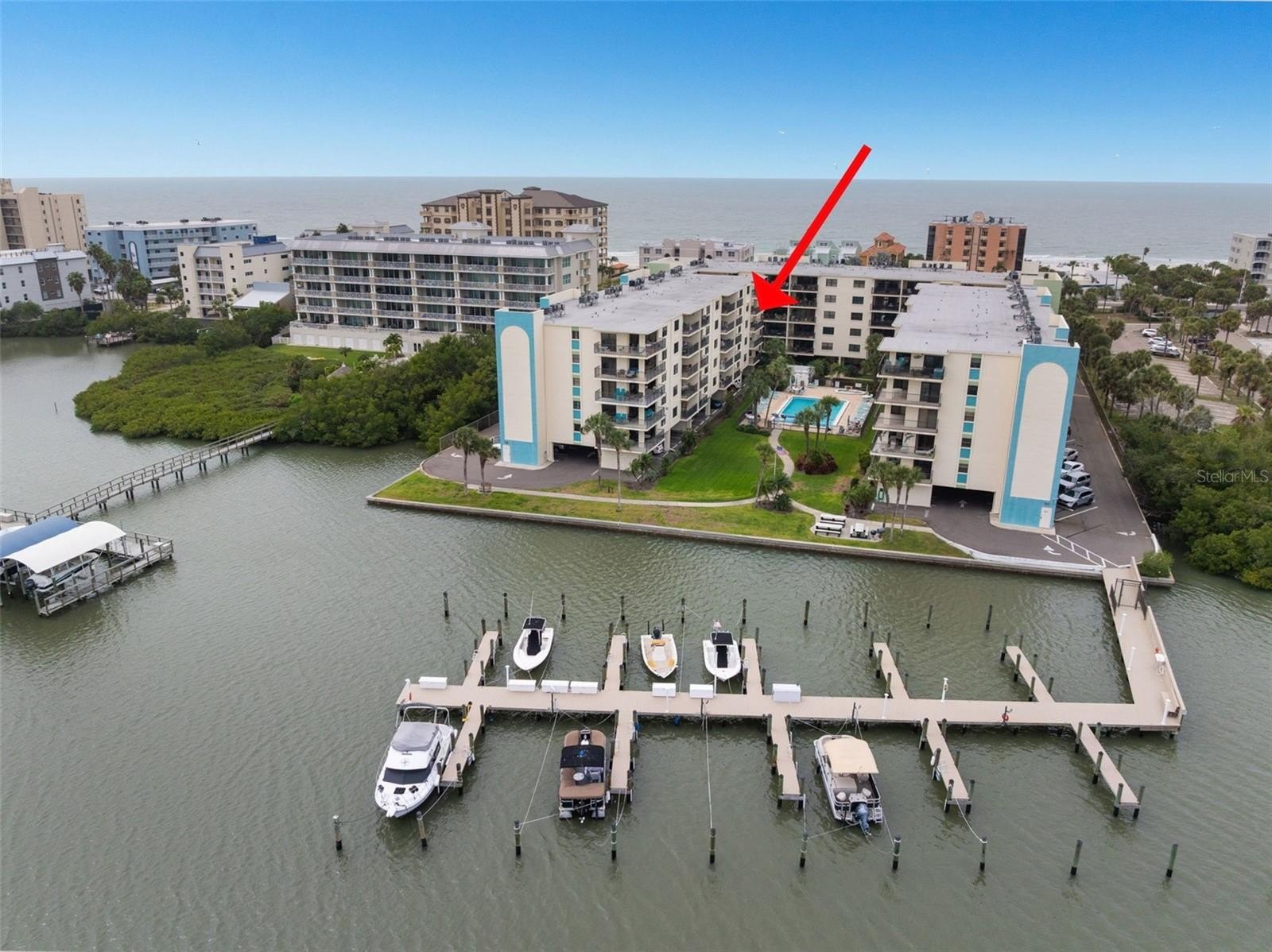 Very well kept Intracoastal Waterfront Condo as an END UNIT offering 2 Bedrooms, 2 Bathrooms, in beautiful and desireable Golden Shores Condo Community, immediately across from Indian Shores Beach. Ready for your immediate occupancy! If you are looking for a 2nd home perhaps also to rent out, you can rent this unit out immediately with a 30 day minimum timeline. Pets welcome. All ages welcome! Have a boat ? 20 NEWER & Updated Boat Slips on a first come first serve basis. The unit includes a washer & dryer for your convenience. You will love the wood-look ceramic tile throughout the unit! MAJOR feature - is the LARGE 10 x 21 covered Lanai with SUPER Intracoastal Waterviews, Pool and Courtyard! LOTS of new: AC 2020, Roof 2023, Dishwasher 2024, Refrigerator 2023, Microwave 2013, Washer & Dryer 2023, Building was painted 2019,