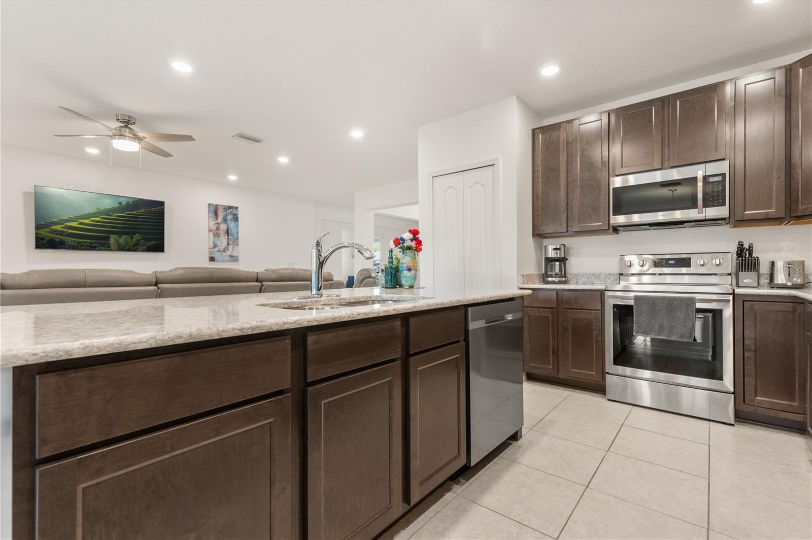 Turnkey pool home in a prime location—just in time for summer. This beautifully maintained 4-bedroom, 3-bath residence offers a highly sought-after open floor plan with abundant natural light, perfect for both everyday living and entertaining. Upon entry, you’re welcomed by a versatile flex space with French doors—ideal for a home office, playroom, or den—while a formal dining area sits just opposite, creating a seamless flow into the main living space. The spacious living room opens to a well-appointed kitchen featuring an eat-in dining area, ample cabinetry, and direct access to the screened-in lanai and private pool—perfect for indoor-outdoor Florida living. The split-bedroom layout provides privacy, with a generous primary suite tucked away on one side of the home, complete with an en-suite bath. On the opposite wing, you’ll find two bedrooms with a shared full bathroom, and one additional bedroom with an ensuite bathroom, as well as a dedicated laundry room. Additional highlights include a 3-car garage with plenty of room for storage, vehicles, or recreational equipment, plus a backyard with green space, perfect for pets or play. Located just minutes from the Suncoast Parkway (SR 589) and Cortez Boulevard, with convenient access to shopping, dining, and everyday amenities, this move-in ready home offers the perfect combination of comfort, functionality, and location.