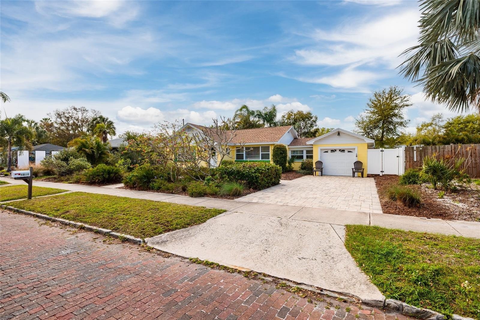 Dreams come true in Gulfport. Cut loose from the hustle of the city. Live near the water in this gorgeous 3 bed, 2 bath solid block home. From the moment you pull into the brick paved driveway you can feel the care that has been placed into regular maintenance here. The lot is landscaped for privacy and comfort. The landscaping features plants complimentary to Florida’s ecosystem. The backyard has a patio deck and luscious palms to shade you on relaxing sunny days. The interior has been freshly painted throughout and other updates include wood grain tile flooring, electric water heater, and electric outlet repositioning. Kitchen cabinets are all Kraftmaid brand, some with slide out trays, corner tier cart in cabinet by the range for accessible storage. The dark gray base cabinets are new 2025, upper cabinets are finished in natural wood. New stainless steel kitchen appliances. Full roof replacement 2025. Hurricane Shutters, storm windows. AC system is central in the main part, plus 2 ductless mini split units in the back part, of the house. Just 4 blocks to Downtown Gulfport, situated between the Gulfport Beach Recreation Area and Clam Bayou Nature Park, under 5 miles to St Pete Beach. Close to the Gulfport Municipal Marina. Adjacent to the Skyway District and South Pasadena. Great location!