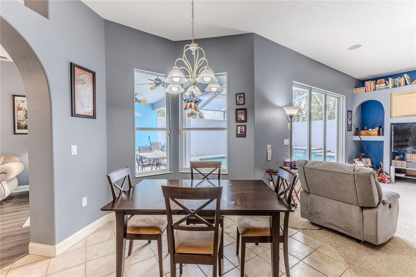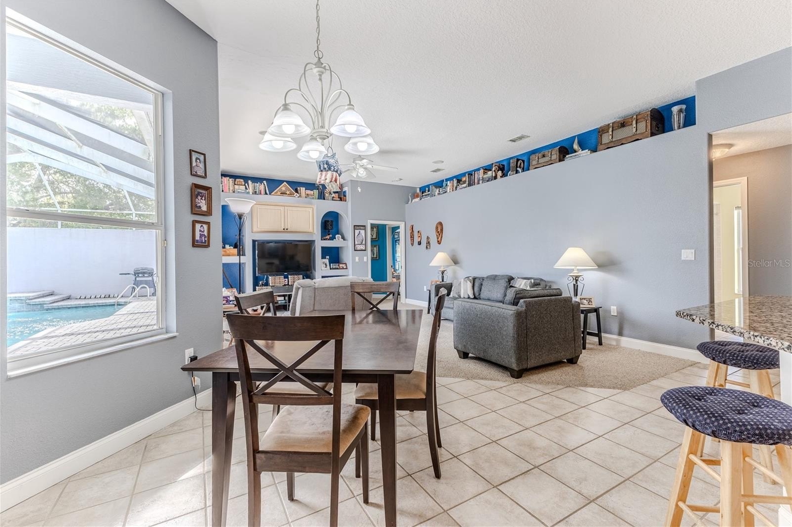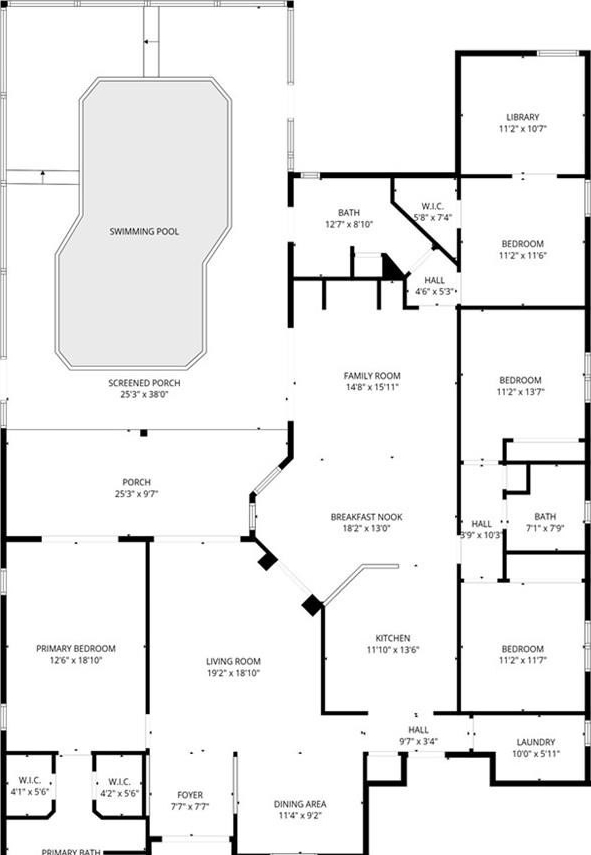 Located on .50 acres, this home boasts 2,585 sq ft of living space featuring 4 bedrooms, 3 bathrooms, a 3 car garage, a swimming pool and a desirable three-way split floor plan. Enter through double doors into the formal living room featuring a tray ceiling, ceiling fan, 10-foot ceilings, and sliding glass doors overlooking the pool area. A formal dining room provides the perfect setting for entertaining. The kitchen opens to the family room and features a tray ceiling with recessed lighting, granite countertops, tile flooring, large sink, pantry, breakfast nook, newer appliances and breakfast bar. The family room has built-ins and also offers sliding glass doors leading to the pool and lanai, creating wonderful indoor-outdoor living. The home is thoughtfully arranged in three separate wings. The primary suite occupies its own private wing and features two walk-in closets, sliding glass doors to the pool, and a spacious en-suite bathroom with a large soaking tub, snail shower, and dual-sink vanity. The second wing includes two generously sized bedrooms and a full bathroom with a tub and shower combination. The third wing offers incredible flexibility with a double room that could serve as a bedroom, office, hobby space, or private living area--ideal for an in-law suite. This wing also includes a bathroom with shower, sink, and linen closet and conveniently opens to the pool area. Additional features include a laundry room with utility sink and built-in cabinets, central vacuum system, built-in speaker system and a three-car garage. Enjoy outdoor living in the screened lanai and sparkling pool, featuring multi-level paver decking, a beautiful waterfall feature, outdoor shower, privacy wall, and two ceiling fans over the lanai. Sinkhole/stabilization permit completed 2015, with documents. HVAC 2015. Roof 2005. There is NO HOA so bring your Boat, Camper, truck. Near the Suncoast Pkwy, public park, shopping and medical care. Make this home your own!