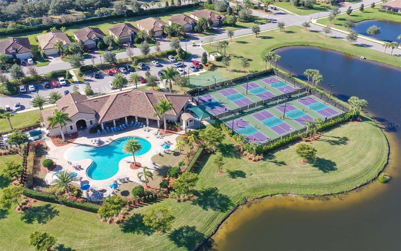 Welcome to 6517 Willowshire Way, a stunning single-family home with a social membership (no expensive golf fees) located in the distinguished River Strand community in Bradenton, Florida. This home offers the ultimate in maintenance free, resort style living, set on a premium lake view lot that showcases the natural beauty of Florida. This beautiful 3-bedroom, 3 bath Venice floorplan offers a PREMIUM LOT and saltwater POOL for your year-round enjoyment. The perfectly maintained home offers a split floor plan perfect for hosting guests. The open floor plan seamlessly connects the kitchen, dining, and living areas making it ideal for both everyday living and entertaining. Views of the outdoor oasis add to the open and breezy feel. The gourmet kitchen is chef's dream, equipped with granite countertops, newer microwave and refrigerator, solid wood cabinetry, stainless steel appliances, and a large island perfect for meal prep and entertaining. Enjoy the refined touch of crown molding throughout the home, adding a touch of elegance. The primary suite offers a peaceful retreat with double walk-in closets allowing for plenty of room for everyone's wardrobe. The luxurious en-suite bathroom features separate shower and soaking tub. Step outside to your private backyard oasis, featuring a screened in lanai featuring an outdoor kitchen, and HEATED saltwater pool and spa, perfect for true Florida living to be enjoyed year-round. The retractable screen allows for indoor/outdoor enjoyment of Florida weather. Spend your time with a view of the wildlife right outside your door, bald eagles, egrets, sandhill cranes, and ibises to name a few. The lush landscape and water views provide a peaceful and picturesque backdrop to your daily life. The River Strand community offers a wide range of amenities to enhance your living experience. The community boasts a beautifully maintained golf course, fitness center, multiple resort style pools, brand new enhanced tiki bar, tennis courts, totally renovated clubhouse with a restaurant and bar ideal for socializing and dining. The community offers a variety of events and activities. Don't miss the opportunity to make 6517 Willowshire Way your new address. Experience the charm and elegance of this exceptional property. Furniture available under a separate agreement.
