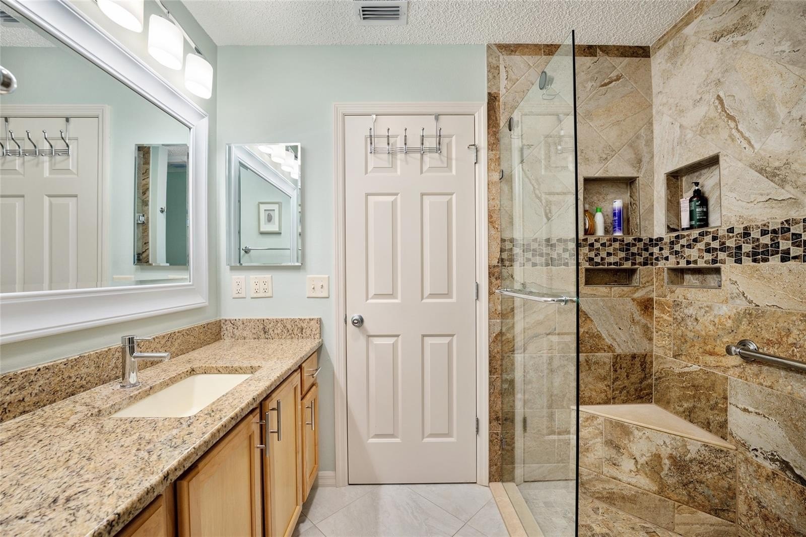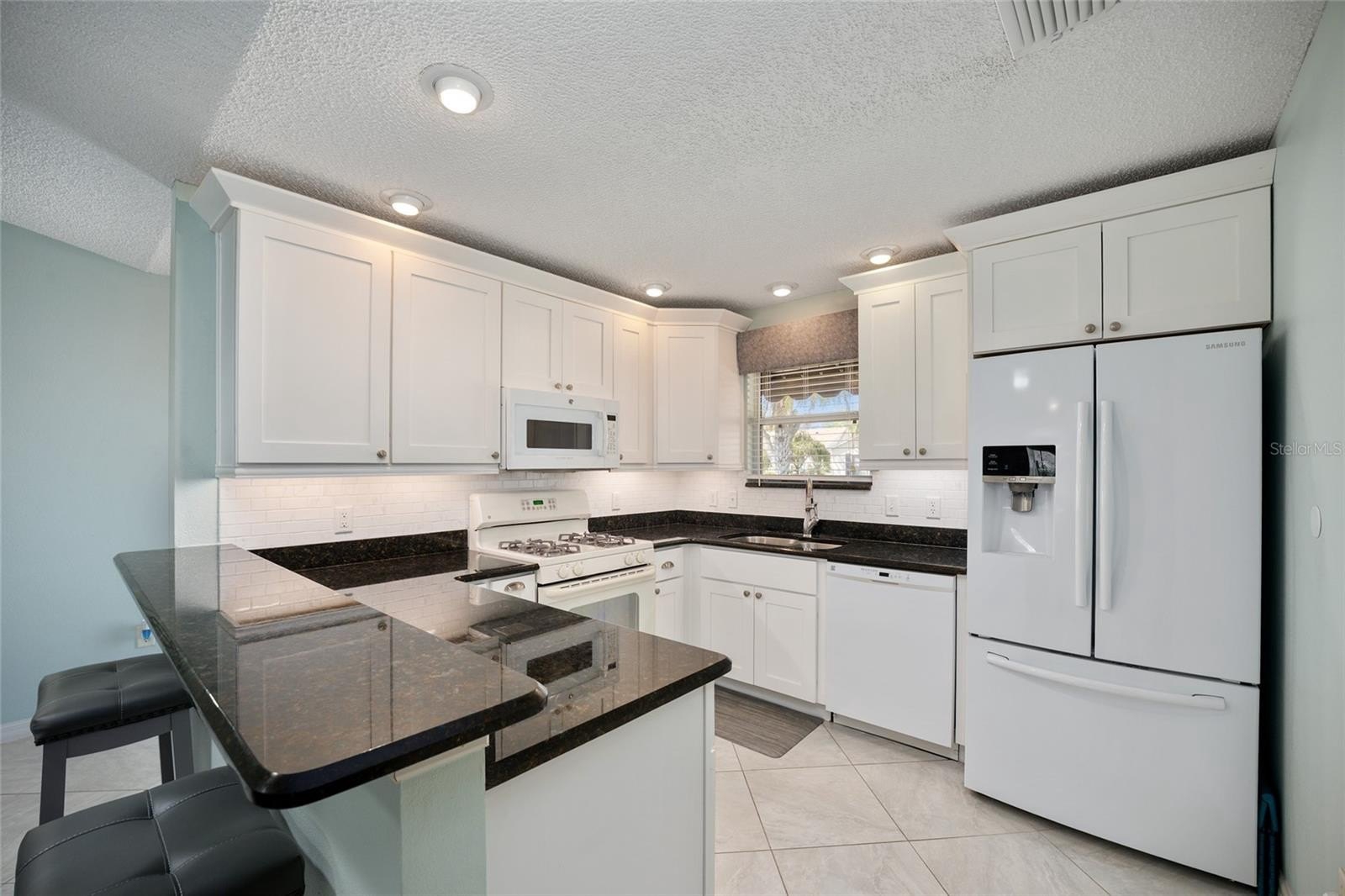 Welcome to this meticulously maintained, lightly lived-in 3-bedroom, 2-bath Corpus Christi model located in the highly desirable Village of Sunset Pointe. Offering excellent curb appeal and a BOND PAID, this home features a freshly painted, expanded driveway and a prime central location. Inside, the open split floor plan is enhanced by vaulted ceilings, ceramic tile flooring in the main living areas, and three solar tubes that provide abundant natural light. The home is being offered furnished, making it truly move-in ready. The updated kitchen features granite countertops, gas cooking, under cabinet lighting, white appliances, and a tasteful tile backsplash—perfect for both everyday living and entertaining. The spacious primary suite includes a custom walk-in closet and an en-suite bath with an upgraded shower and granite countertops. A pocket door creates privacy for the guest wing, which includes two bedrooms and a shared bathroom. One guest room is thoughtfully designed with a built-in Murphy bed and desk, offering flexible use as a home office or additional sleeping space.