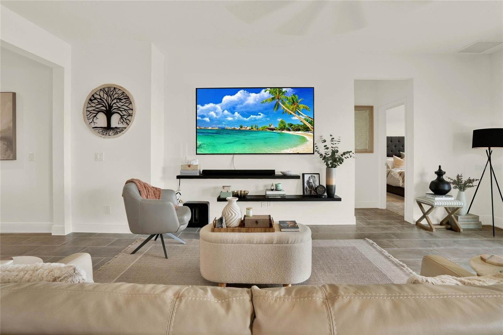 The covered rear lanai extends the living space outdoors, offering a comfortable place to relax or entertain.