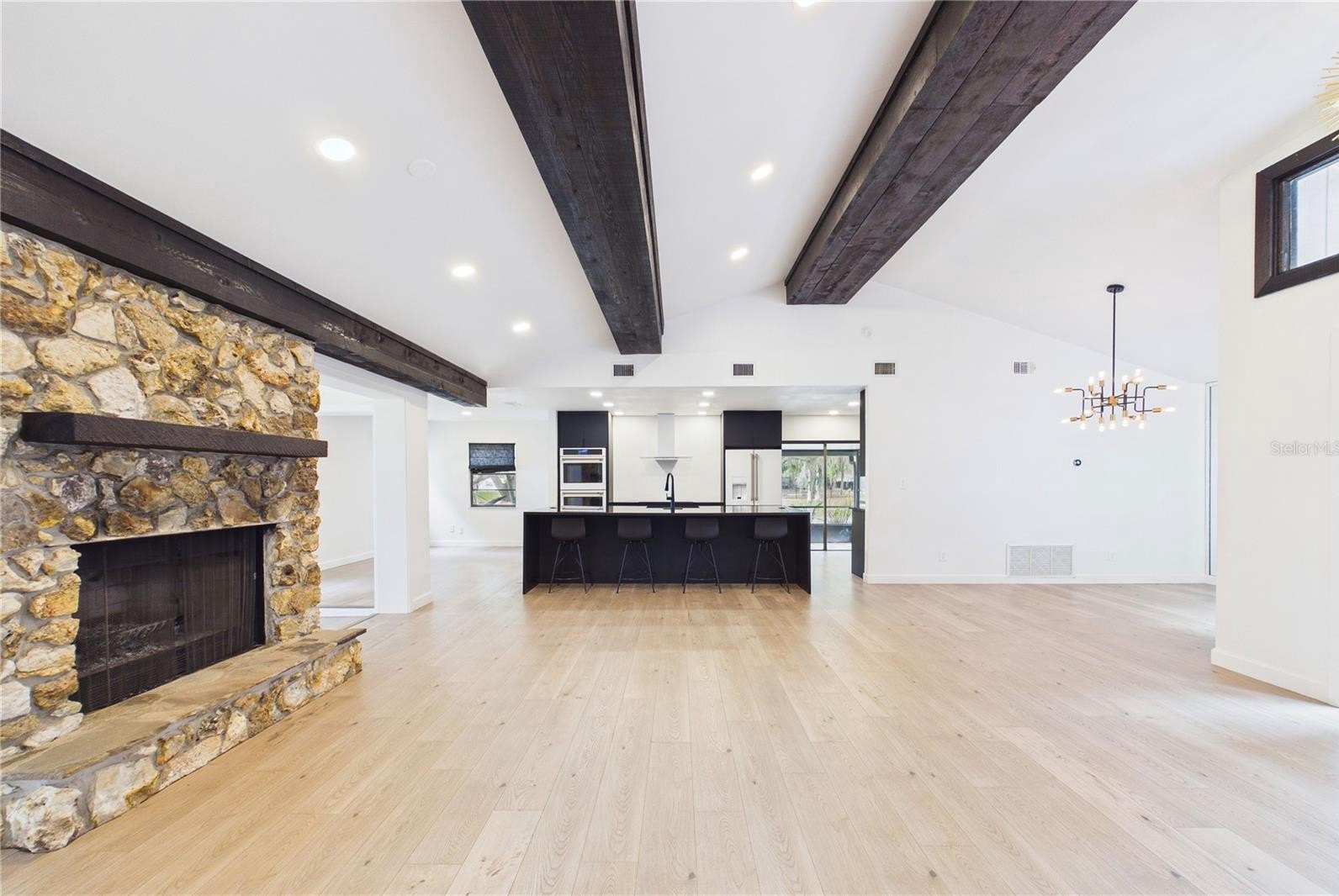 Short Sale. Welcome to this one-of-a-kind fully renovated waterfront home in the highly desirable Majestic Oaks community of St. Cloud. Situated on a rare half-acre waterfront corner lot shaded by mature oak trees and featuring a low HOA, this exceptional property offers an unbeatable boating lifestyle with a community dock providing direct access to East Lake Toho, Fells Cove, and Lake Ajay. The home offers 2,311 sq ft with a desirable split floor plan, three bedrooms, two full bathrooms, two living areas, and two dining spaces ideal for flexible living and entertaining. The updated chefs kitchen is every cooks dream which features a waterfall quartz island and countertops, premium stainless steel appliances, custom range hood, built-in microwave and double oven! The family room showcases a gas fireplace, and opens to the Florida sunroom and private courtyard patio. Custom-designed elements including: free standing tub and separate shower off the primary suite, outdoor fire pit, screened in patio, an oversized two-car garage, extended driveway, RV parking, premium PV home solar system, Tesla wall EV connector and abundant green space. Enjoy low insurance in this home as it features a newer roof, 2022 hot water heater, and 2017 HVAC. Convenient to Lake Nona shopping, top-rated schools, dining, and Medical City. Minutes to golfing and outdoor recreational activities but with the low St. Cloud tax. You cannot miss this property. A truly unique must-see home. Come discover your Florida dream today!