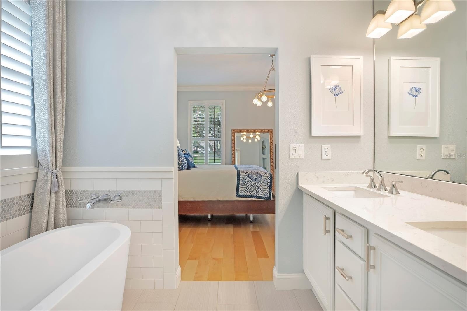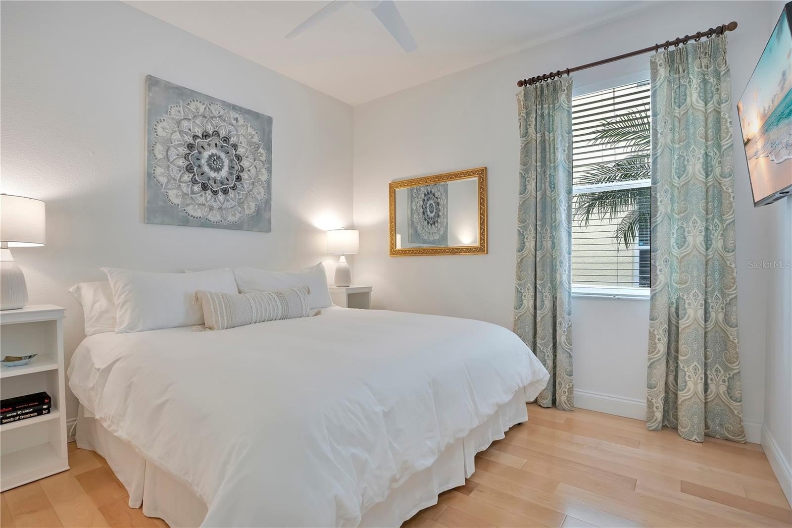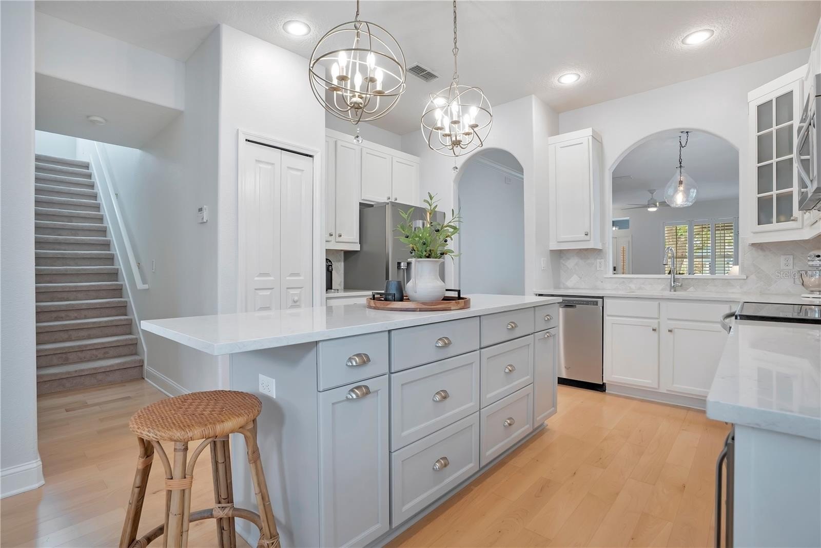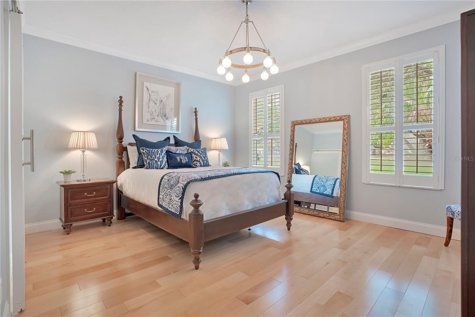 This exceptional home is ideally located in the desirable Golf Cart District, offering park-side living with views of majestic oaks, expansive green space, and the iconic Winter Oaks water tower. Just steps from the community pool and playground, the property showcases upgrades rarely found at this price point. The versatile floor plan features a primary suite and two additional bedrooms on the main level, with wood flooring throughout the main living areas creating a seamless flow. The primary suite overlooks the park and includes a spacious walk-in closet with built-ins and a stylish sliding barn door leading to the renovated bathroom. The bath features quartz countertops, dual sinks, a modern freestanding tub, and a separate tile shower. A fourth bedroom or bonus room with its own full bath and walk-in closet occupies the upper level. This 19' x 15' space is ideal for guests or flexible use such as a media or game room. The open kitchen serves as the heart of the home, offering abundant cabinetry, quartz countertops, stainless steel appliances, and a center island with eight drawers designed for optimal functionality. Thoughtful updates are evident throughout the property. Outdoor living continues in the screened rear patio, designed for comfort and year-round enjoyment. The backyard features artificial turf and mature landscaping to enhance privacy and reduce maintenance. Located just a short golf cart ride from historic downtown Winter Garden, this home offers easy access to award-winning restaurants, boutique shopping, outdoor dining, the splash pad and fountain, weekly events, and seasonal celebrations. This is a beautifully maintained property that must be toured to fully appreciate its quality and design.