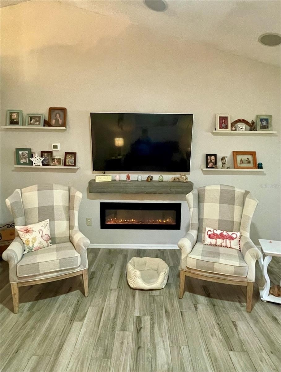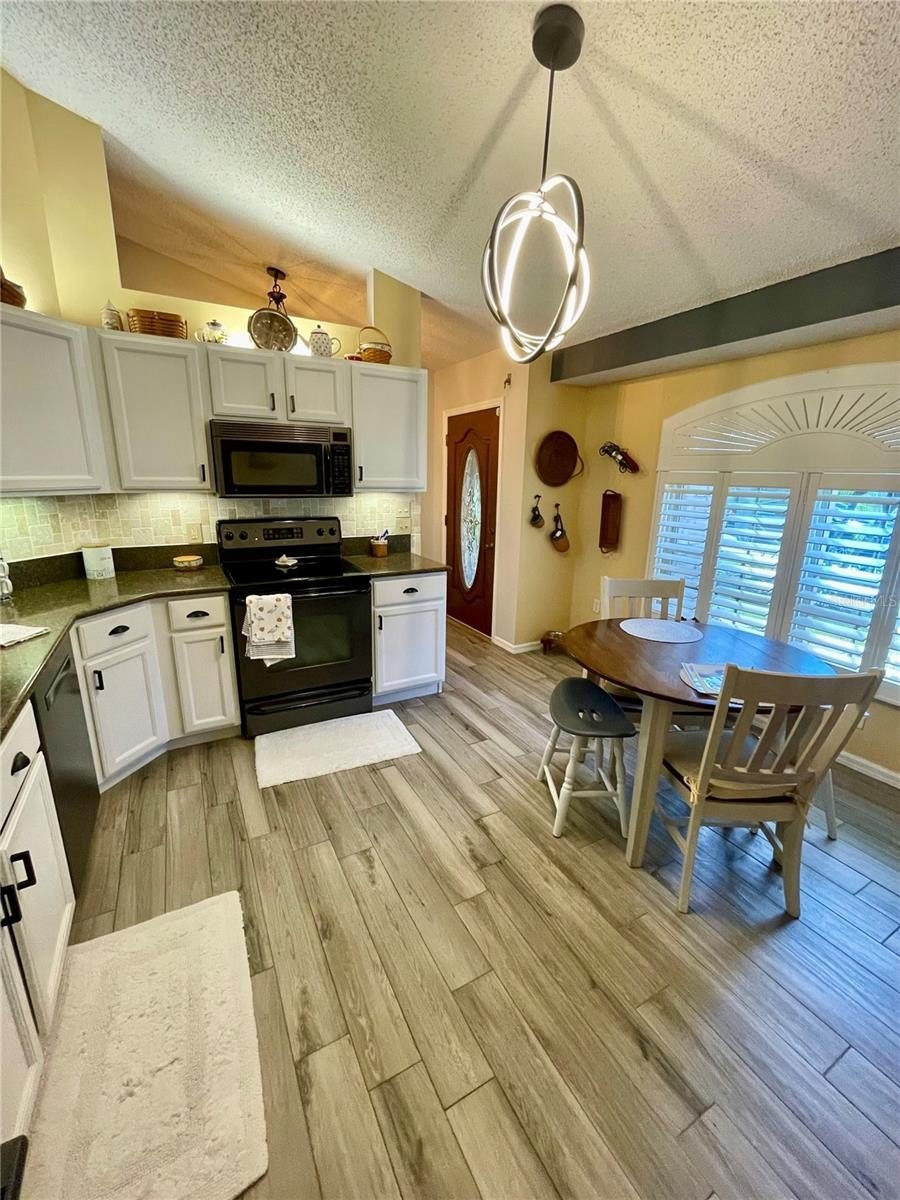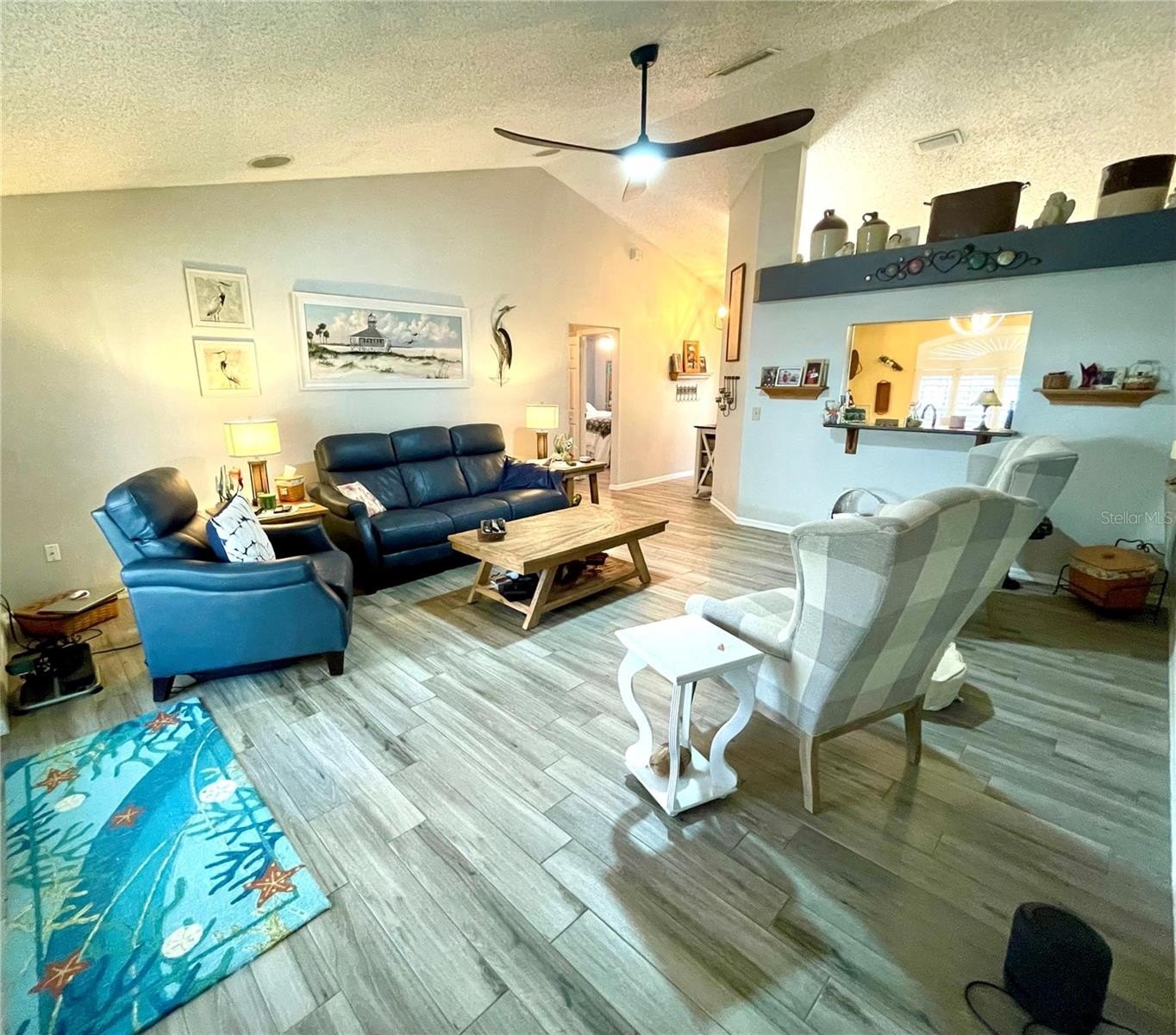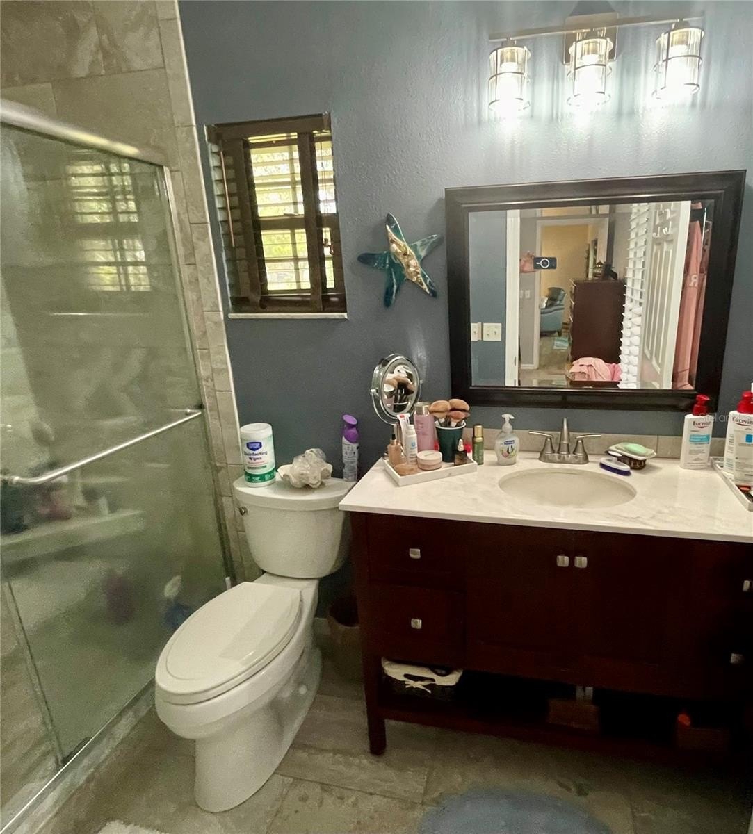 Turnkey 3-Bedroom, 2-Bath Beauty on Corner Lot - Move-In Ready! This immaculate pool home shows pride of ownership. Meticulously maintained, offering the perfect blend of comfort, style, and functionality. Situated on a beautifully landscaped corner lot, the curb appeal sets the stage for what awaits inside. As you step through the front door, you'll immediately notice the soaring cathedral ceilings and the wood plank matte porcelain tile throughout the entire home. That enhances the spacious feel of the open floor plan. The thoughtfully designed split-bedroom floor plan offers privacy between the bedrooms and there are two beautifully updated bathrooms. The neutral color palette throughout makes it easy to add your own personal touch. The renovated kitchen is a showstopper, featuring timeless cabinetry, stone countertops, a breakfast bar and ample workspace for any chef. Featuring top of the line BOSCH appliances. Blackout screened in garage gives another area to enjoy bug free. Walk through your French doors to your outside OASIS! Featuring screened-in pool area with covered seating area for comfort, with fire pit and TV. Enjoy the Salt Water heated pool with cascading water fall for relaxation. Finish your evening with a stroll to your private circular outdoor fire pit area on a perfect evening. Don't forget to rub to Totem Pole for luck! Home shows better in person. You will not be disappointed! LIST OF FEATURES:SALT WATER POOL,PUSH-BUTTON AUTOMATIC HURRICANE SHUTTERS ON ALL WINDOWS, OUTDOOR NIGHT-VISION CLOSED CIRCUIT CAMERAS, ELECTRIC FIREPLACE, FIRE-PIT, INDOOR-OUTDOOR SATELLITE XM RADIO, PLANTATION SHUTTERS ON ALL WINDOWS, SOLAR HEATED POOL, POOL ROBOT, WATERFALL, BLACKOUT GARAGE SCREEN, HURRICANE RESISTANT & ENERGY-SAVING TINTED WINDOWS, EPOXY GARAGE FLOOR.