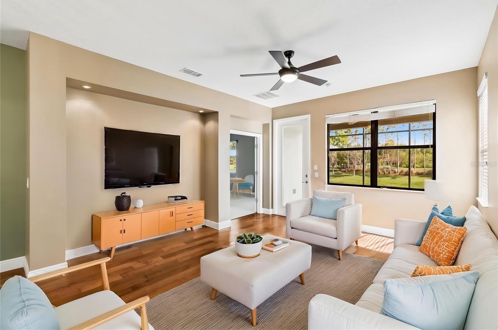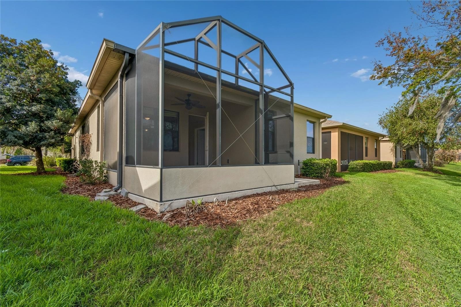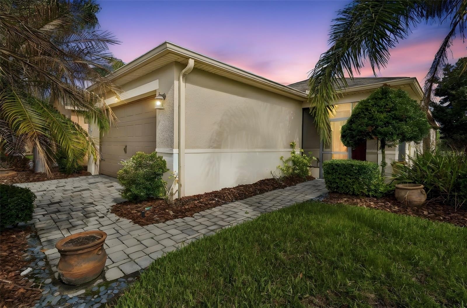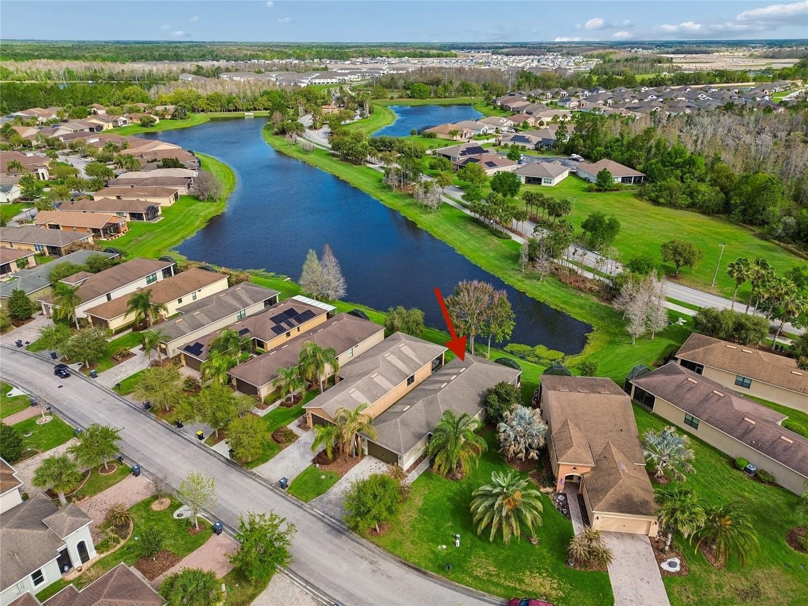 One or more photo(s) has been virtually staged. Experience the best of Florida living in this stunning Torino model, a 3-bedroom, 2-bath home with beautiful WATER VIEWS, ideally located in the desirable Mira Vista neighborhood of Solivita. Enter through the front door into a welcoming foyer with a DOUBLE CLOSET, then continue into the OPEN FLOOR PLAN showcasing a spacious living and dining room combination with lovely WOOD FLOORS that create a warm and inviting atmosphere. The kitchen is open to the main living area, creating a seamless flow that’s perfect for easy entertaining. The kitchen is designed for both style and functionality, offering durable CERAMIC TILE flooring, STAINLESS STEEL APPLIANCES, recessed lighting, and a convenient CLOSET PANTRY for extra storage. PENDANT LIGHTING over the breakfast bar adds a modern touch, while the adjacent dining area provides a cozy space for meals and overlooks the main living area. The PRIMARY SUITE is a peaceful retreat with relaxing water views, a WALK-IN CLOSET with custom shelving, and an ENSUITE BATHROOM featuring DUAL SINKS and a walk-in shower. TWO additional bedrooms are located at the front of the home and share a full bathroom, offering privacy and flexibility. One of the bedrooms can easily be used as a HOME OFFICE or hobby room to suit your needs. Step out onto the SCREENED lanai and take in the stunning, LONG WATER VIEWS as you ease into your morning—or unwind in the evening with a quiet moment and a glass of wine. A separate laundry room with an additional double-door closet provides ample storage, while the TWO-CAR garage completes this exceptional home. Schedule your private showing today and start enjoying all the outstanding amenities this award-winning 55+ community has to offer. The HOA: - maintains the LANDSCAPING & IRRIGATION systems in the common areas as well as at individual homesites - maintains the roads throughout the community - PROVIDES SECURITY with gate guards and mobile patrols including the Polk County Sheriff - allows AUTOMATED GATE ACCESS for residents via license plate readers - provides residents with Fiber Optic Internet & TV service.***Poinciana Lakes Plaza is a MAJOR NEW SHOPPING CENTER directly across from the Solivita Main Gate. It features Sprouts Grocery, TJ MAXX, Ross, Burlington, Rack Room Shoes, 5 Below, Ulta, Outback, First Watch, 5 Guys, Panda Express, Bojangles, Jersey Mike's Subs, 5 Guys, Papa John's Pizza, Burrito Bar, Cold Stone Creamery, Urgent Care, Dentist, Hand & Stone Massage, America's Best Eyeglasses, Crunch Fitness, Hair Cuttery, Petco, TD Bank, Verizon Mobile, PLUS MORE TO COME.***