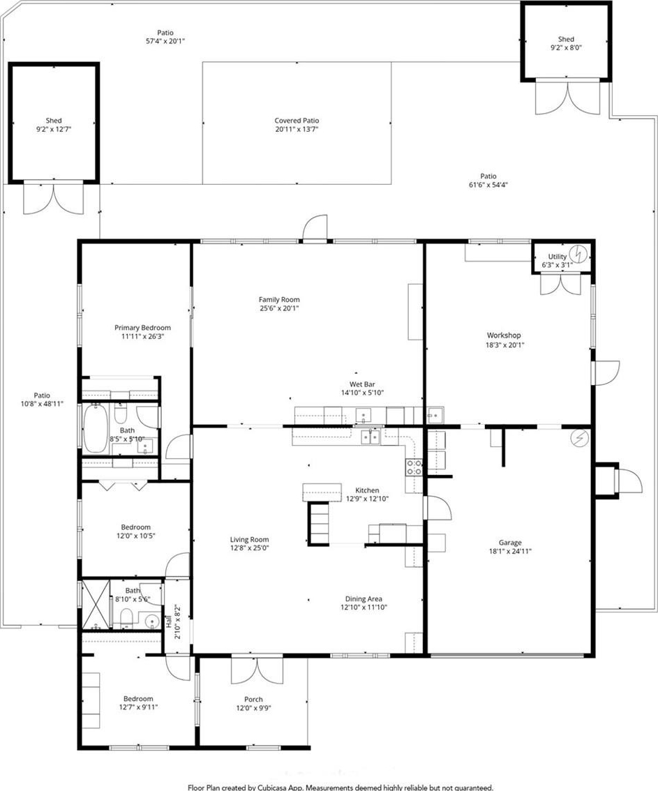 A lush, private shaded backyard (with space for a pool) features a brick lanai with gazebo, two large storage sheds, an outdoor shower, and is bordered with native plantings and flower beds. The yard has landscape stone everywhere … no grass to cut! A 2-car garage connects with a massive workshop space, providing a sanctuary for artisans and craftsmen. Fully airconditioned, the garage and workshop can be utilized year-round.
